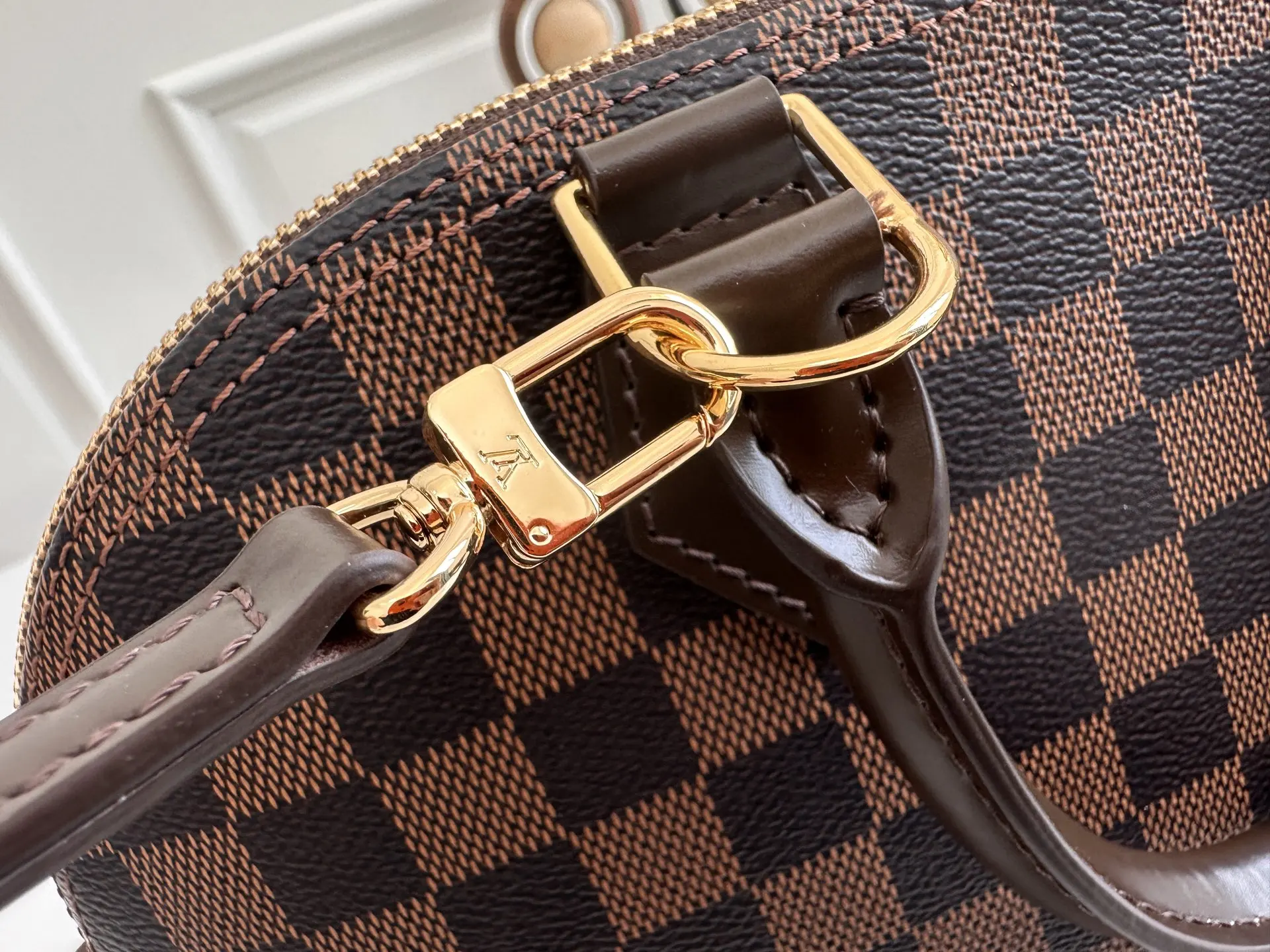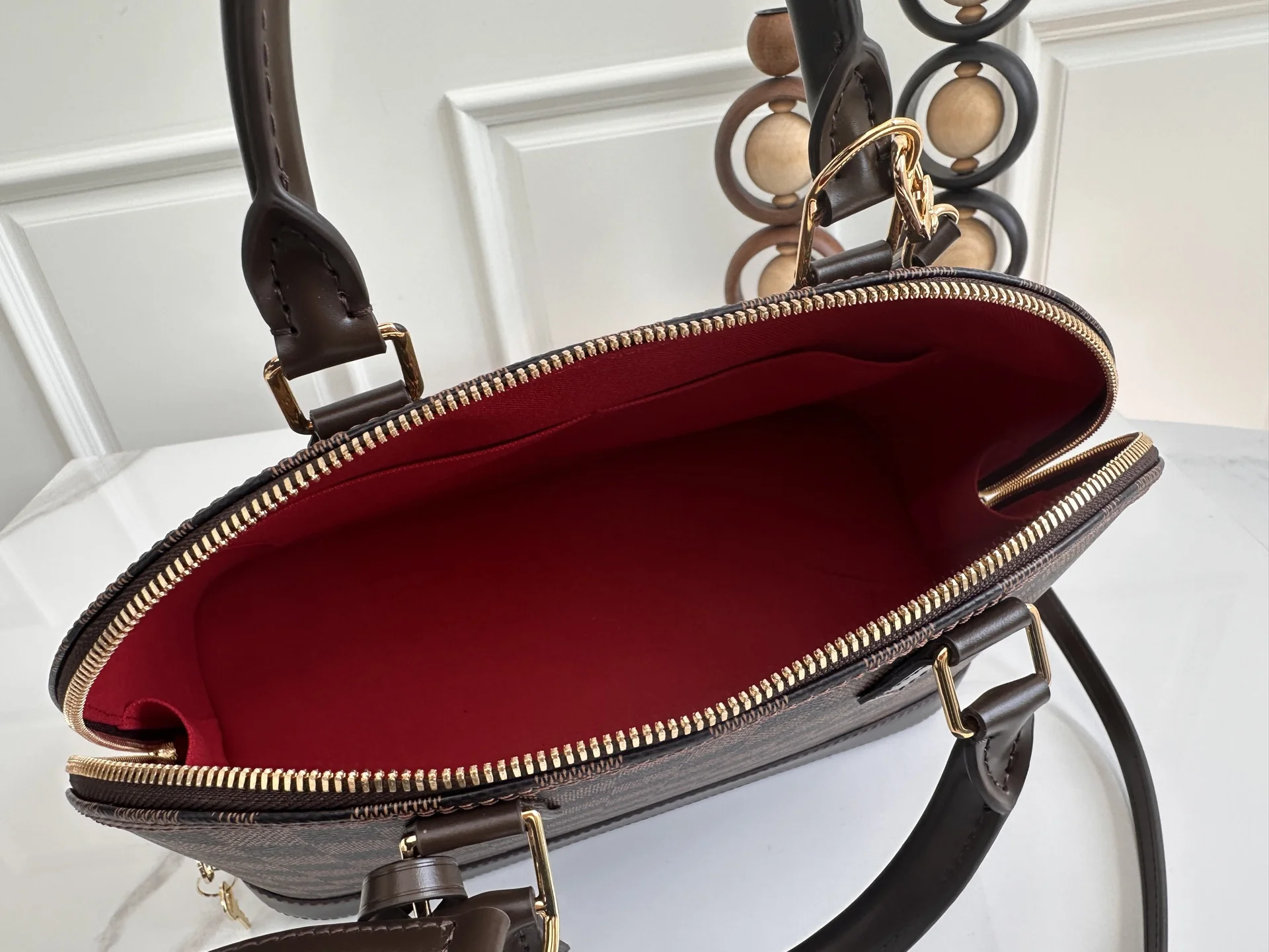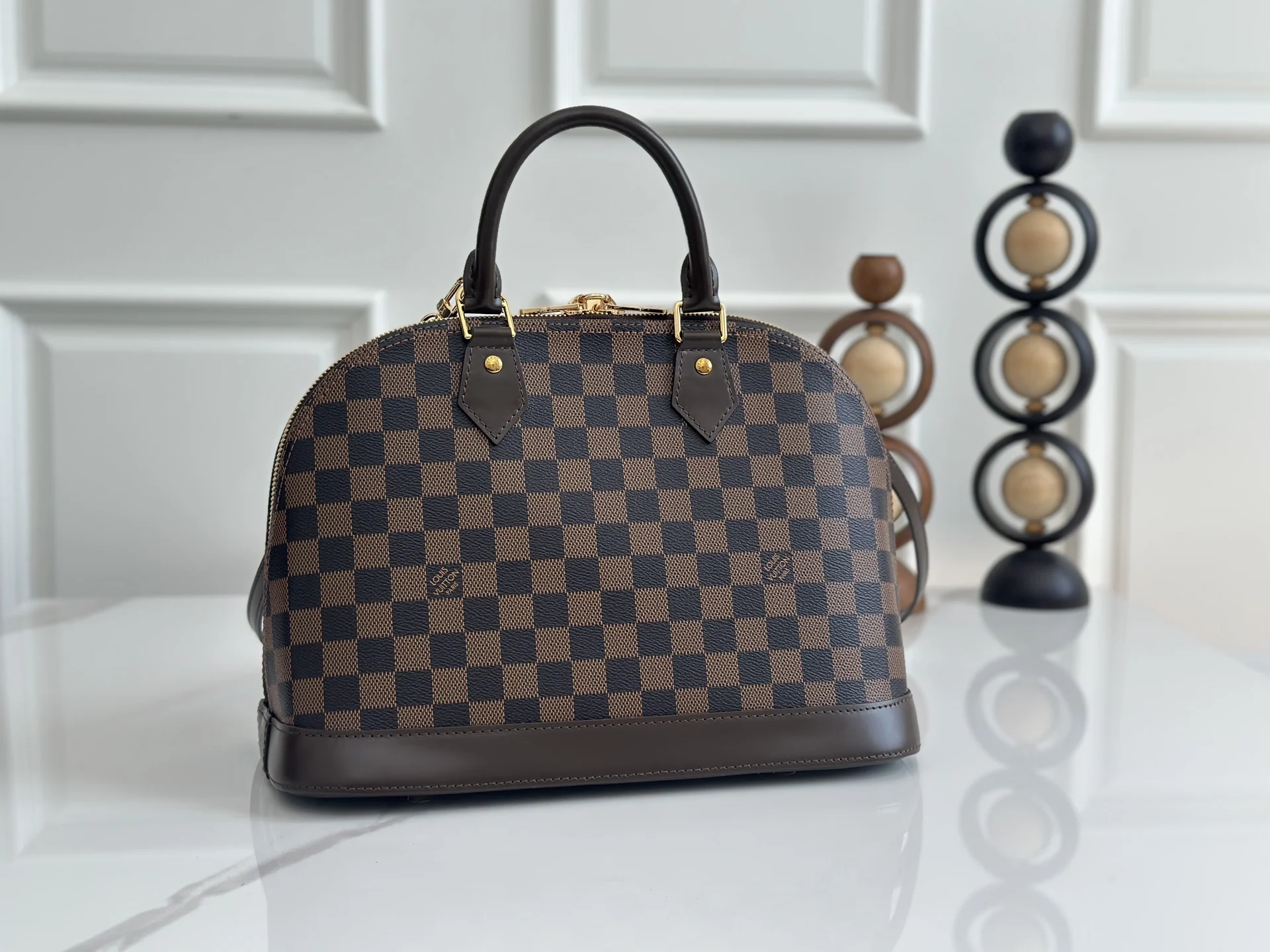 顶级原单 ALMA 中号贝壳包 M53151老花 咖啡格 起源于1934年的 Alma 手袋经过时间推移从一个方角的旅行包逐渐以形状的演变成为今天的优雅女性手袋代表 Monogram帆布制成的小号款手袋可轻松装纳钥匙包 手机及唇膏等物品 Alma小号手袋配有一根可将包调节至齐腰或齐臀高度的背带可用于轻便斜挎 尺寸 32*25*16cm