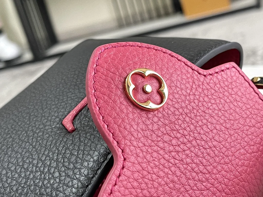 特级精品原厂皮M59882 M59440黑色配浅梅红金扣 本款 Capucines 迷你手袋取材粒面牛皮革 令包身和顶部手柄及翻盖上演色块意趣 LV 字母丰富视觉层次 可拆卸宽幅肩带实现舒适肩背