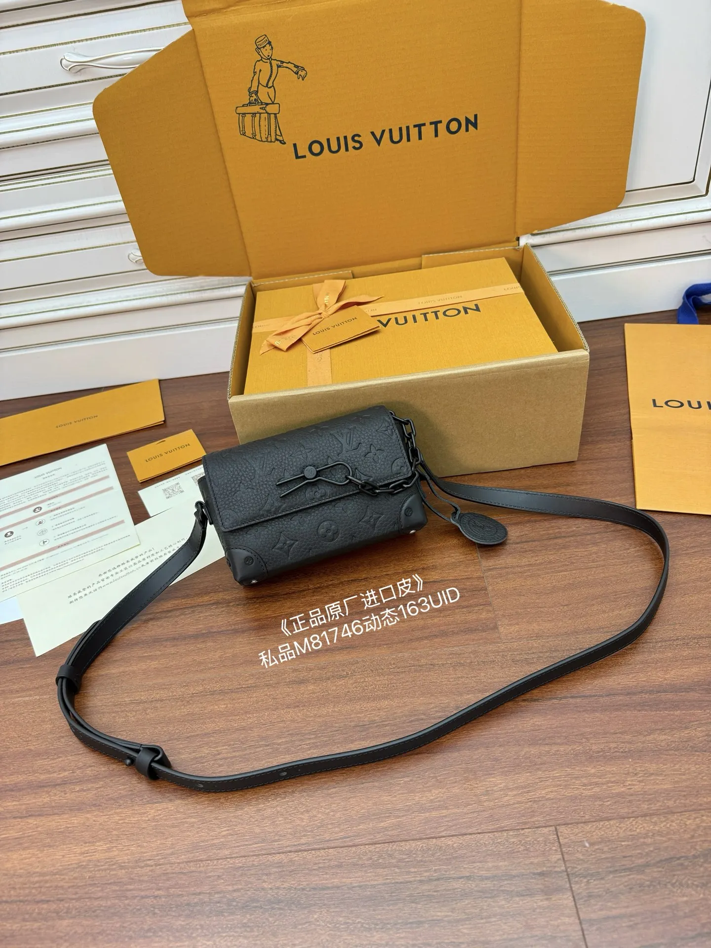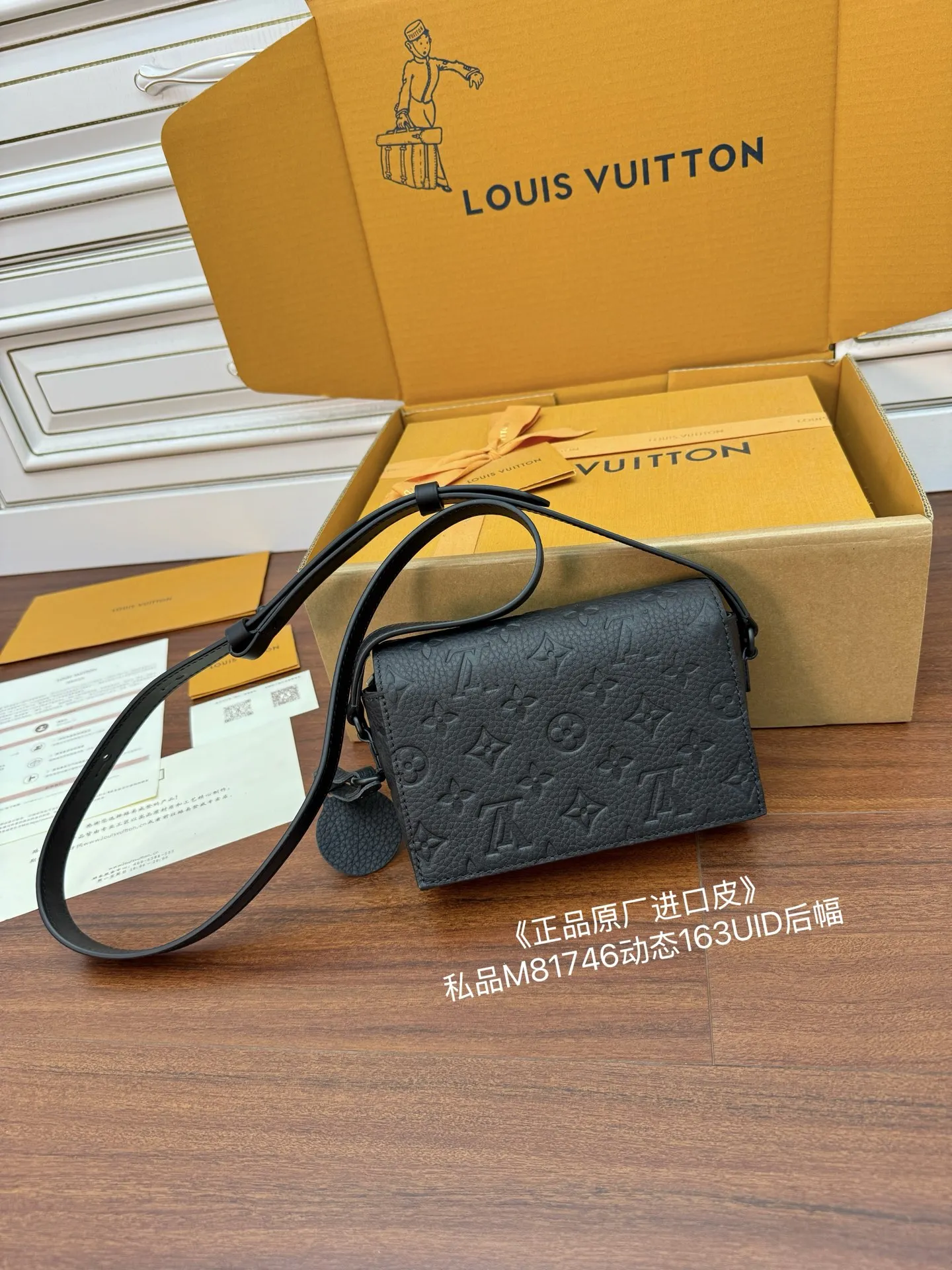 独家(正品原厂进口皮)首发型号 M81746私品 163动态UID 进口菱形面料 品质和材料第九次再次升级 专柜同步 动态电子芯片 礼品袋 保护纸 铜版电子标签 合格证 皮料是正品代工厂意大利A级树膏皮 私品 是在于品质 五金 面料 手工 油边 是A级出品 拍摄图跟产品一致丶配图上的全套包装.尺寸 18x11x6.5CM