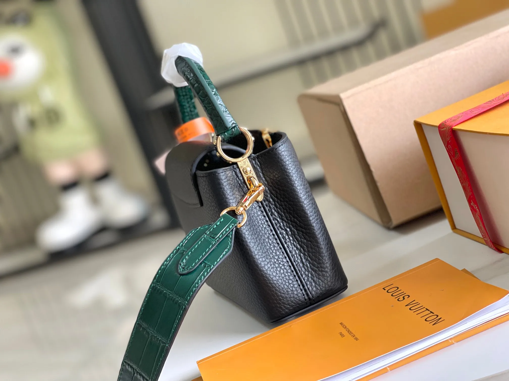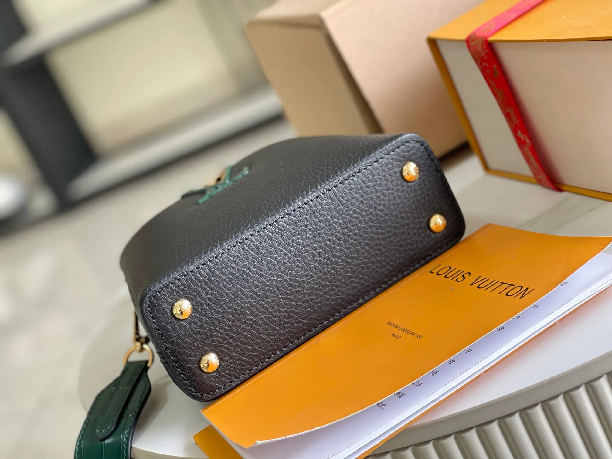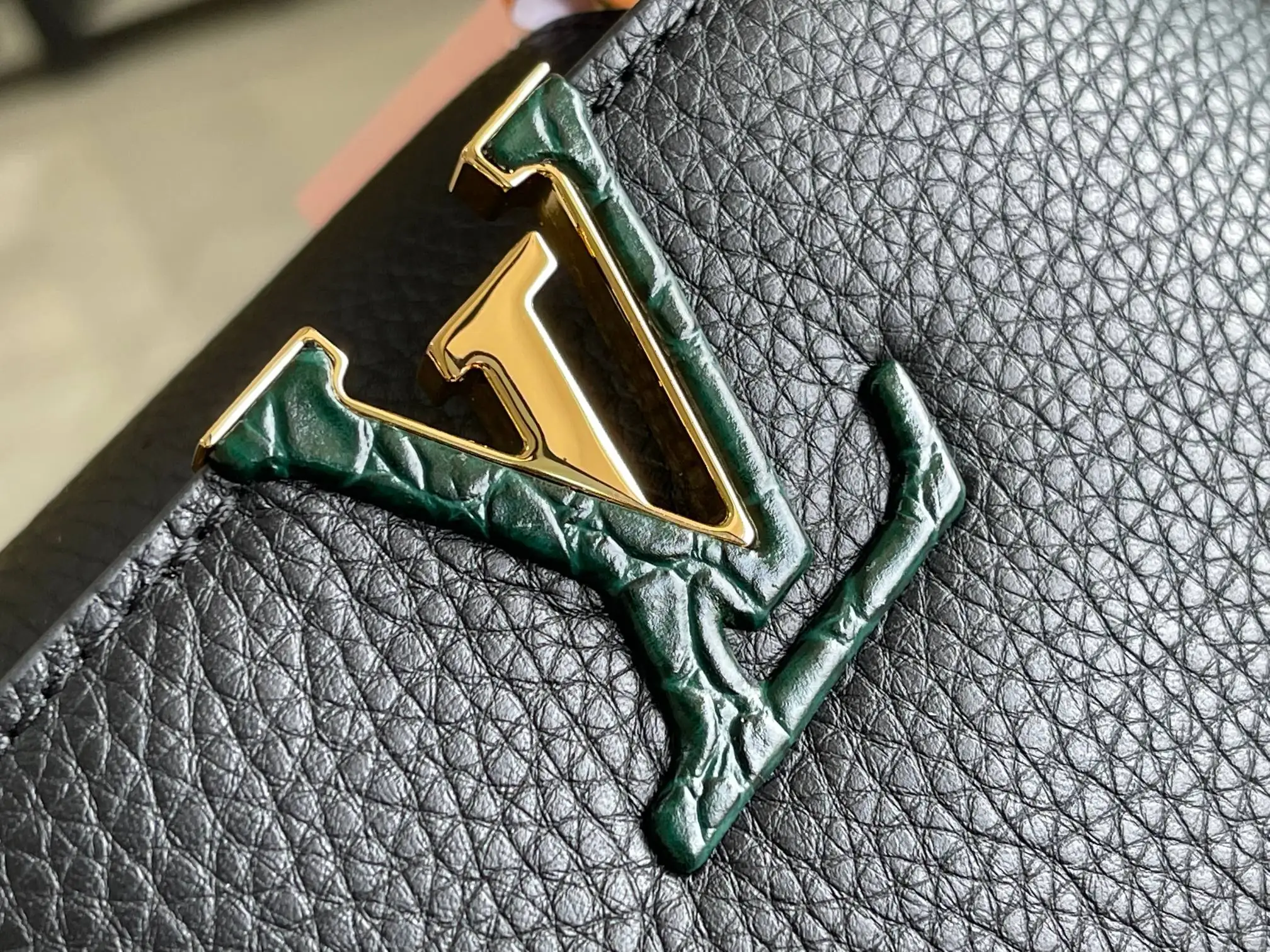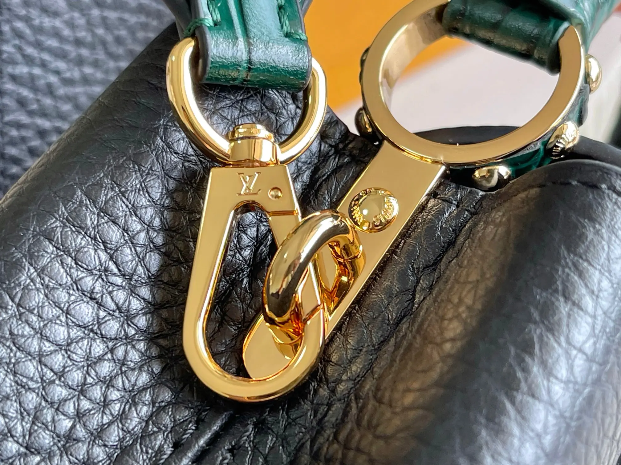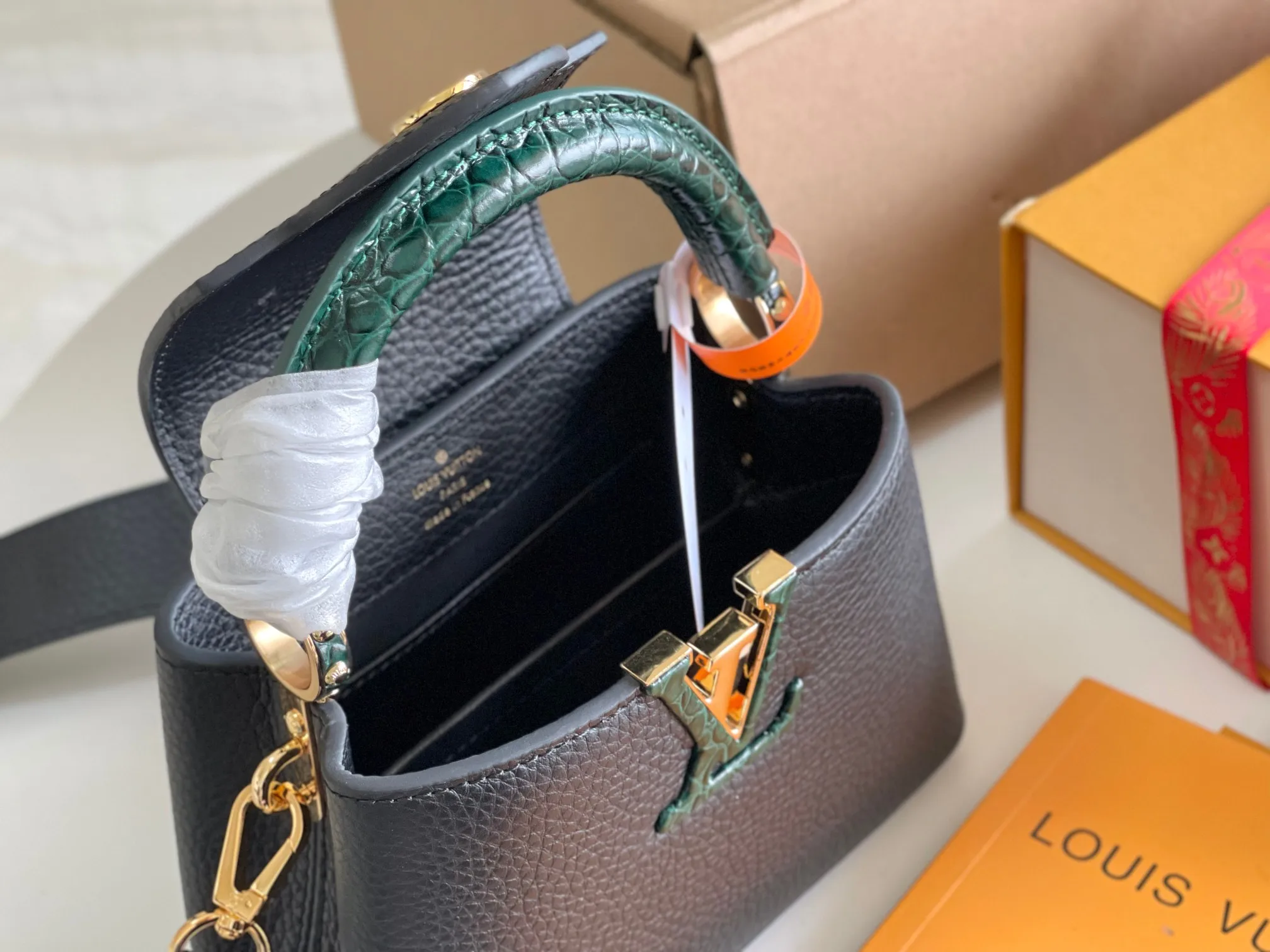本款 Capucines 迷你手袋由鳄鱼纹皮革打造而成 质感华贵