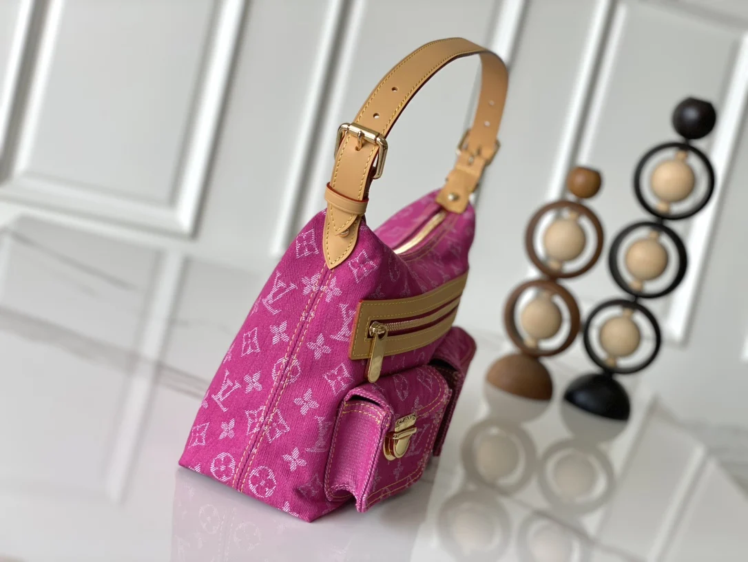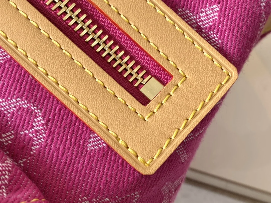 变码芯片版 独家实拍 本款M95212 Vintage牛仔布斜挎包 中古绝版限量款 采用牛仔帆布材质柔软麂皮衬里正面两个按锁翻盖开合小口袋拉链开合可调节肩带便利实用尺寸:30x22x13cm