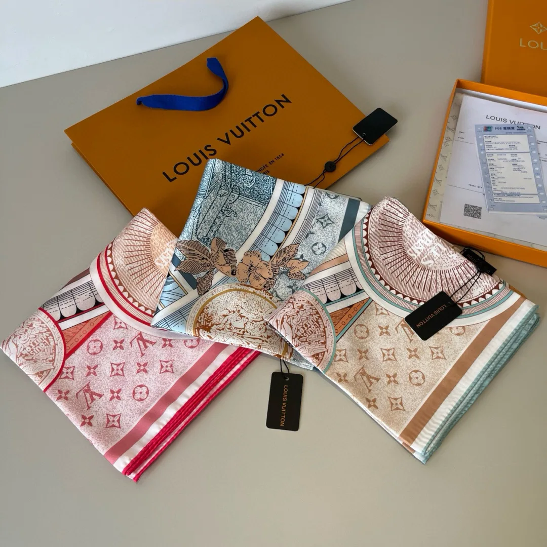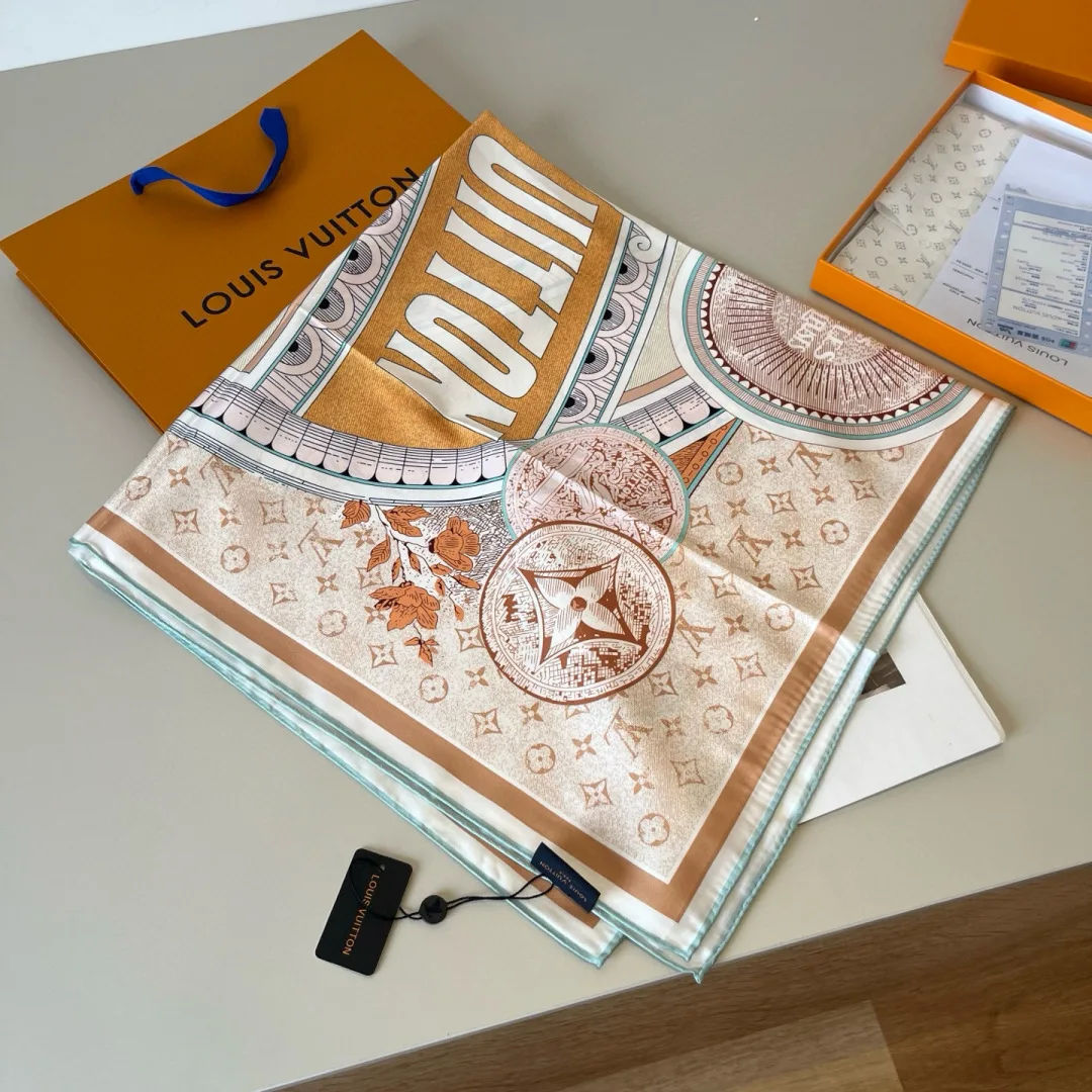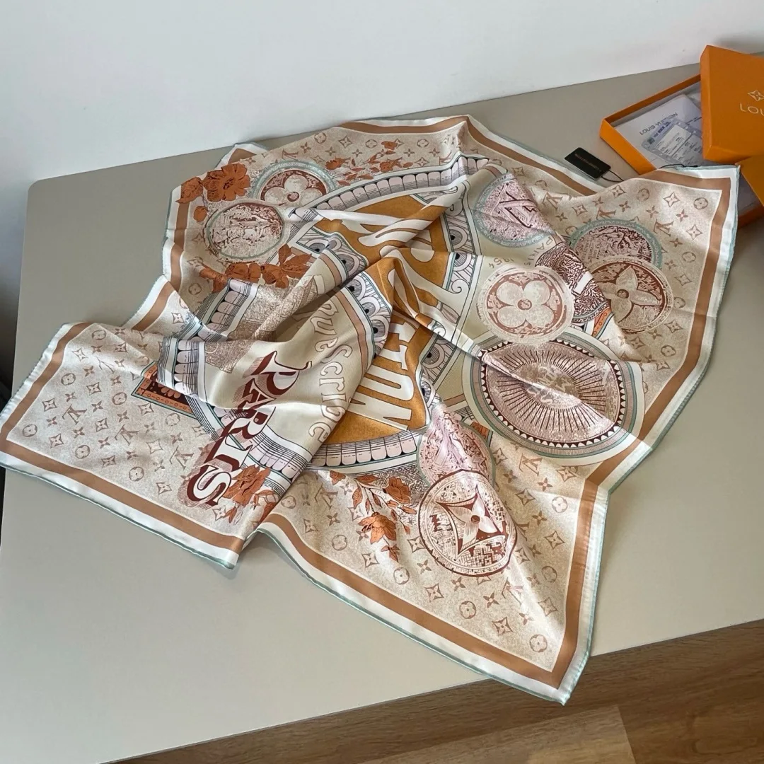 本款 Malles Merveilleuses 桑蚕丝方巾以满溢艺术气息的设计诠释 19 世纪末广告海报的灵感启发 向路易威登悠久历史致敬 各色硬箱与旅行贴纸点缀 Monogram 图案背景 彰显品牌对考究细节的专注 典雅构型释放考究韵致