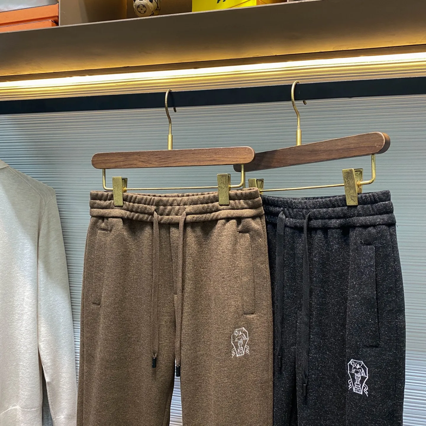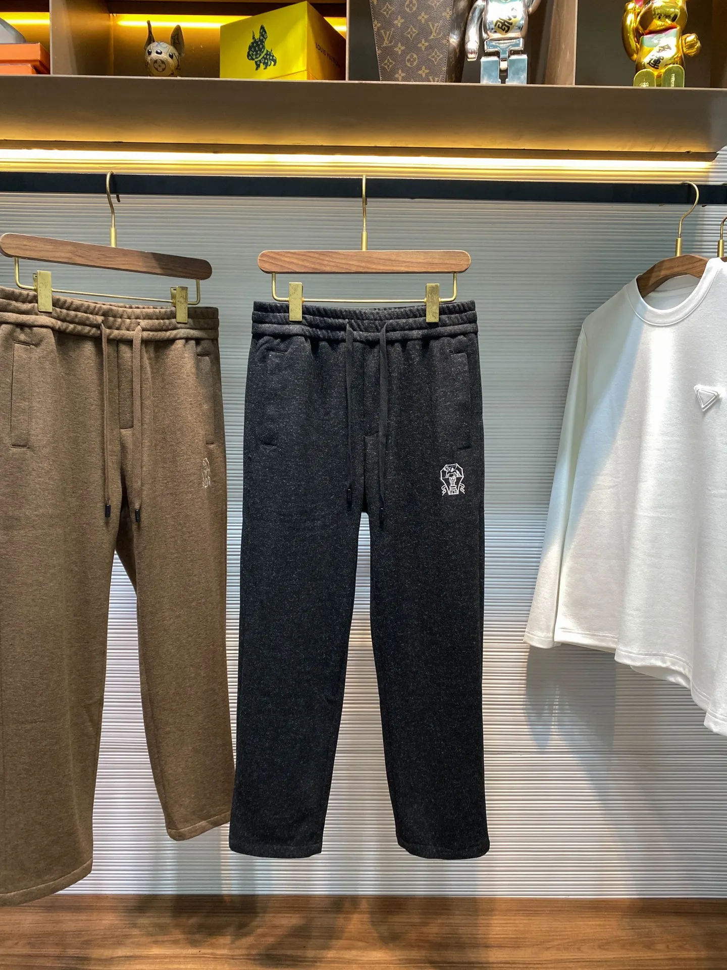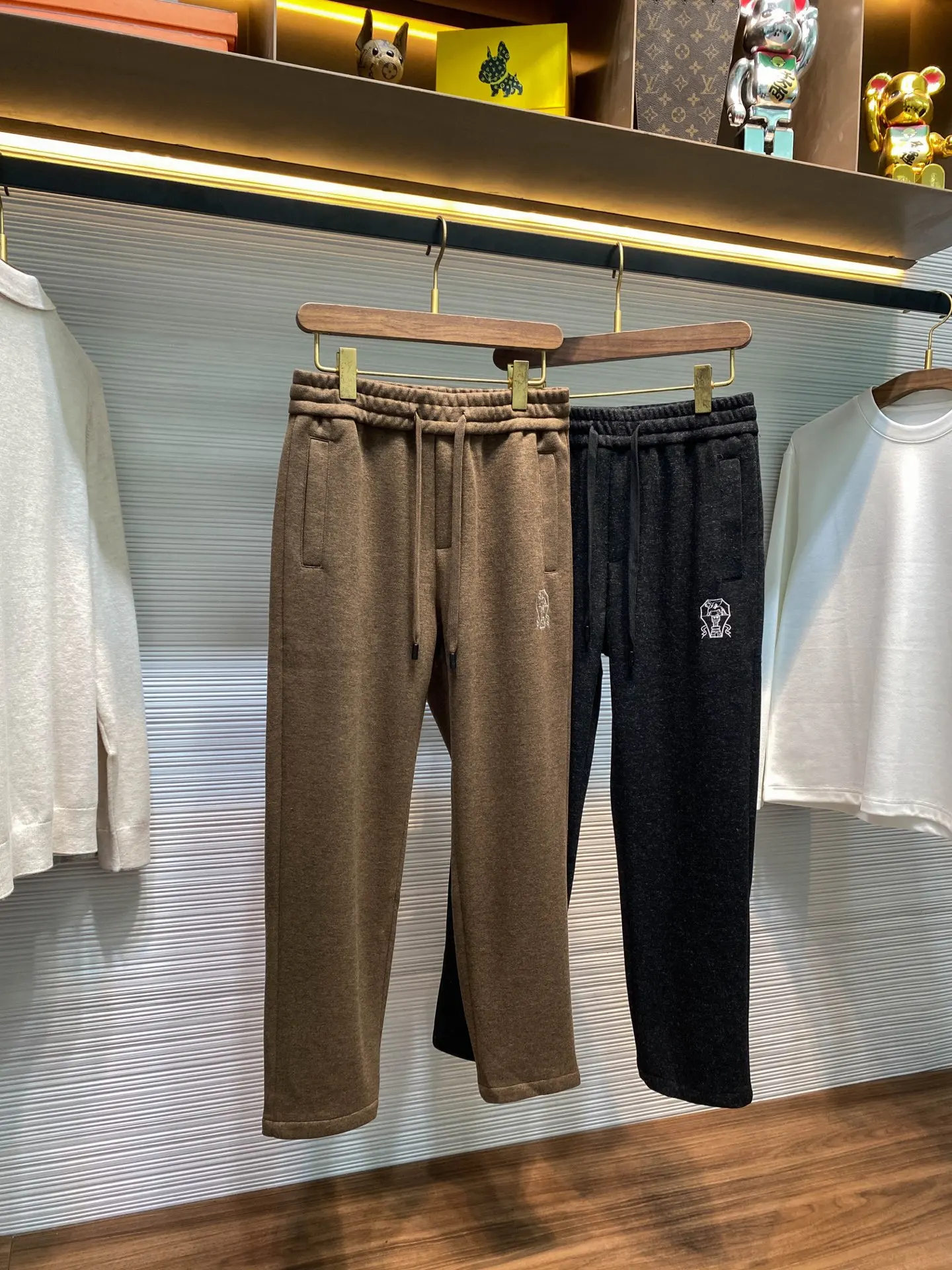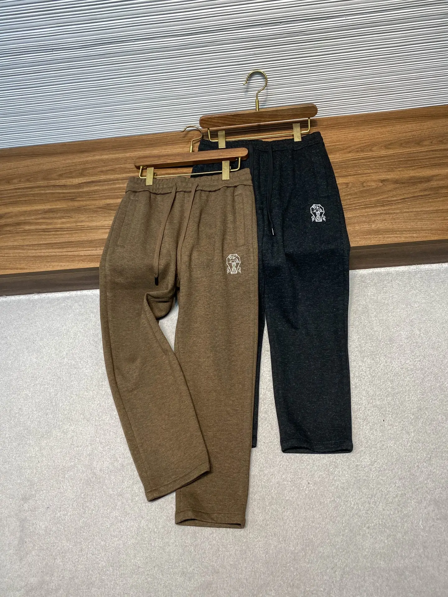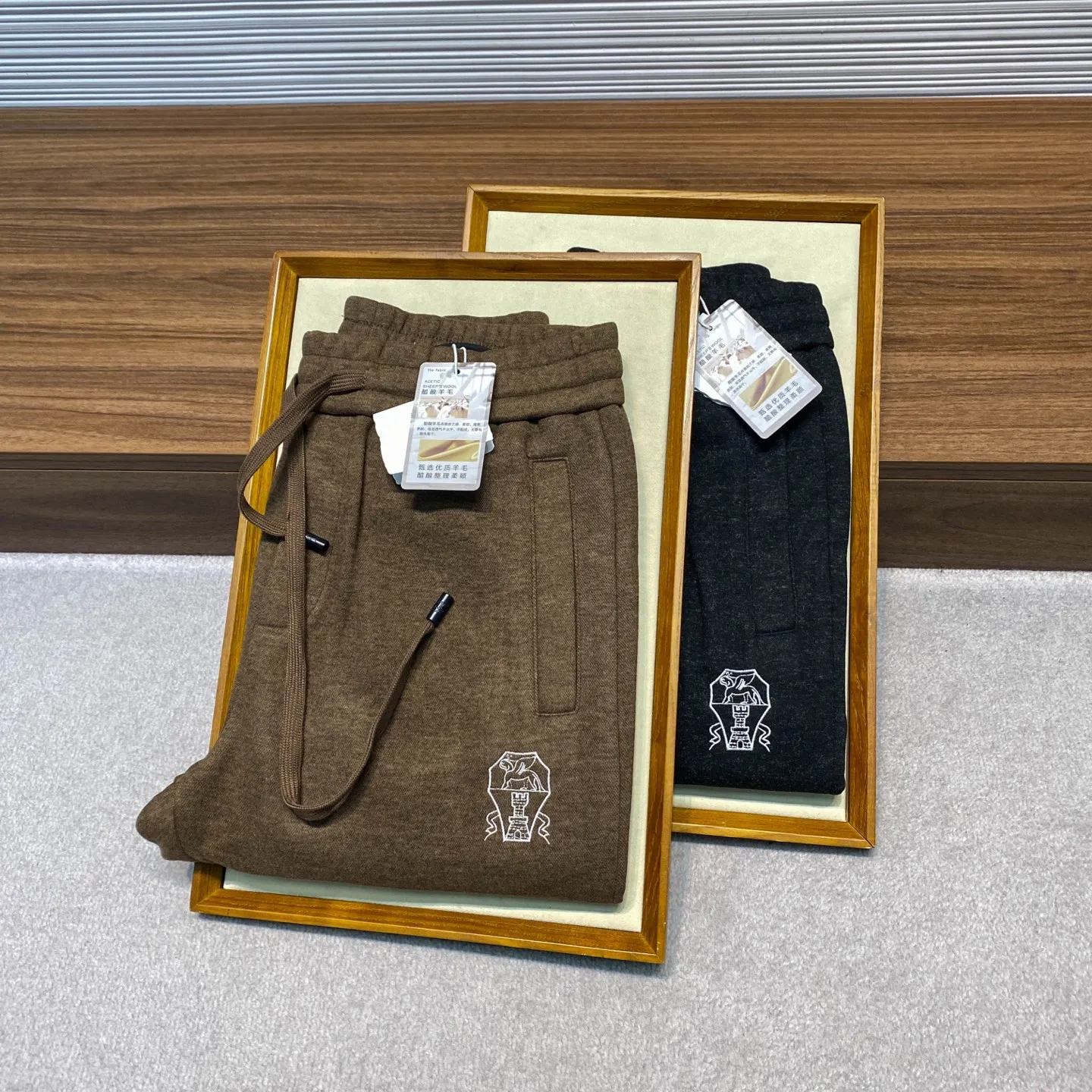 黑色码数 M XL 3XL BC新款重磅醋酸羊毛抽绳直筒休闲裤 男士经典徽章刺绣金属铭牌装饰时尚休闲长裤 男生体重130斤以内选择M码 130-143斤选择L码 143-156斤选择XL码 156-170斤选择XXL码 170-185斤选择3XL码