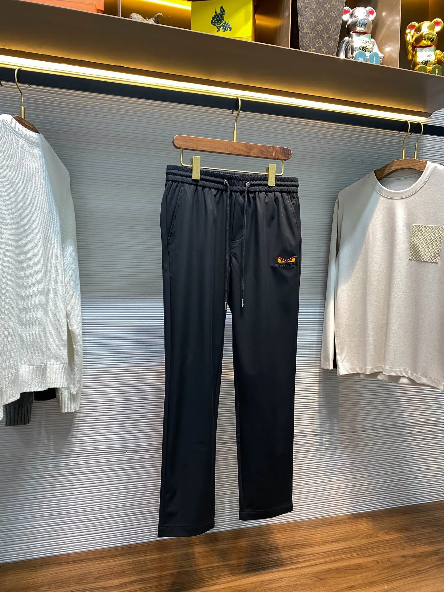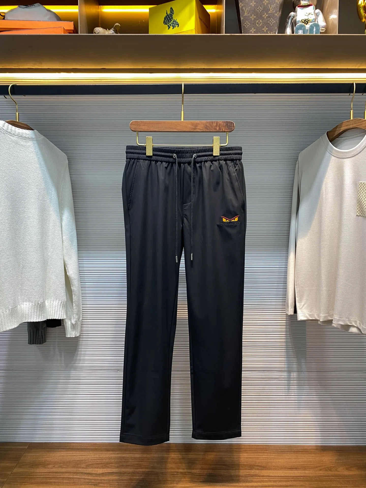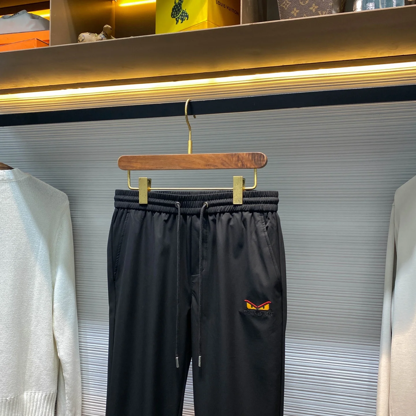 FD 早秋新款黑色梭织面料时尚抽绳休闲裤 男士经典眼睛图案刺绣FF提花口袋直筒休闲长裤 男生体重133斤以内选择M码 133-146斤选择L码 146-160斤选择XL码 160-174斤选择XXL码 174-188斤选择3XL码