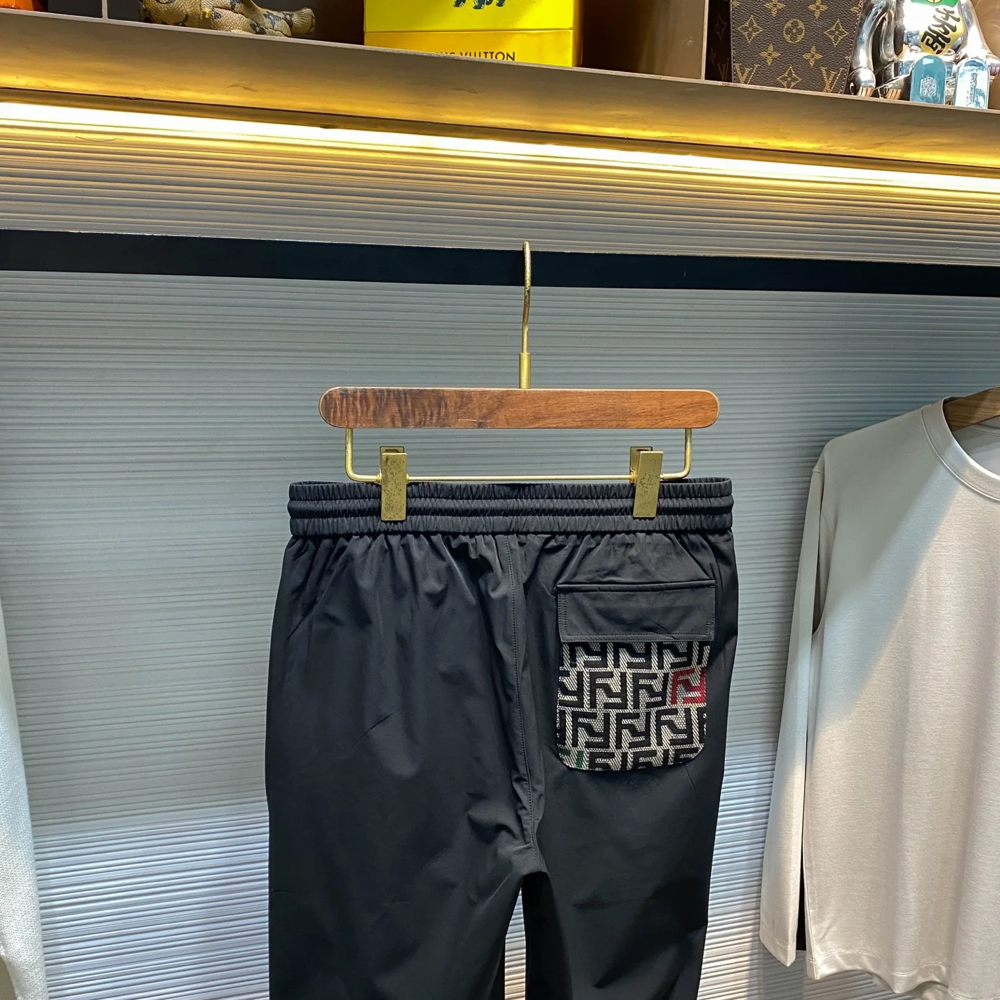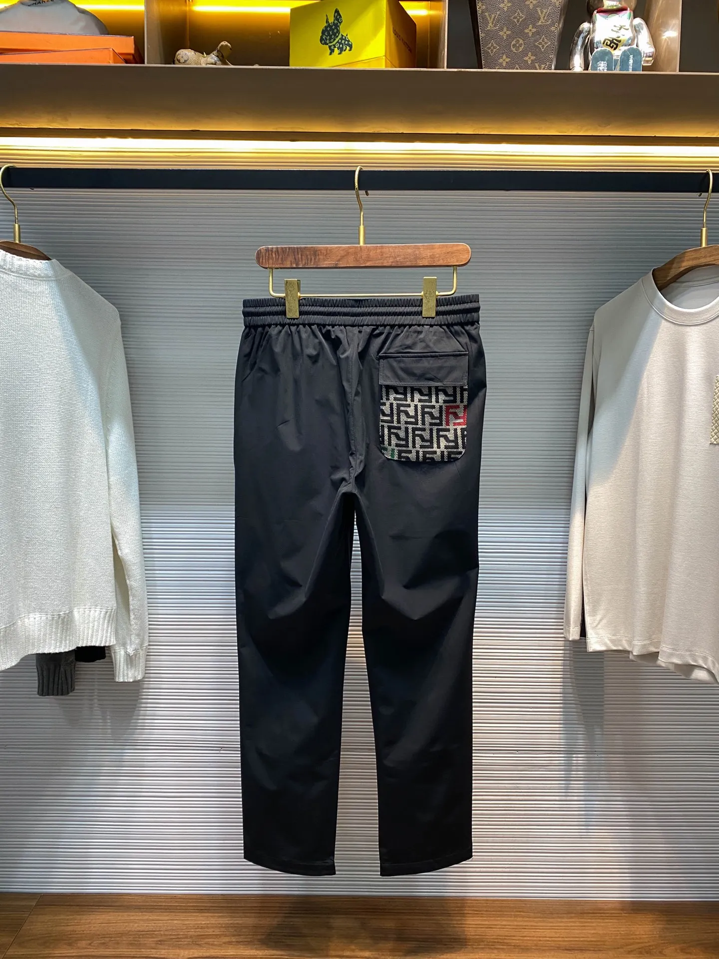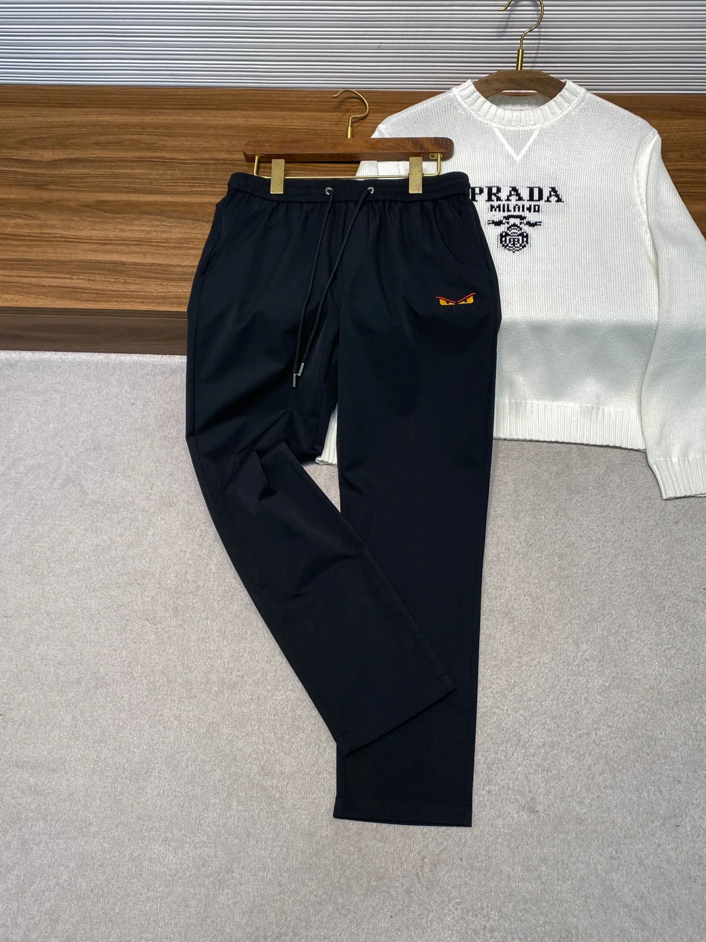 FD 早秋新款黑色梭织面料时尚抽绳休闲裤 男士经典眼睛图案刺绣FF提花口袋直筒休闲长裤 男生体重133斤以内选择M码 133-146斤选择L码 146-160斤选择XL码 160-174斤选择XXL码 174-188斤选择3XL码
