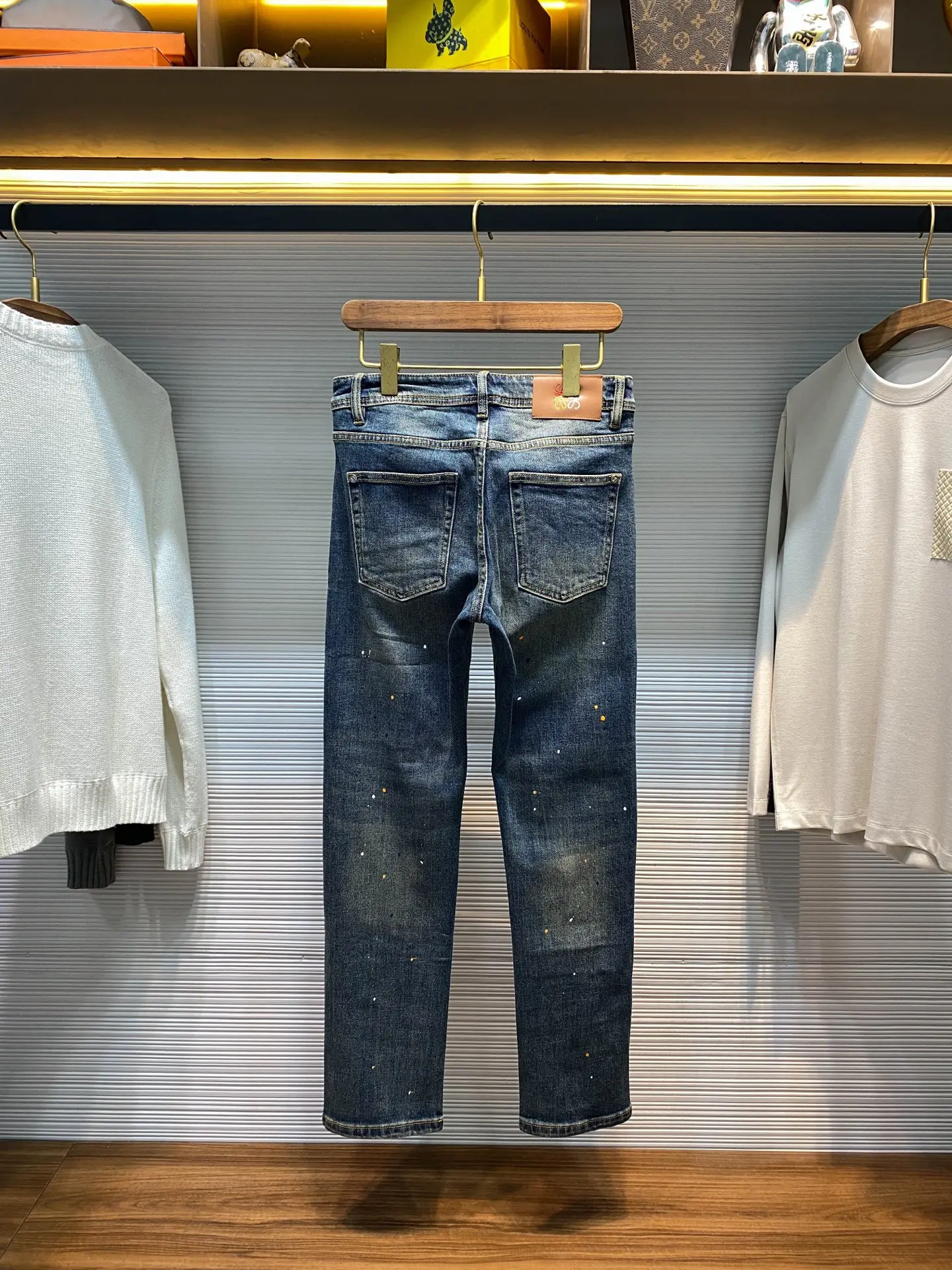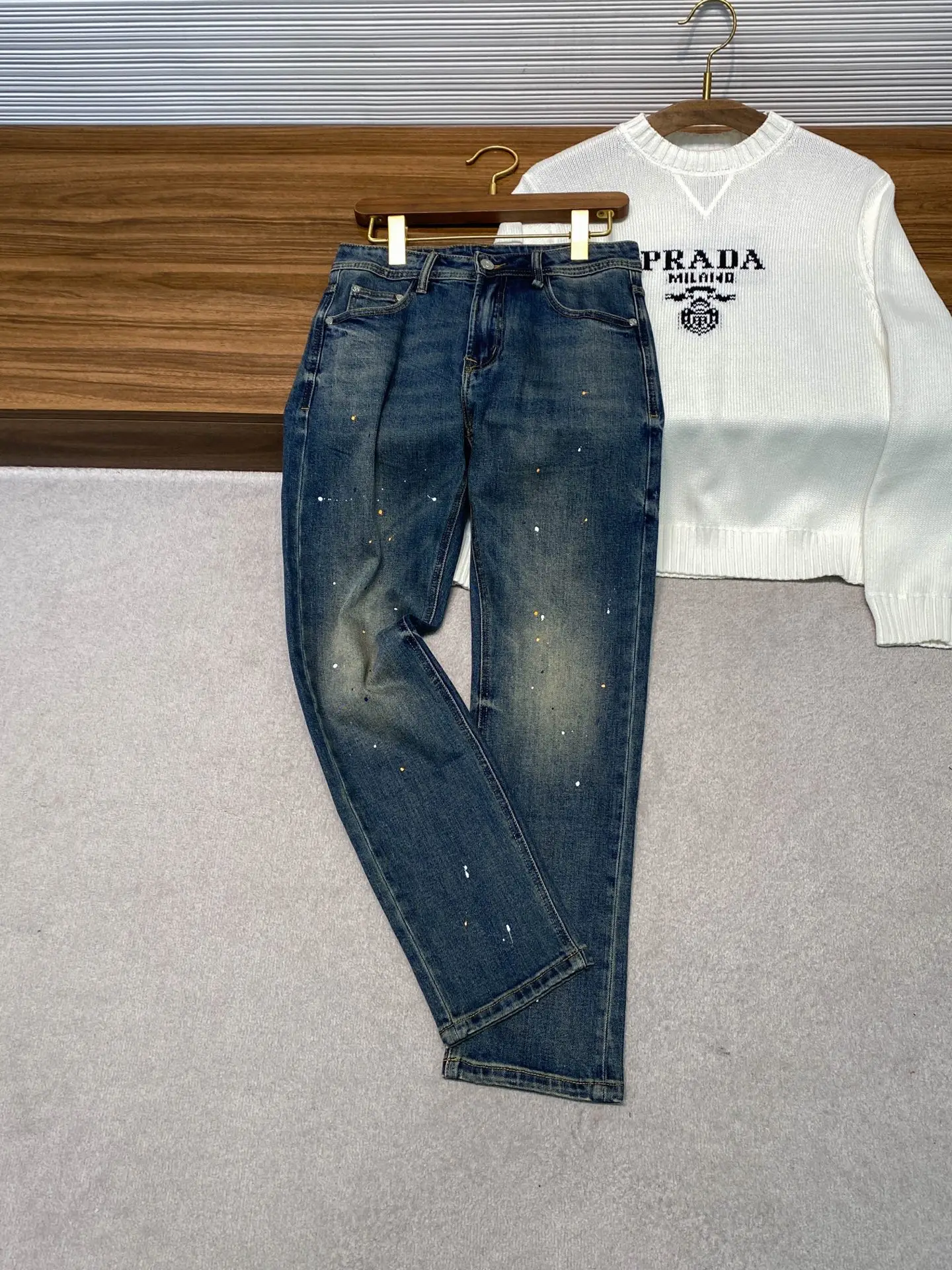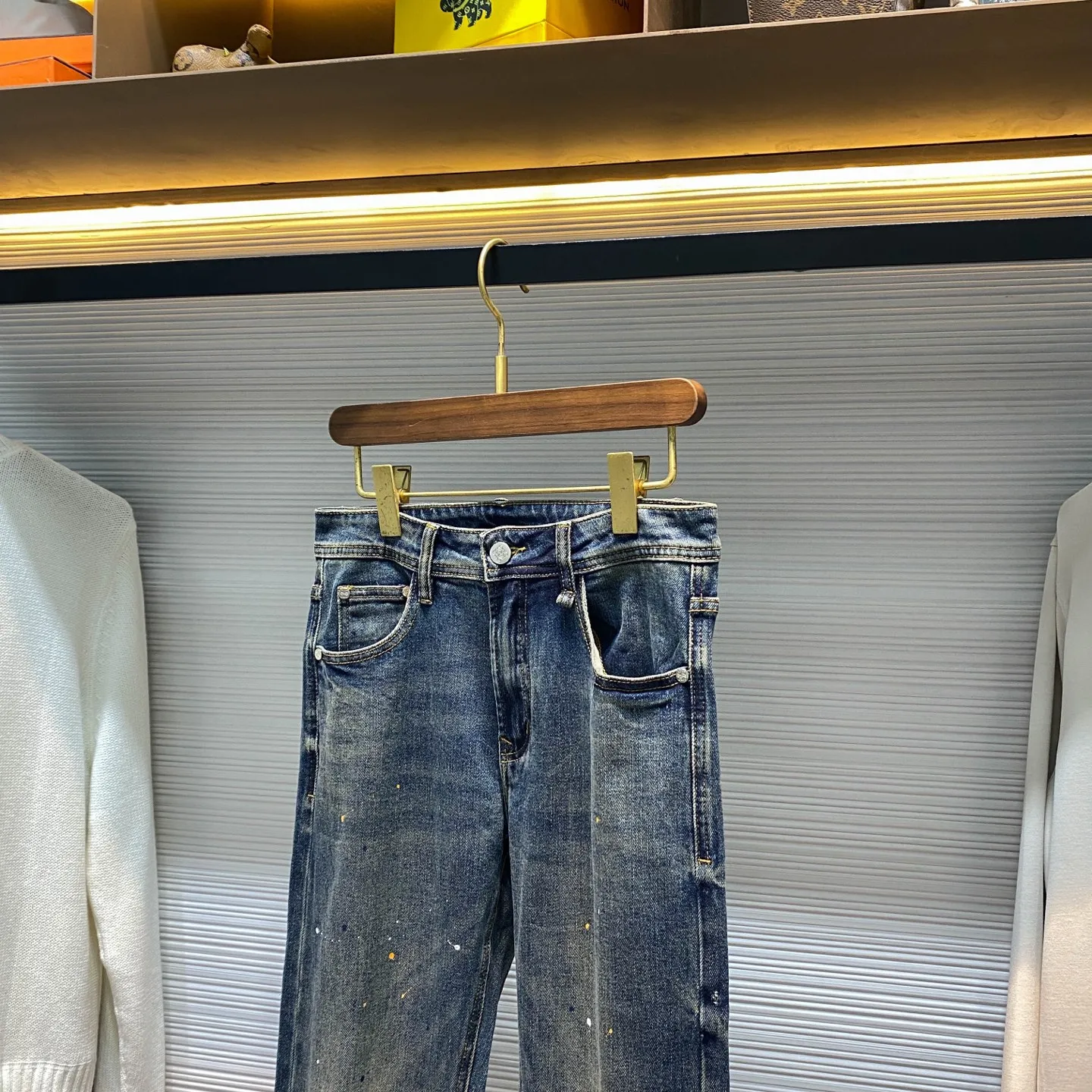 -LW26 FW早秋新款复古怀旧水洗丹宁牛仔裤 男士时尚不规则漆点装饰修身直筒牛仔长裤 男生体重130斤以内选择30码 130-138斤选择31码 138-146斤选择32码 146-154斤选择33码 154-164斤选择34码 164-174斤选择36码 174-184斤选择38码