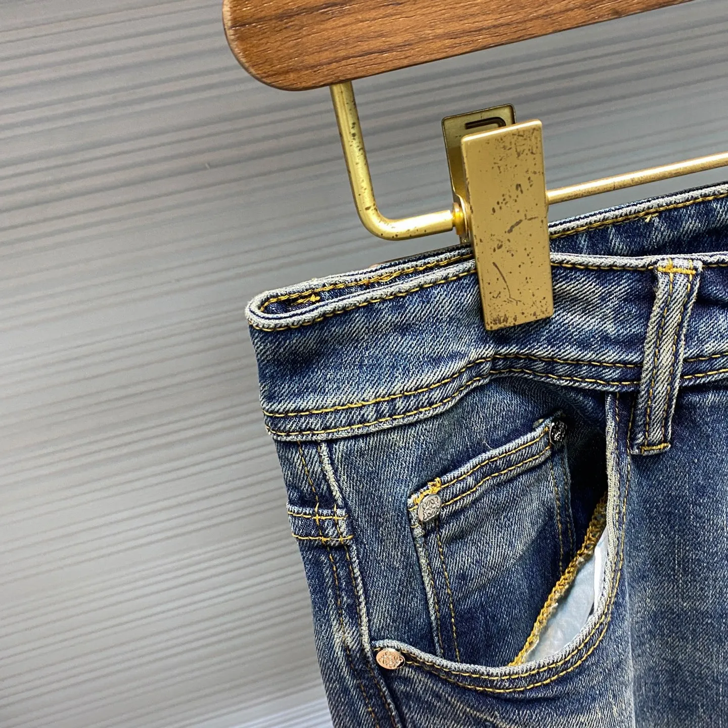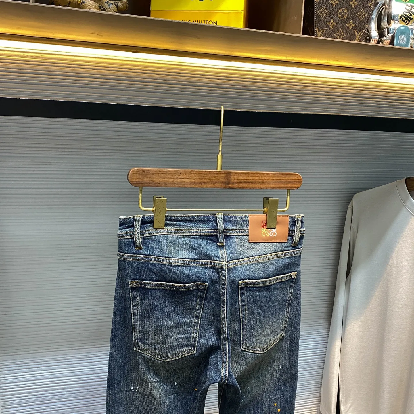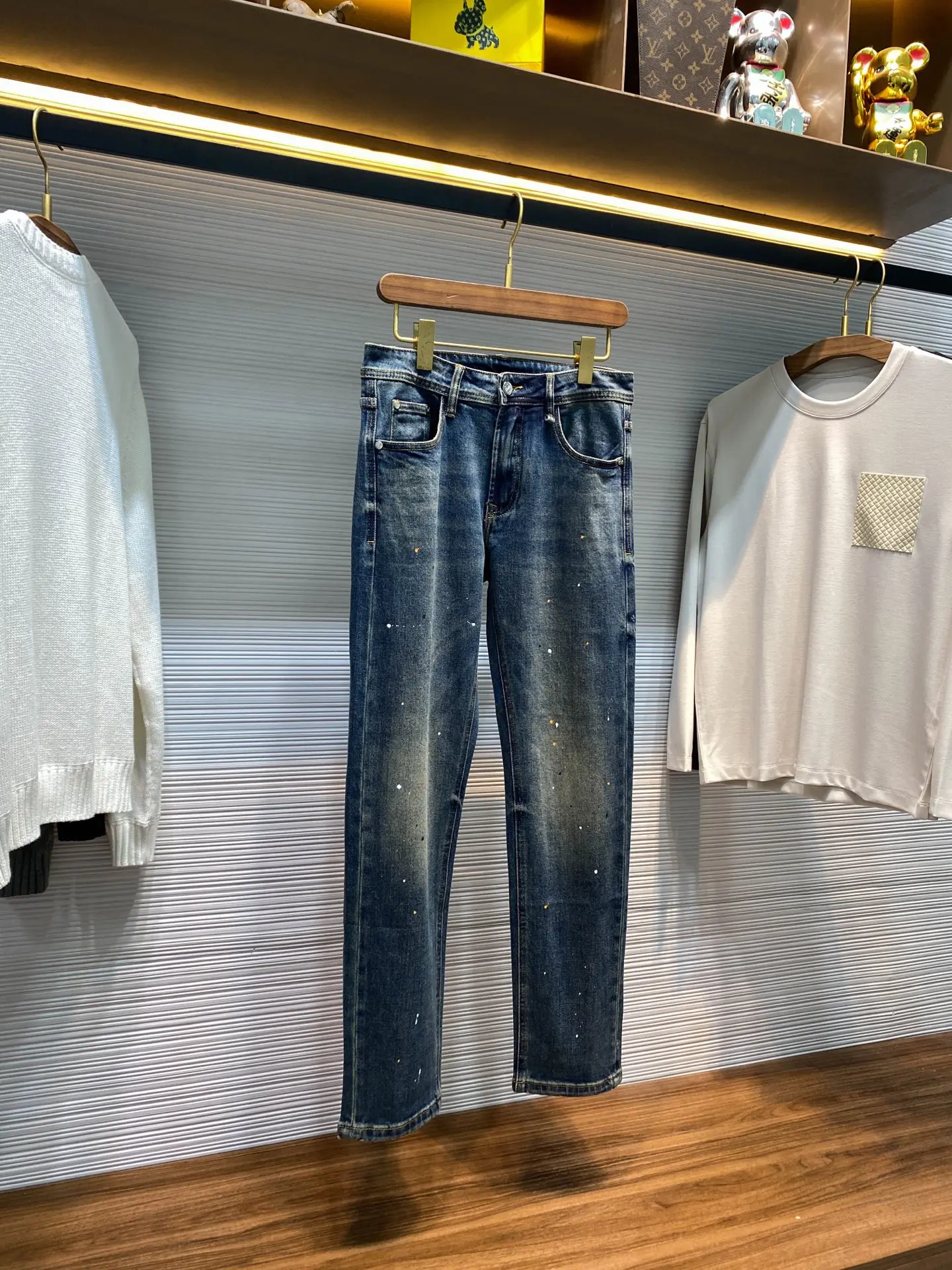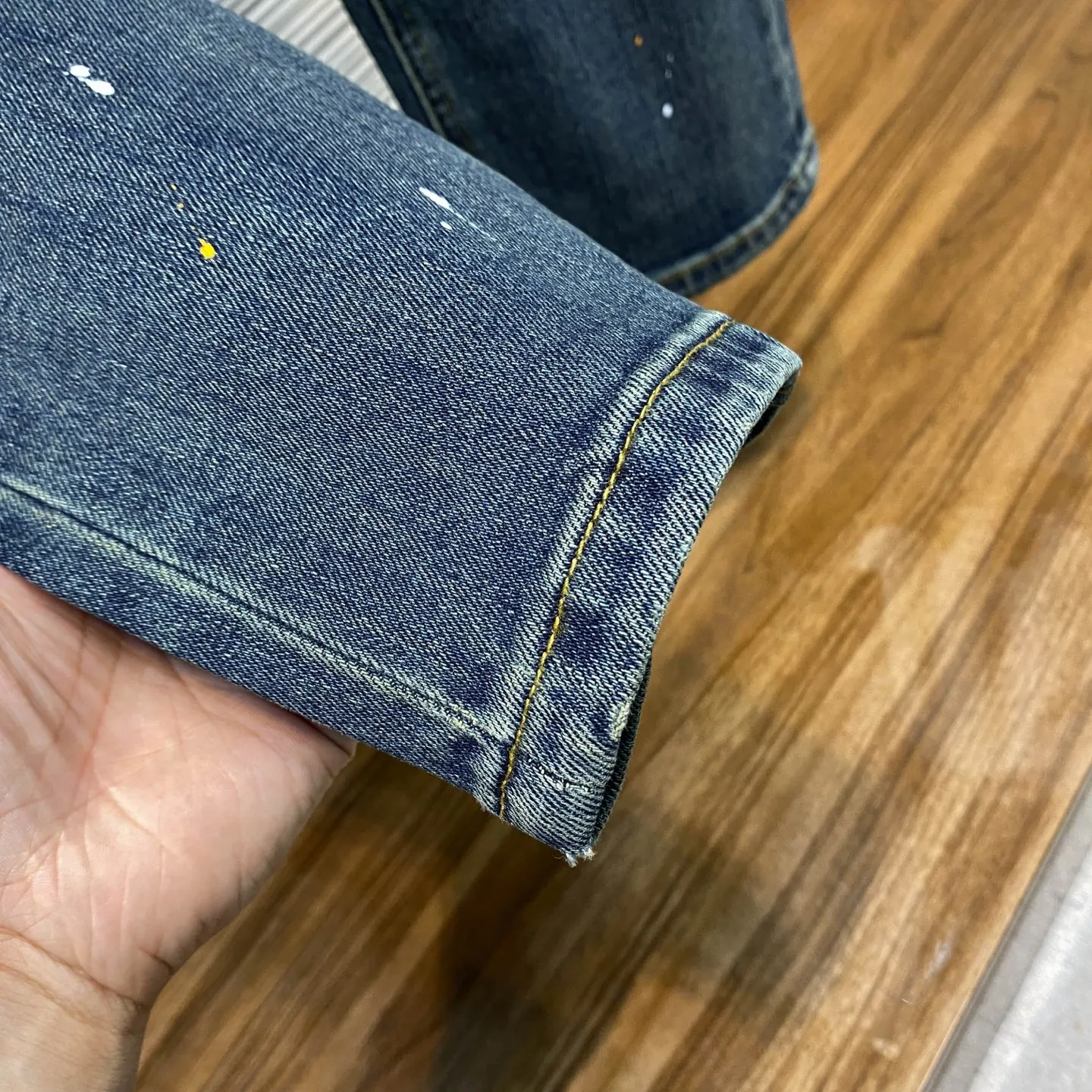 LW26 FW早秋新款复古怀旧水洗丹宁牛仔裤 男士时尚不规则漆点装饰修身直筒牛仔长裤 男生体重130斤以内选择30码 130-138斤选择31码 138-146斤选择32码 146-154斤选择33码 154-164斤选择34码 164-174斤选择36码 174-184斤选择38码