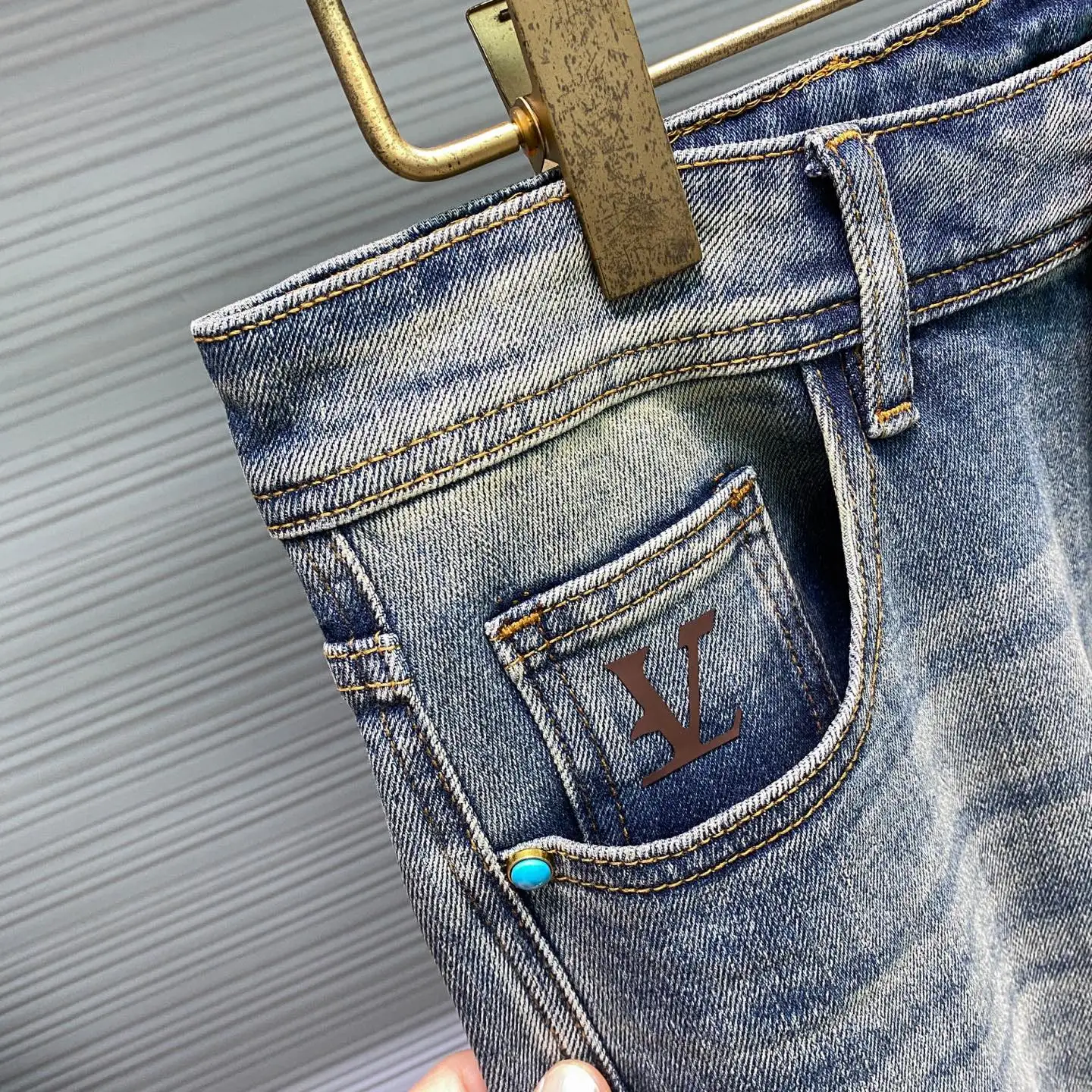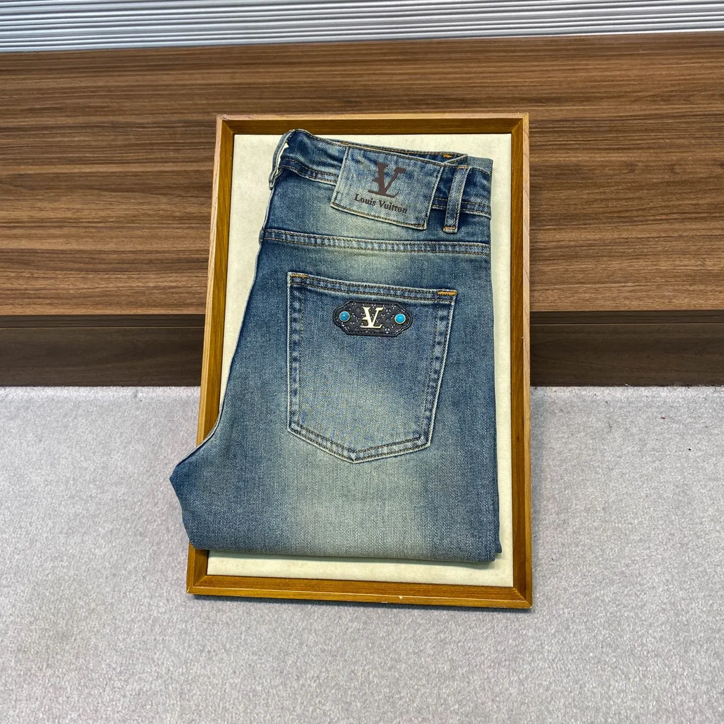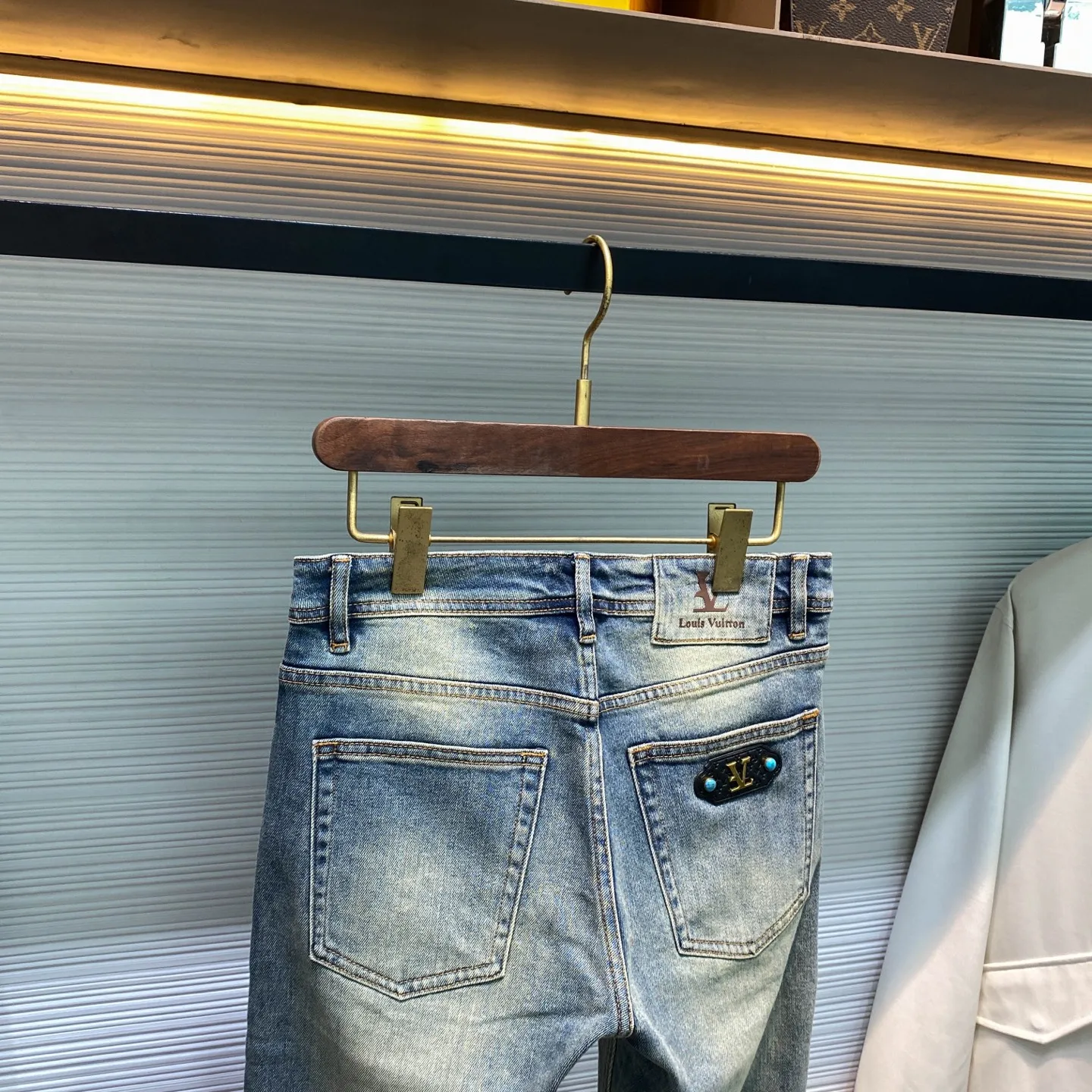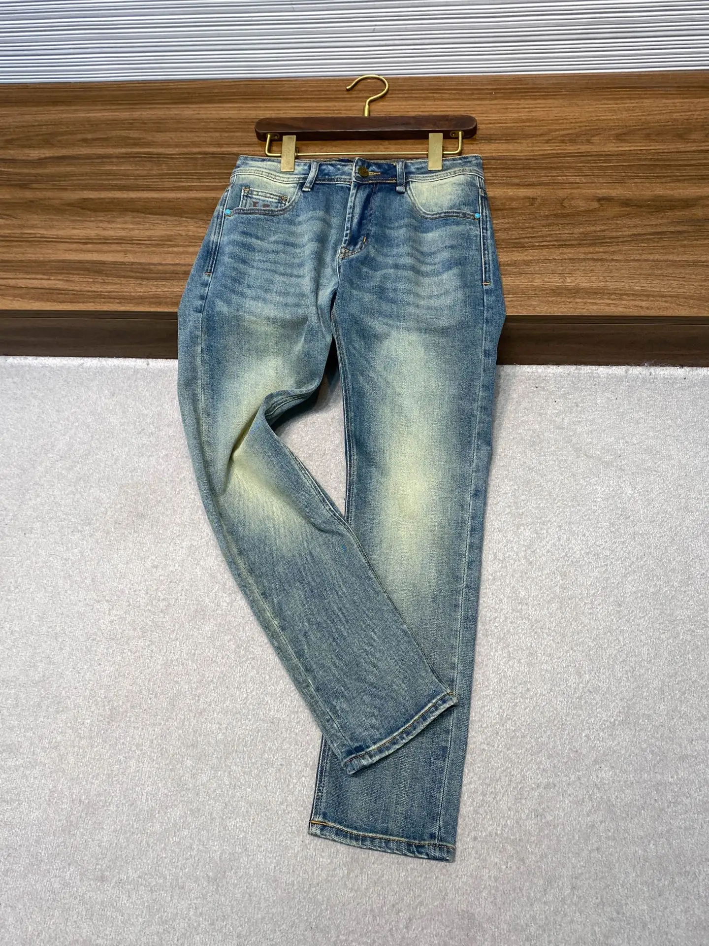 1V 新款蓝色水洗磨白棉质牛仔裤 男士宝石皮标铭牌时尚百搭修身牛仔长裤 男生体重130斤以内选择30码 130-138斤选择31码 138-148斤选择32码 148-158斤选择33码 158-168斤选择34码 168-178斤选择36码 178-188斤选择38码