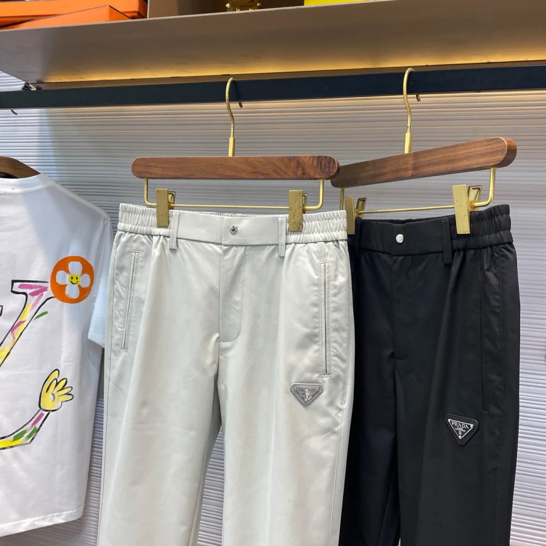 黑色齐码.卡其无 PRA新款精纺斜纹棉布时尚休闲裤 男士金属三角标徽章直筒百搭休闲长裤 春夏新款休闲时尚裤 男生体重130斤以内选择M码 130-143斤选择L码 143-156斤选择XL码 156-170斤选择XXL码 170-186斤选择3XL码