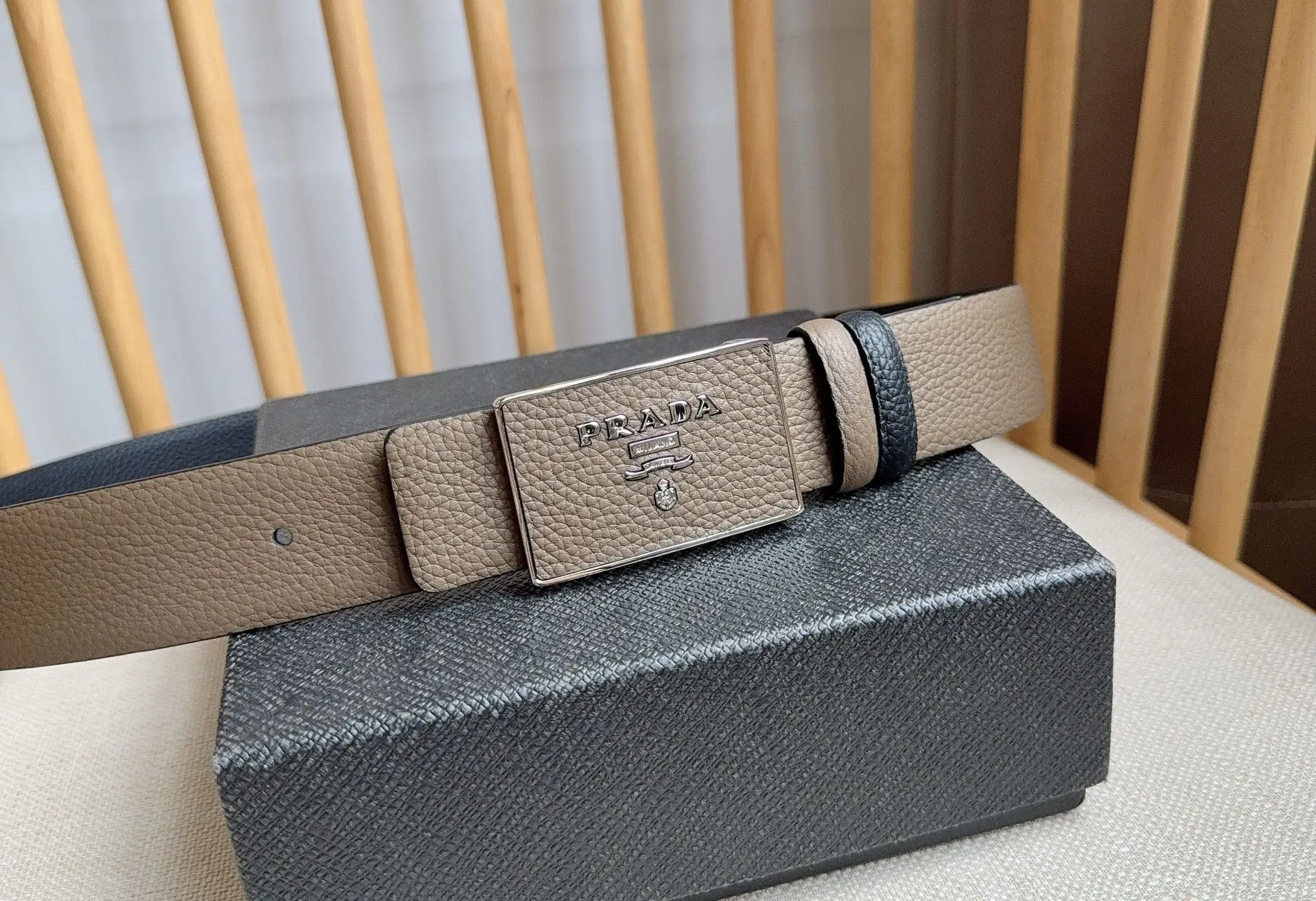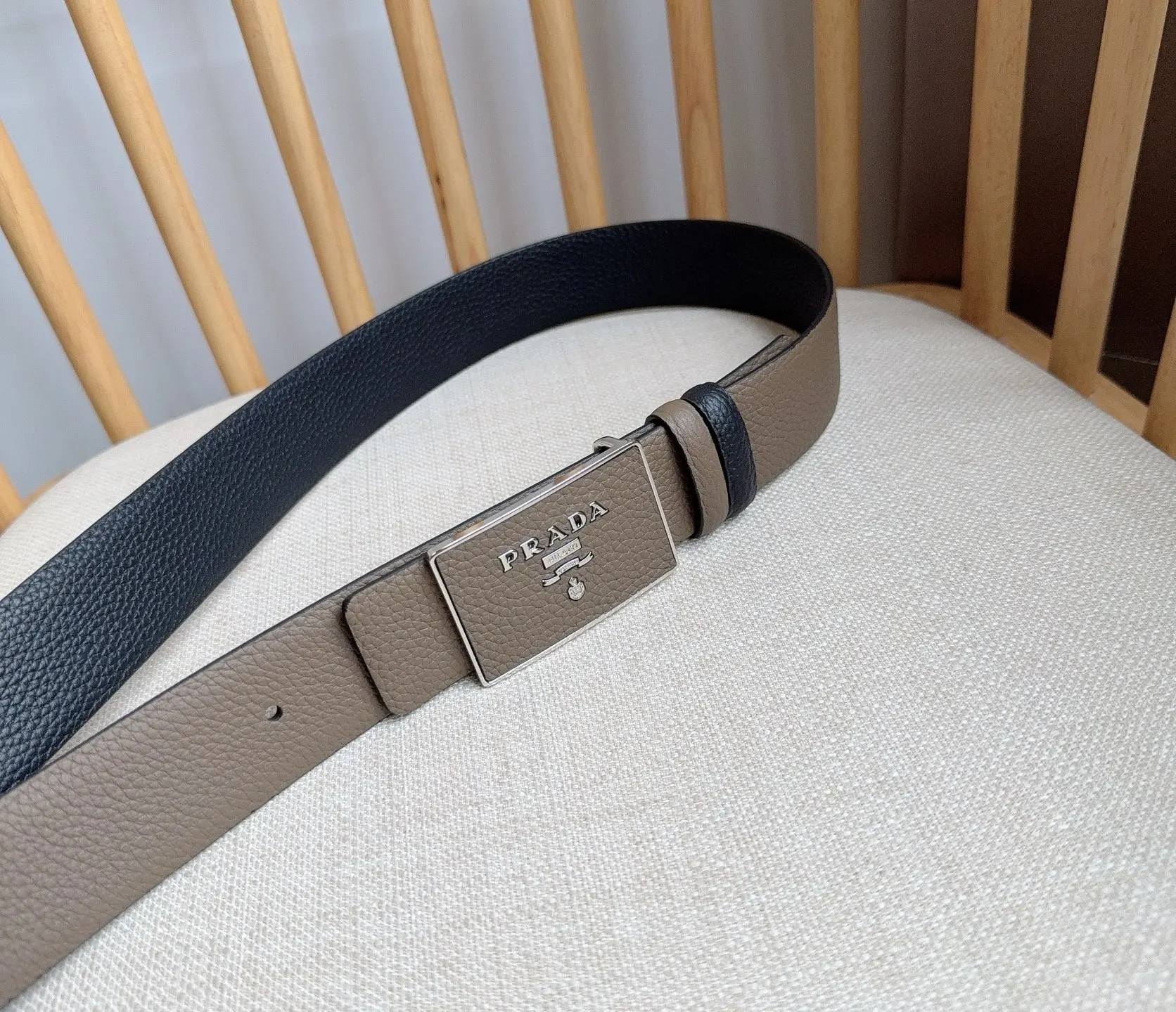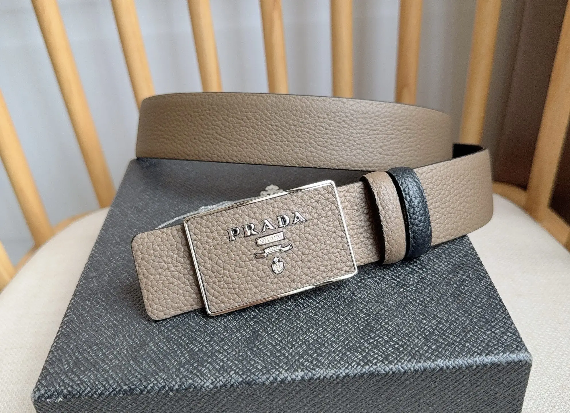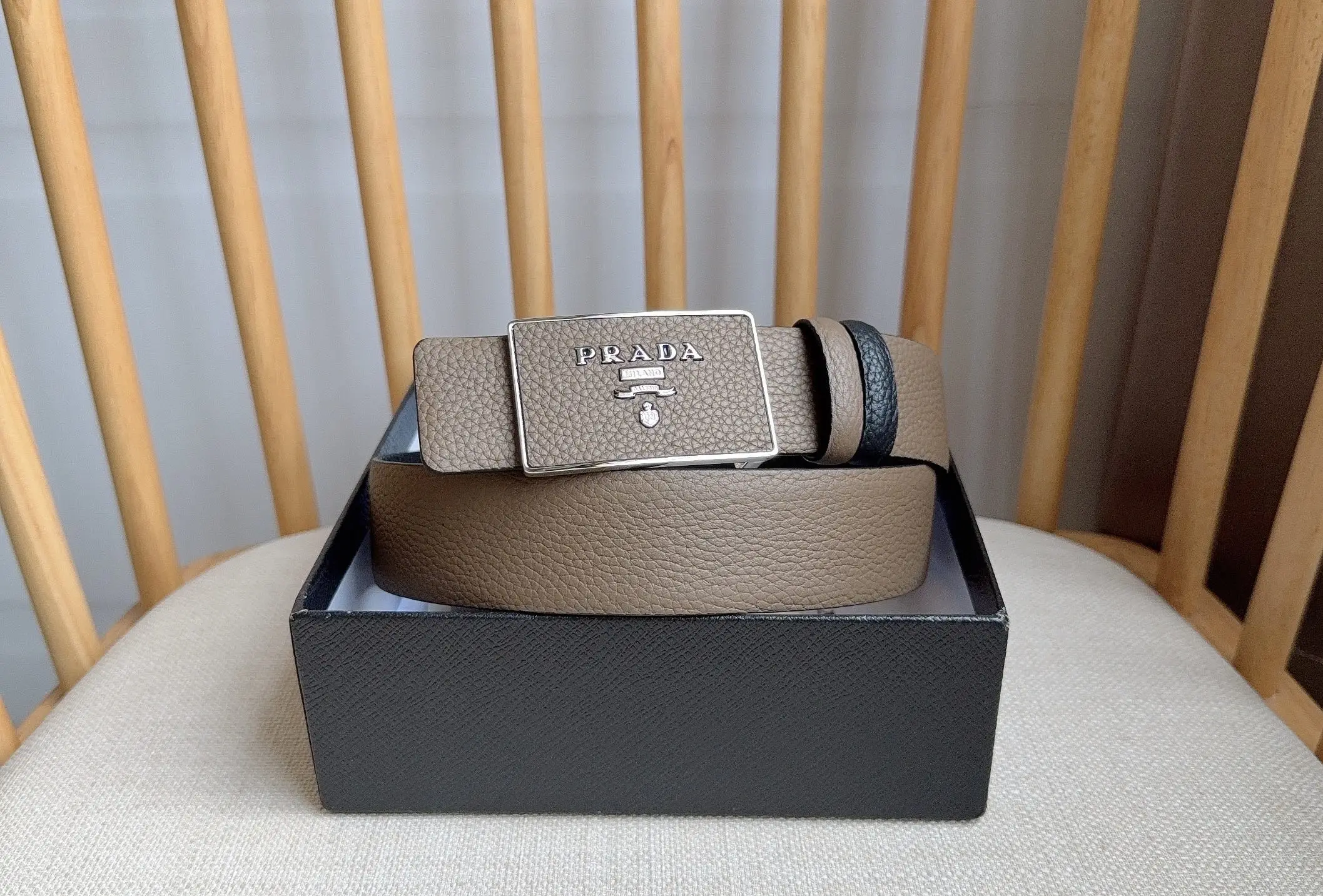 PRADA (普拉达) 专柜最新款 这款搭扣式腰带出自多功能的组合式配饰系列 可随心搭配 带扣上饰有刻字徽标简约廓形彰显别具一格的特色和现代感 呈现精致质感 宽:3.5cm