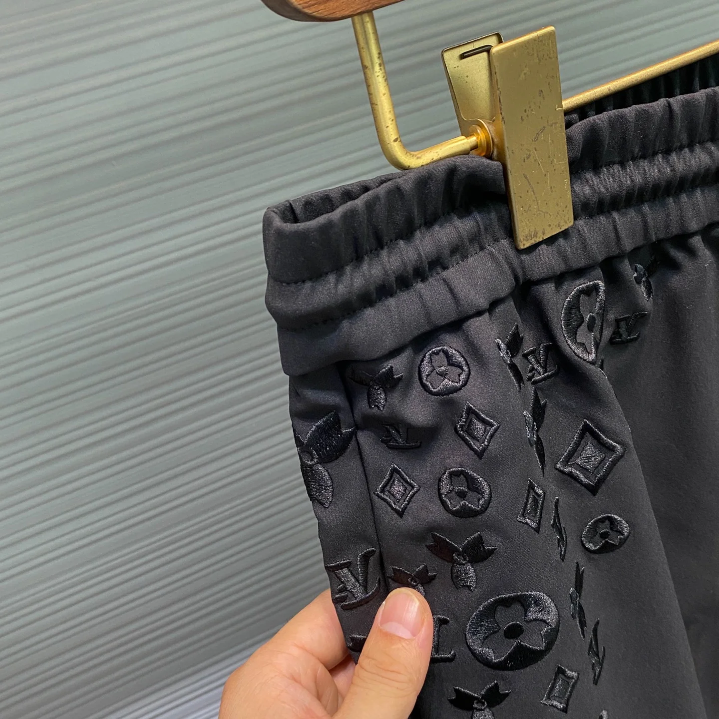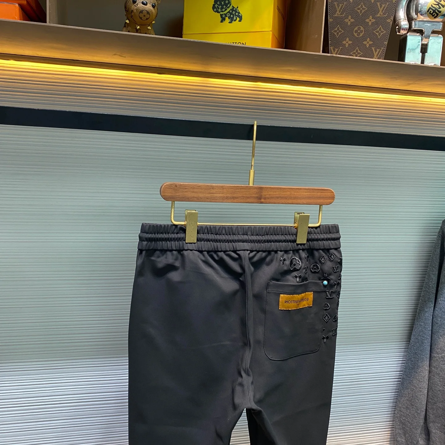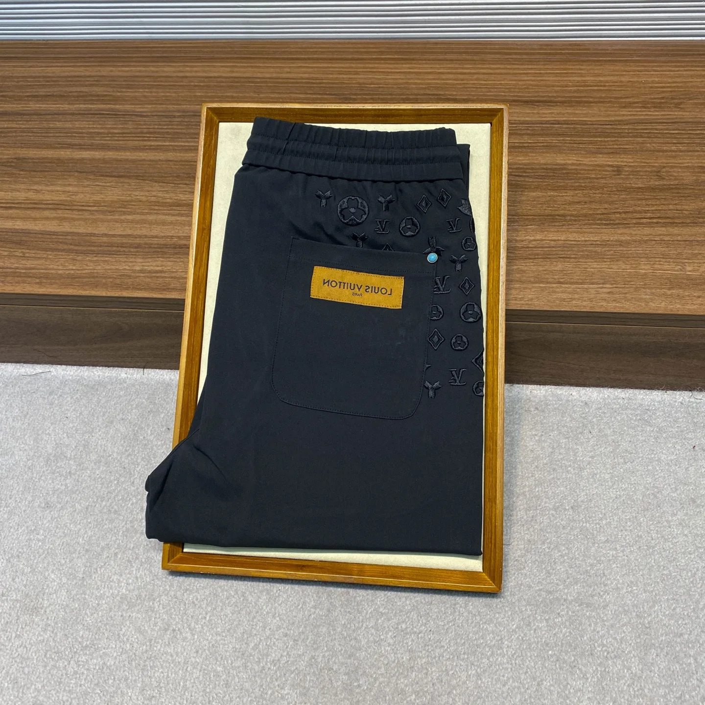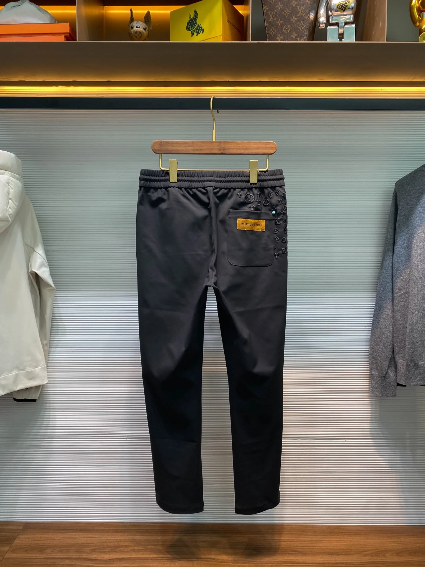 1V 新款黑色科技棉布抽绳休闲裤 男士满天星老花刺绣时尚百搭休闲长裤 男生体重133斤以内选择M码 133-145斤选择L码 145-158斤选择XL码 158-172斤选择XXL码 172-186斤选择3XL码