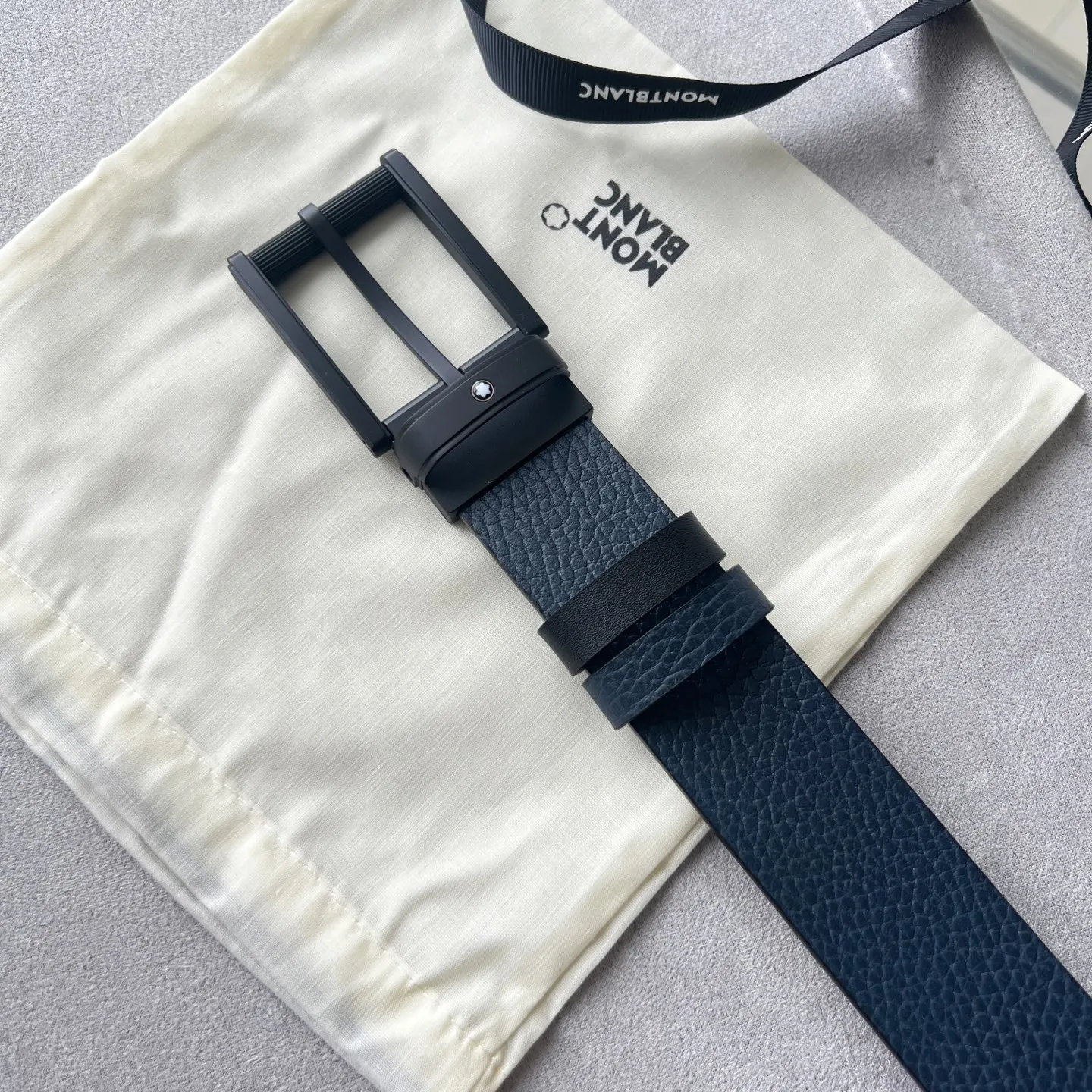 万宝龙方形带扣黑色蓝色腰带 35毫米