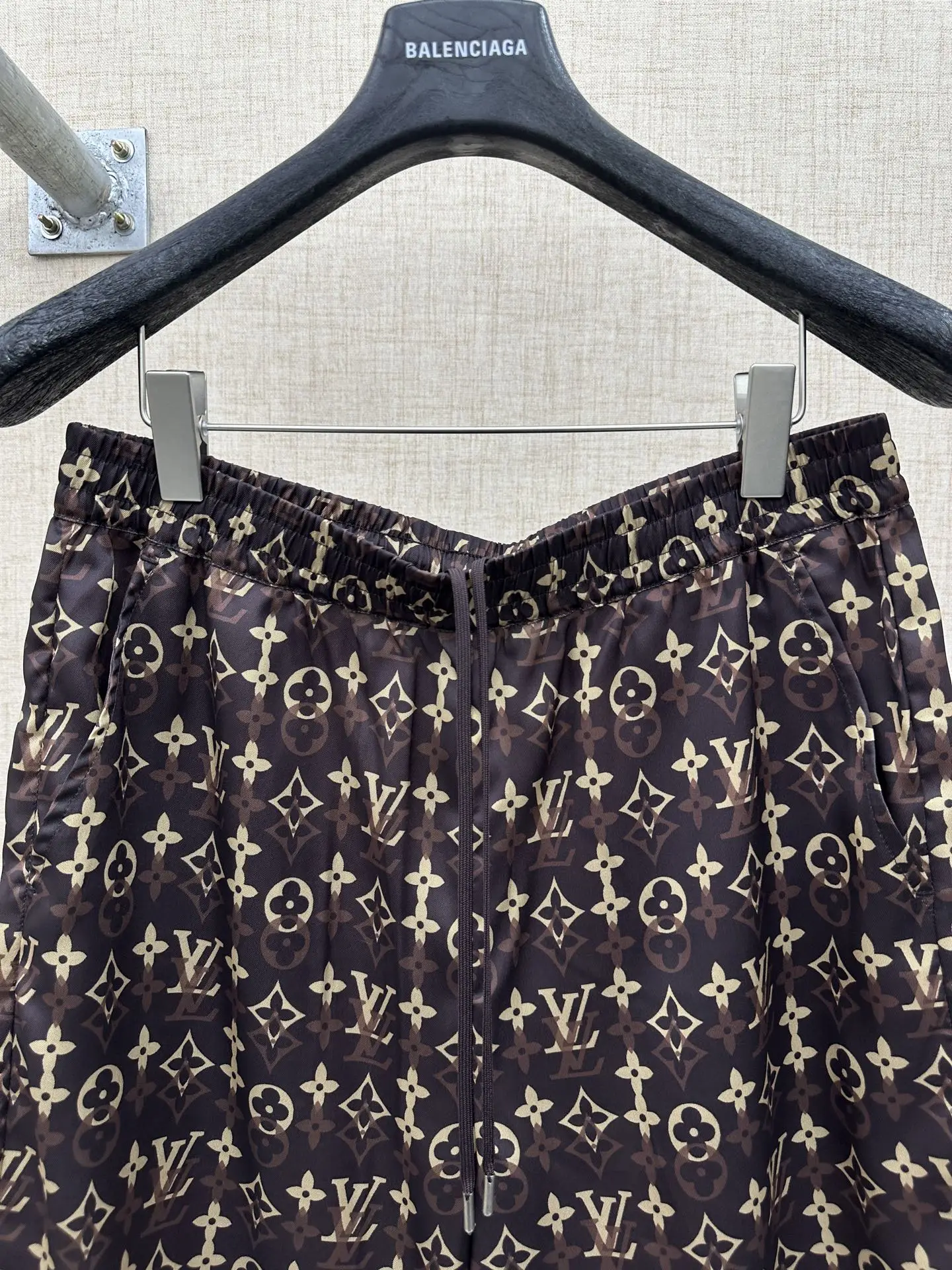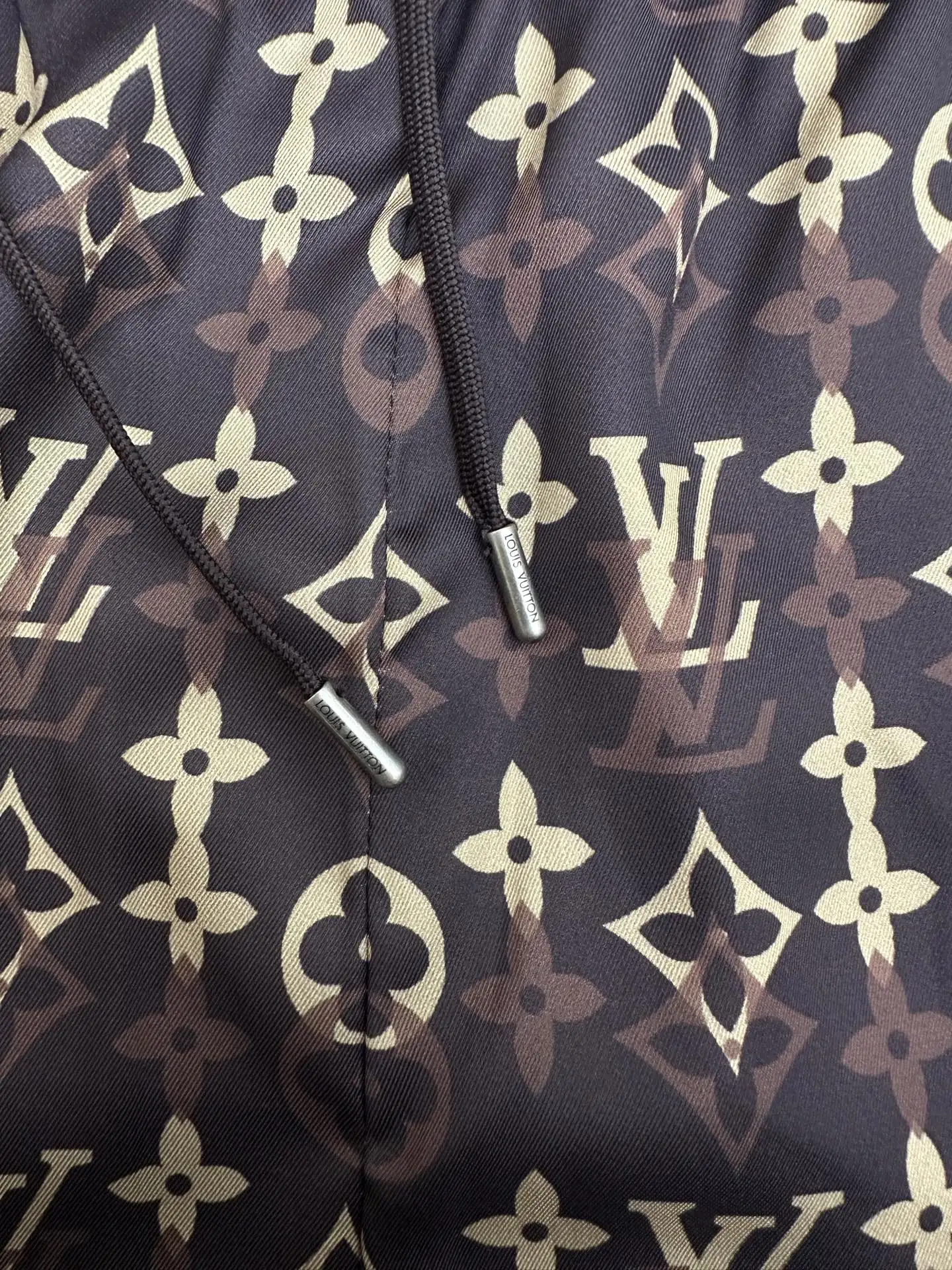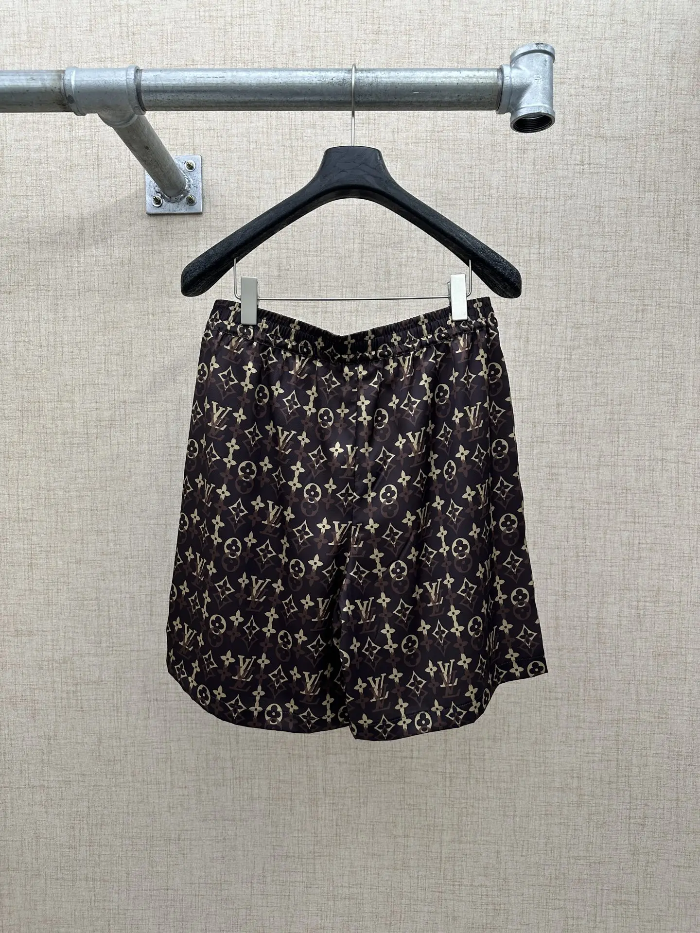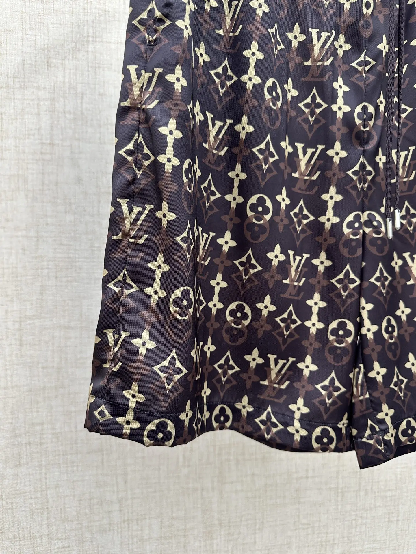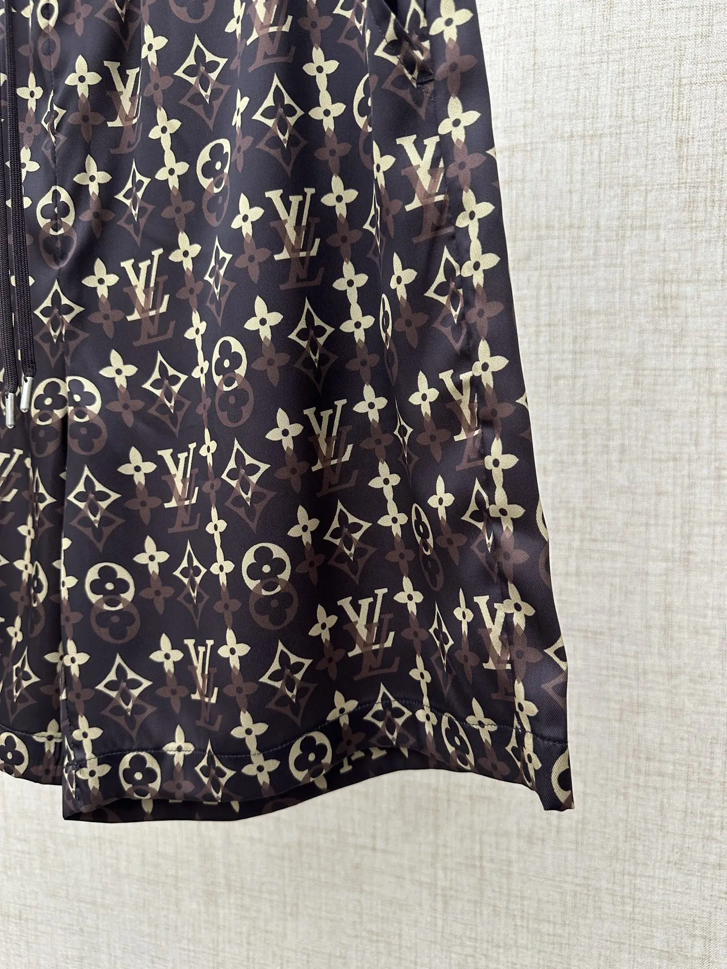 2026ss春夏新款 LOUIS VUITTON 的经典 Monogram 系列休闲套装 短裤松紧抽绳腰头五分裤版型 图案深棕底色搭配经典金色 Monogram 老花 包含 LV 字母 四叶花 圆形等素 是 LV 最具辨识度的标志性设计