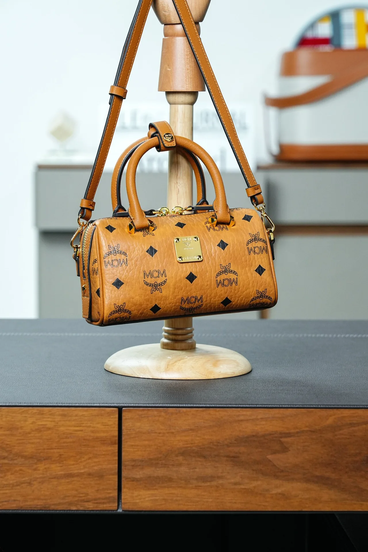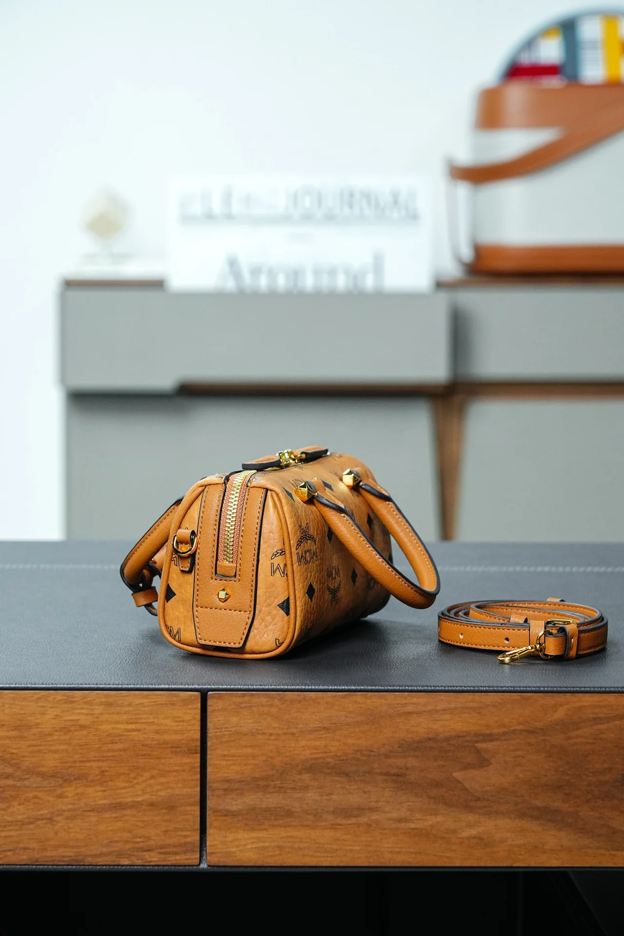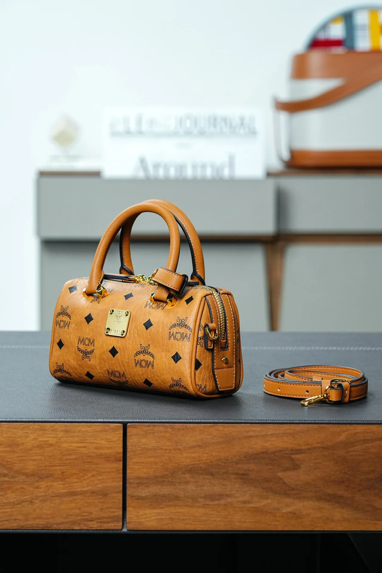 全新升级 官网同步𝙈𝘾𝙈 𝘼𝙧𝙚𝙣 𝙀𝙨𝙨𝙚𝙣𝙩𝙞𝙖𝙡干邑色𝙈𝙞𝙣𝙞 波士顿枕头包P CP独家出品 经典干邑色 单肩 斜挎 手拧 官网同步在售款 这款mini波士顿包对经典风格进行了全新演绎 采用经典Visetos材料制成 表达了向MCM根植于旅行理念的致敬 其外型让人联想起周末旅行包 采用干净利落的线条设计 并配有方便开启的加长拉链 做工精细 一丝不苟 顶部提手由手工进行缠绕 针缝和边缘上漆 型号 MWBAASE03CO001尺寸 18*8*9.5cm肩带 102-118cm颜色 干邑色/COGNAC