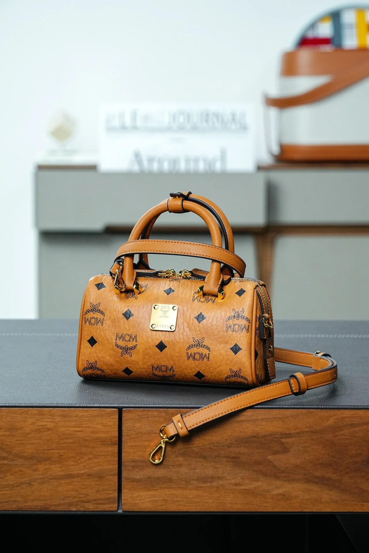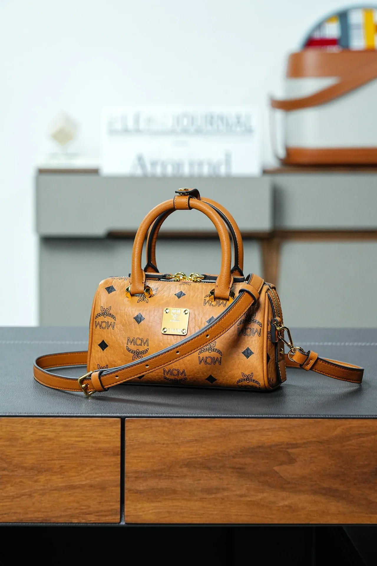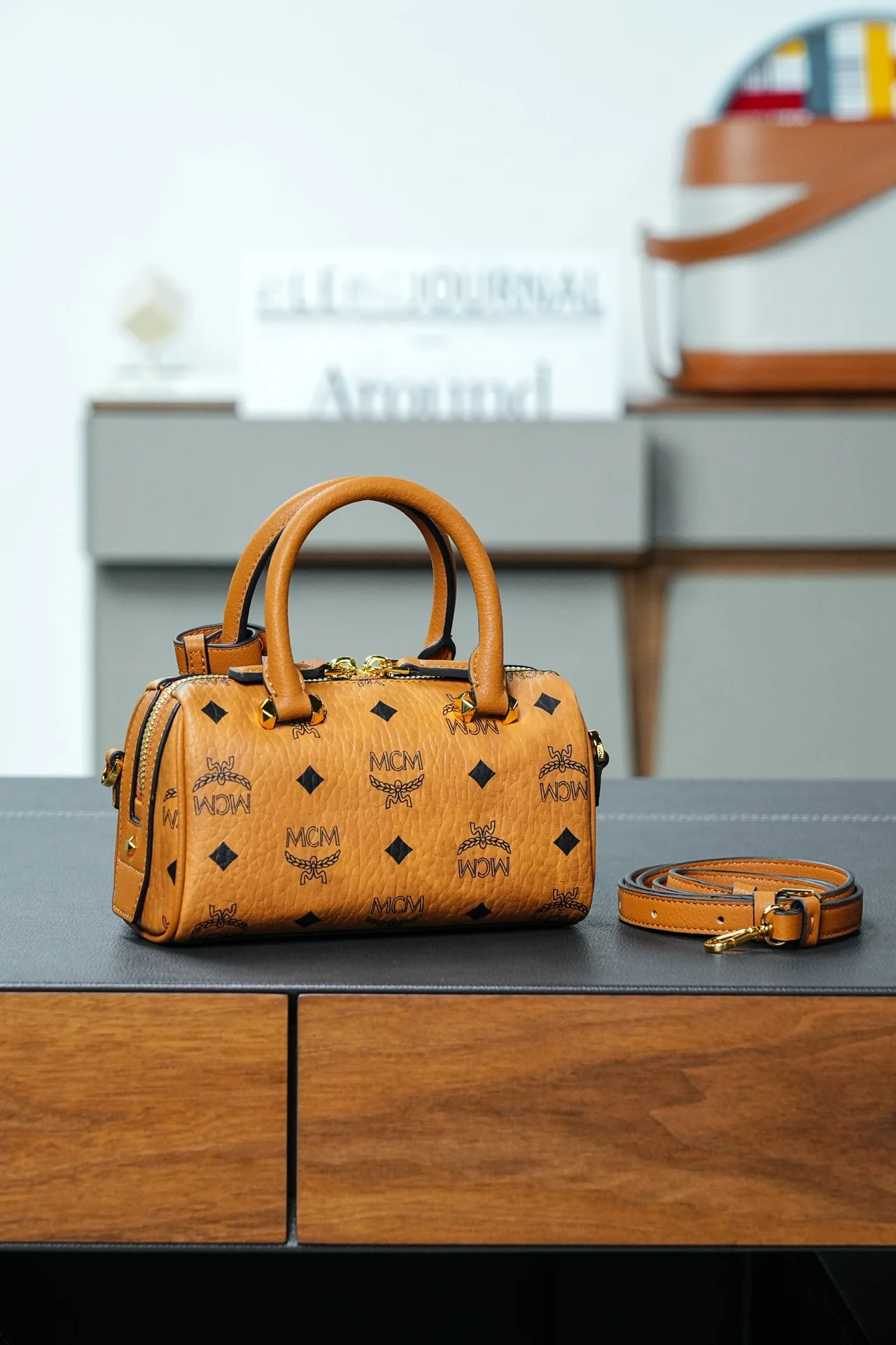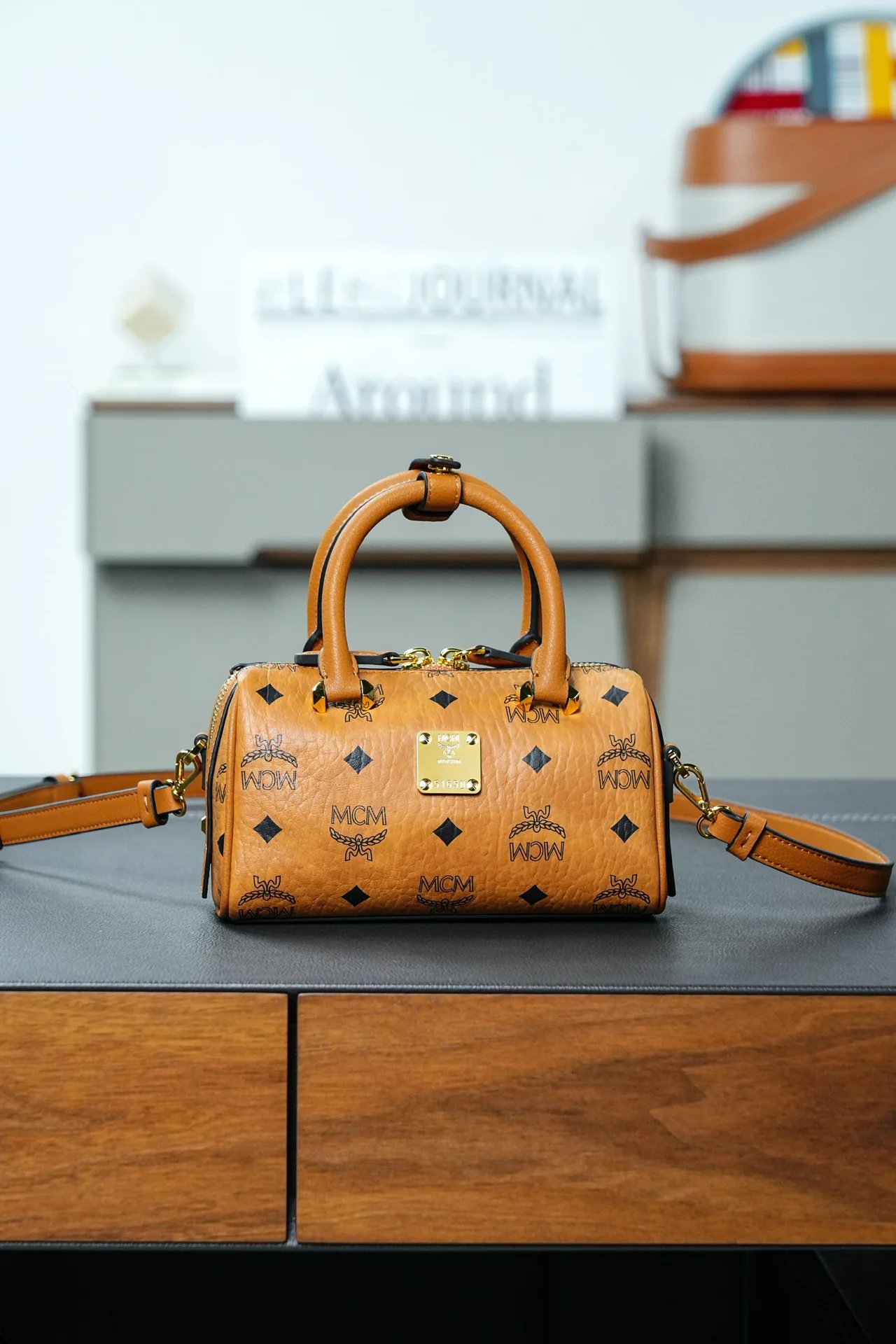 全新升级 官网同步𝙈𝘾𝙈 𝘼𝙧𝙚𝙣 𝙀𝙨𝙨𝙚𝙣𝙩𝙞𝙖𝙡干邑色𝙈𝙞𝙣𝙞 波士顿枕头包P CP独家出品 经典干邑色 单肩 斜挎 手拧 官网同步在售款 这款mini波士顿包对经典风格进行了全新演绎 采用经典Visetos材料制成 表达了向MCM根植于旅行理念的致敬 其外型让人联想起周末旅行包 采用干净利落的线条设计 并配有方便开启的加长拉链 做工精细 一丝不苟 顶部提手由手工进行缠绕 针缝和边缘上漆 型号 MWBAASE03CO001尺寸 18*8*9.5cm肩带 102-118cm颜色 干邑色/COGNAC