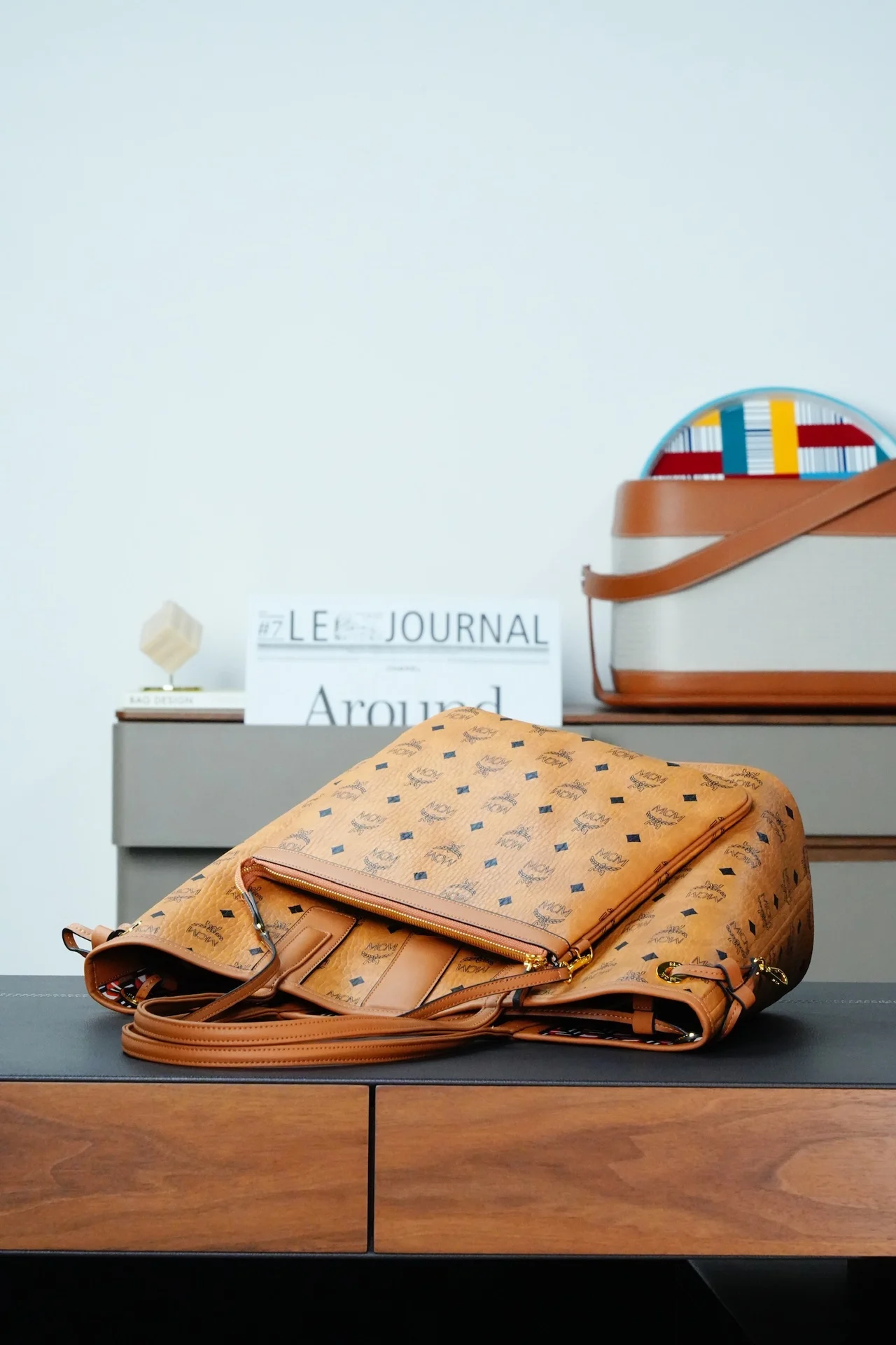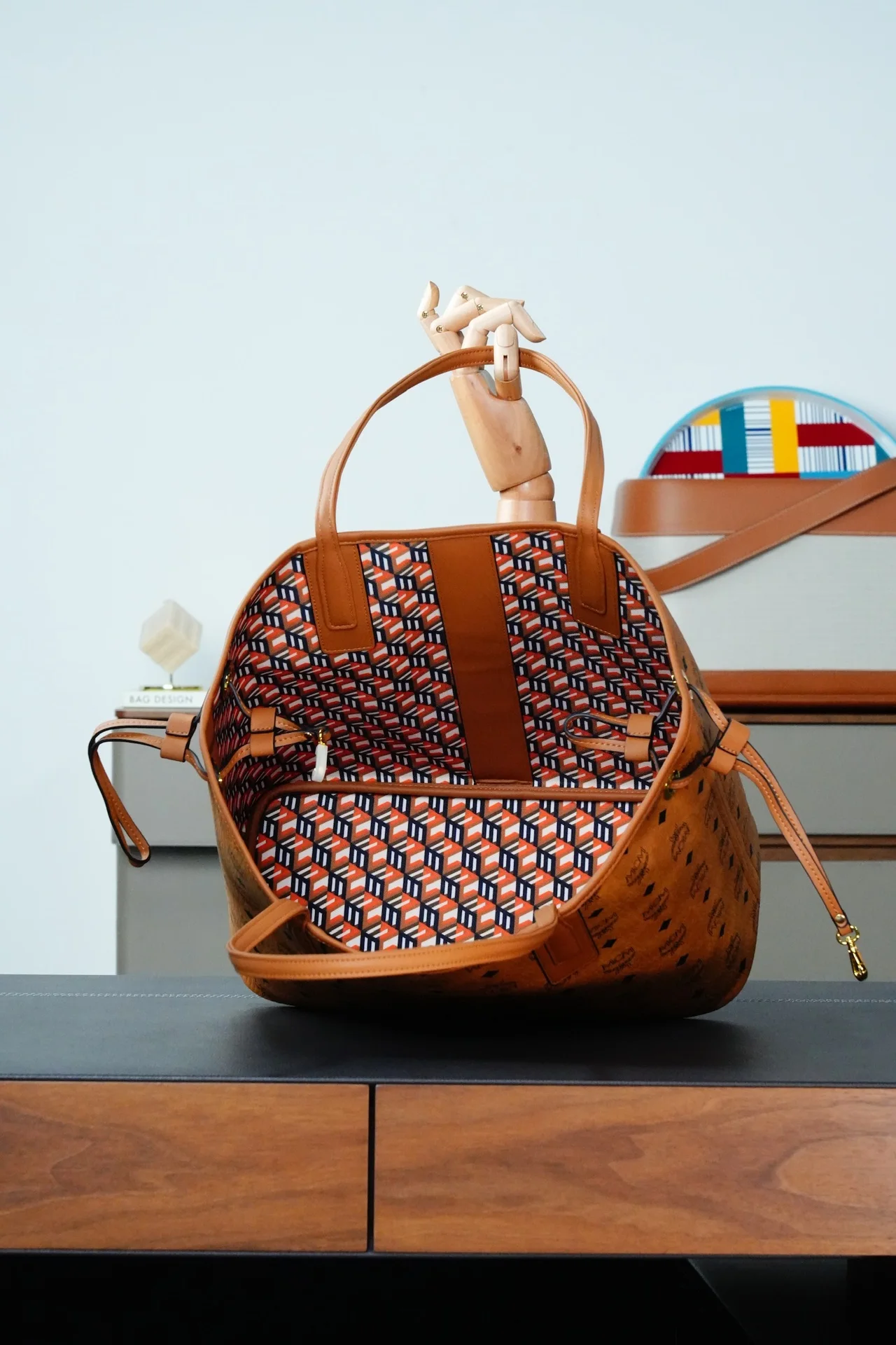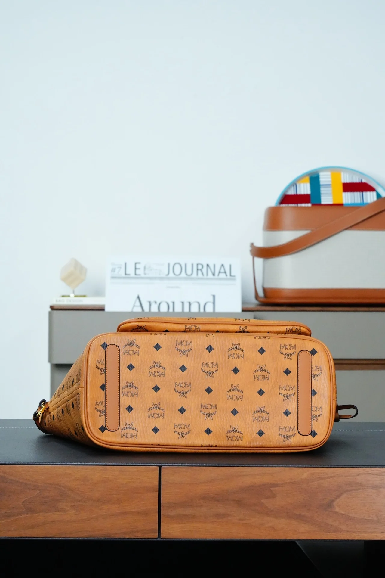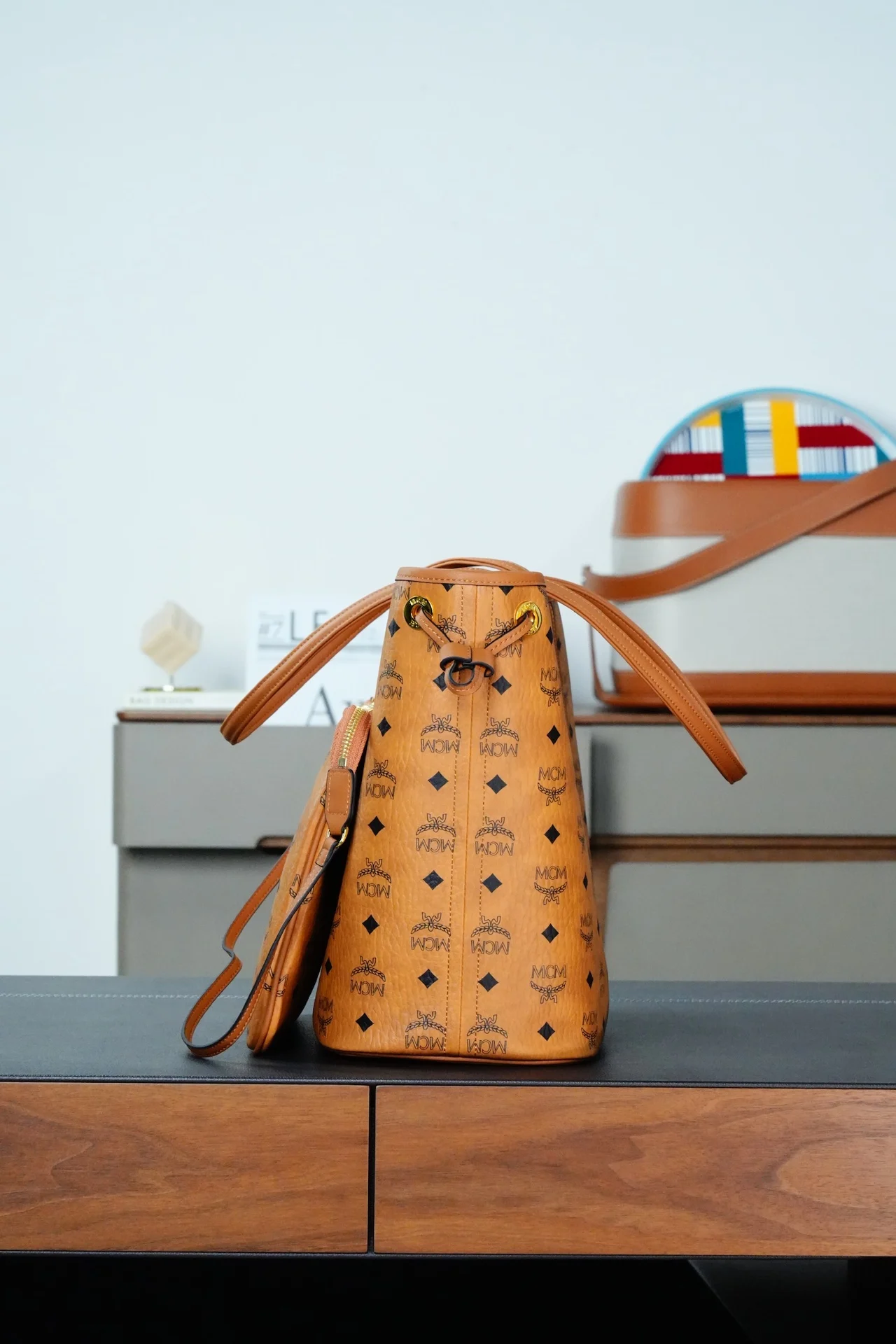 全新升级 官网同步𝙈𝘾𝙈 𝙇𝙞𝙯 𝙑𝙞𝙨𝙚𝙩𝙤𝙨干邑色中号 双面购物袋子母包 CP独家出品 干邑色两种经典外观被融合在一款日常单品中 这款中号Liz购物袋由Visetos及Nappa皮革制成 可双面使用 翻转出的内里展现Cubic 经典花纹图样 此外 轻巧的外型可通过皮革抽绳进行扩展收缩 随附的可拆卸拉链手拿包丰富了这款购物袋的功能性 也可取下在短途旅行时单独作为钱包使用 型号 MWPCSVI01CO001尺寸 36*17*28cm提手 垂长24cm特点 双面可用/大小双包颜色 干邑色/棕色