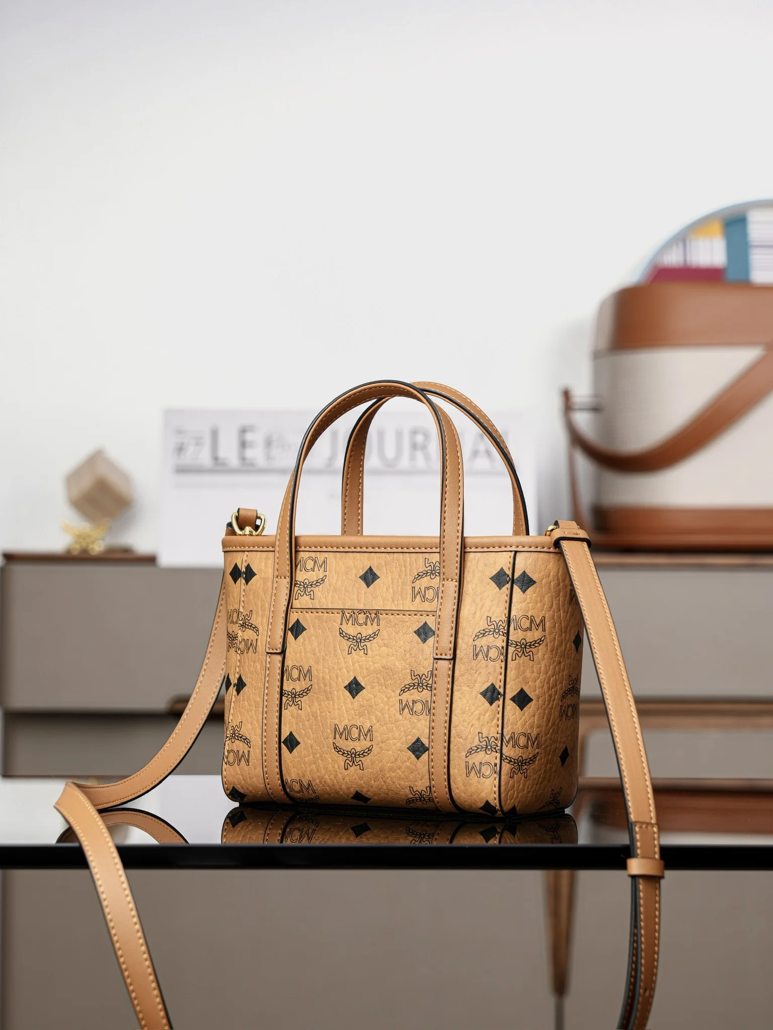 这款缩小版的Toni购物袋采用独特的几何设计 是一款小巧的随身包袋 柔软的皮革提手及可调节的皮革肩带则可实现两种携带方式
