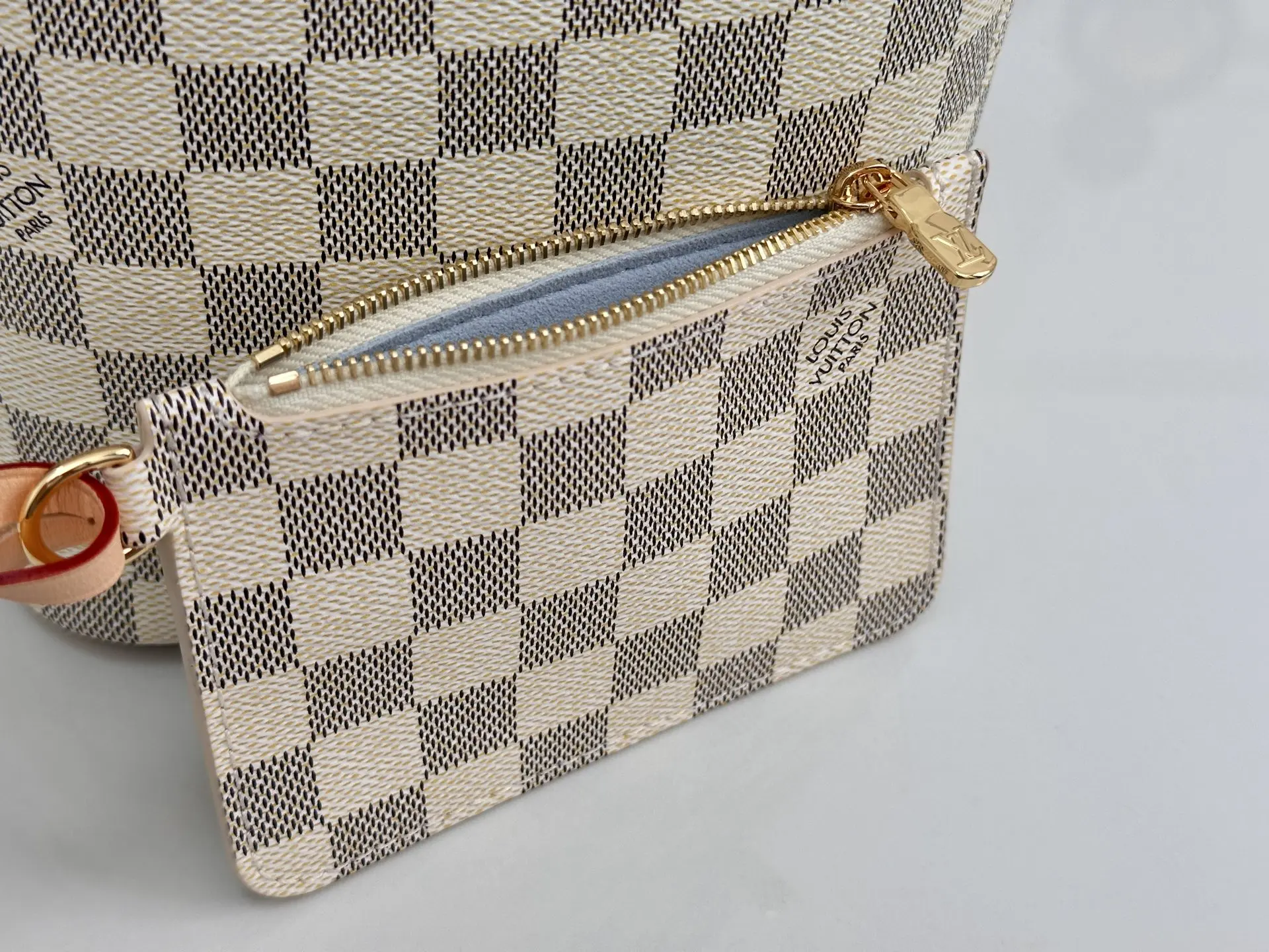 本款All In BB手袋此次取材 Damier Azur帆布焕新演绎 搭配撞色皮革 金属挂锁和可拆卸名牌等多重经典素 可采用多种背携方式点亮昼夜场合 内设可拆卸拉链袋