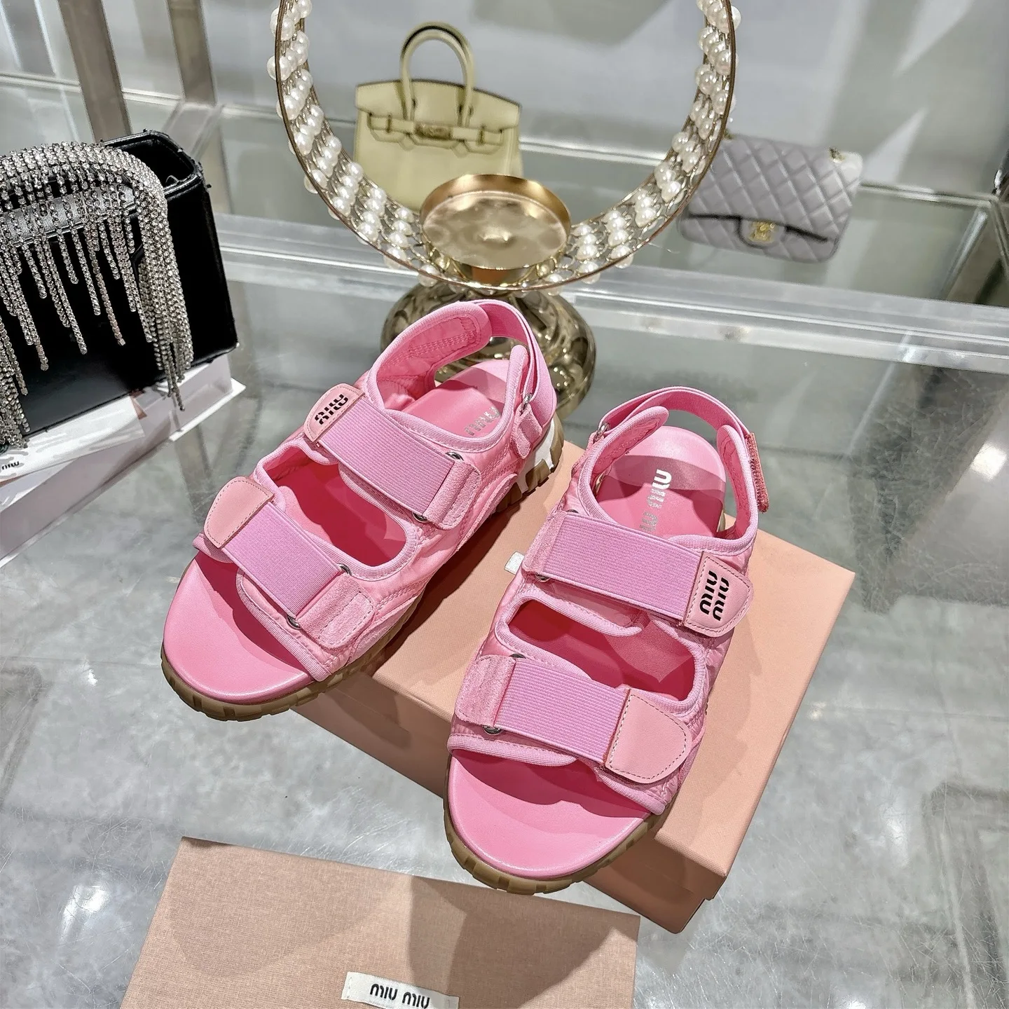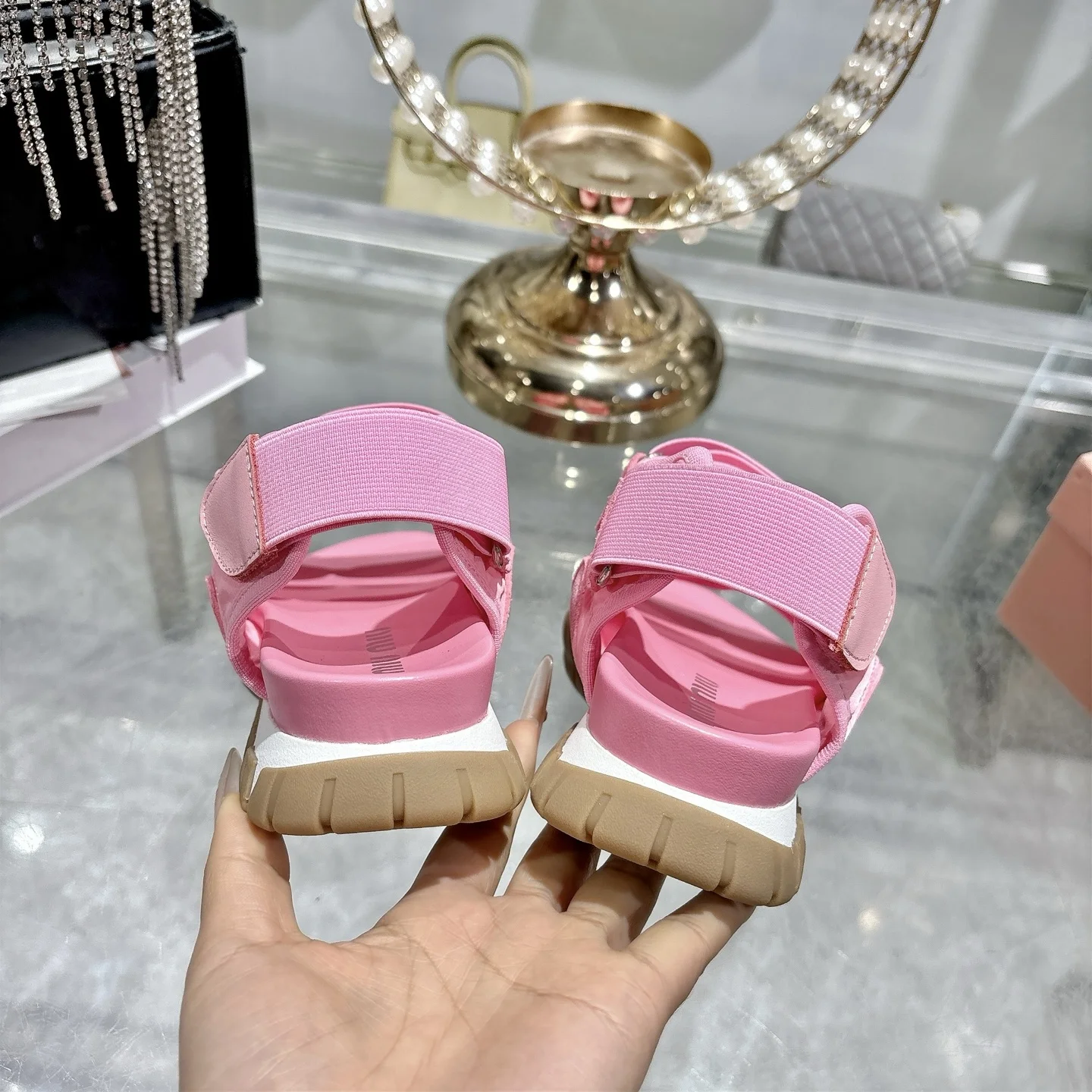 Miu 新款休闲厚底弹力魔术贴沙滩凉鞋