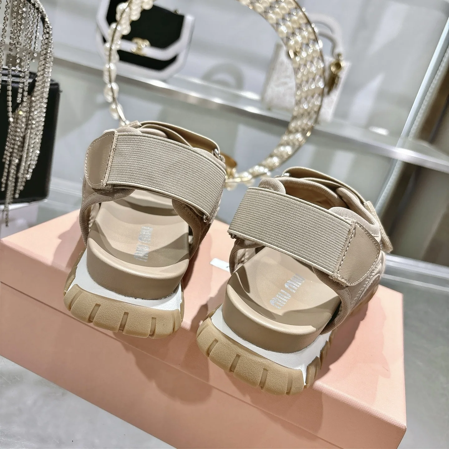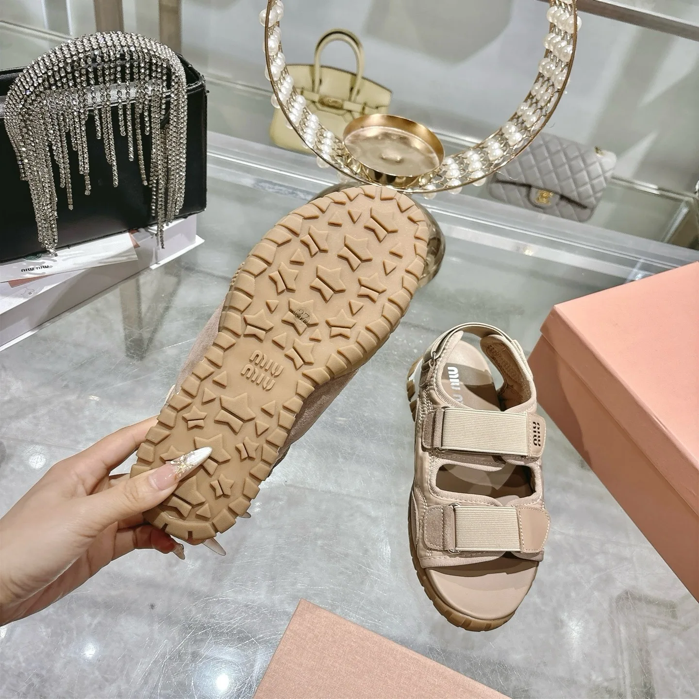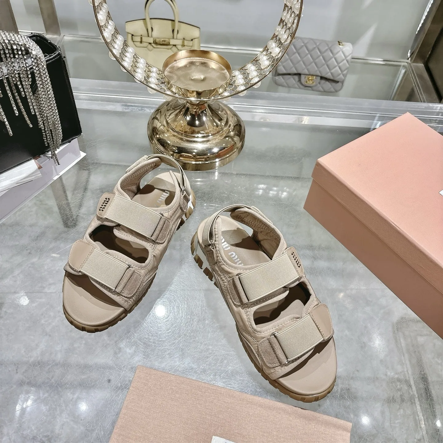 Miu 新款休闲厚底弹力魔术贴沙滩凉鞋