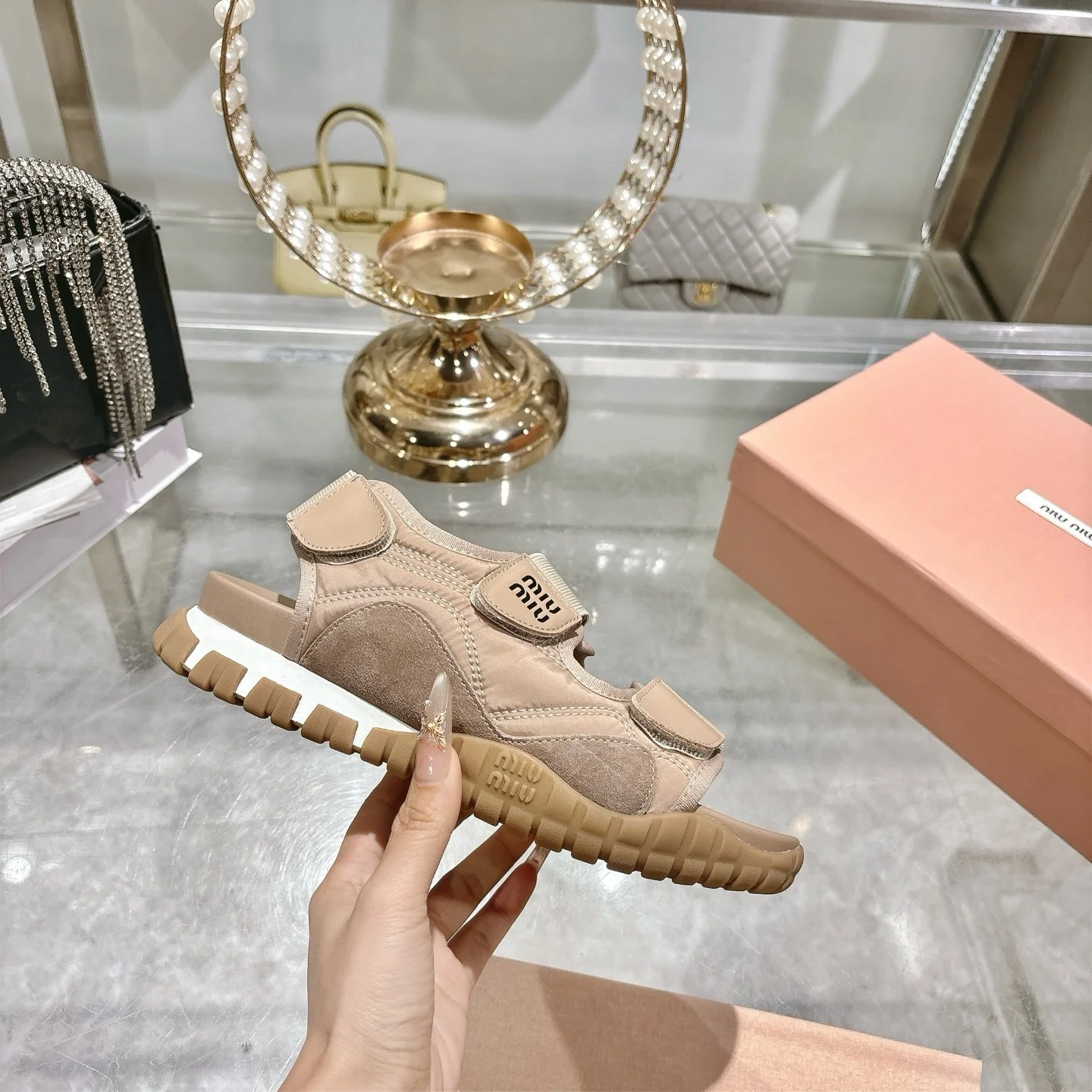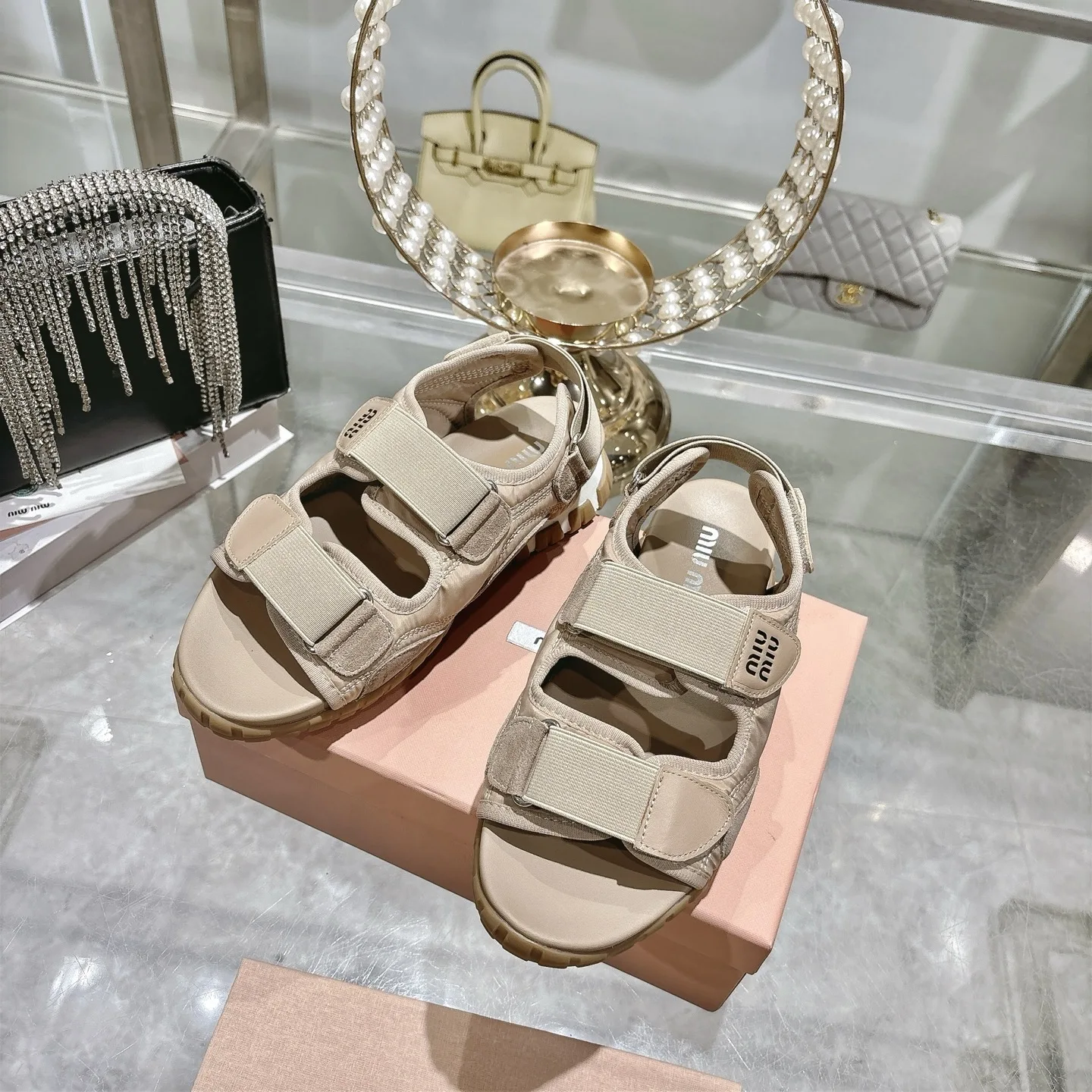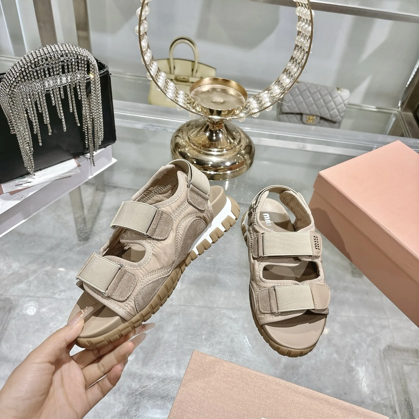 Miu 新款休闲厚底弹力魔术贴沙滩凉鞋