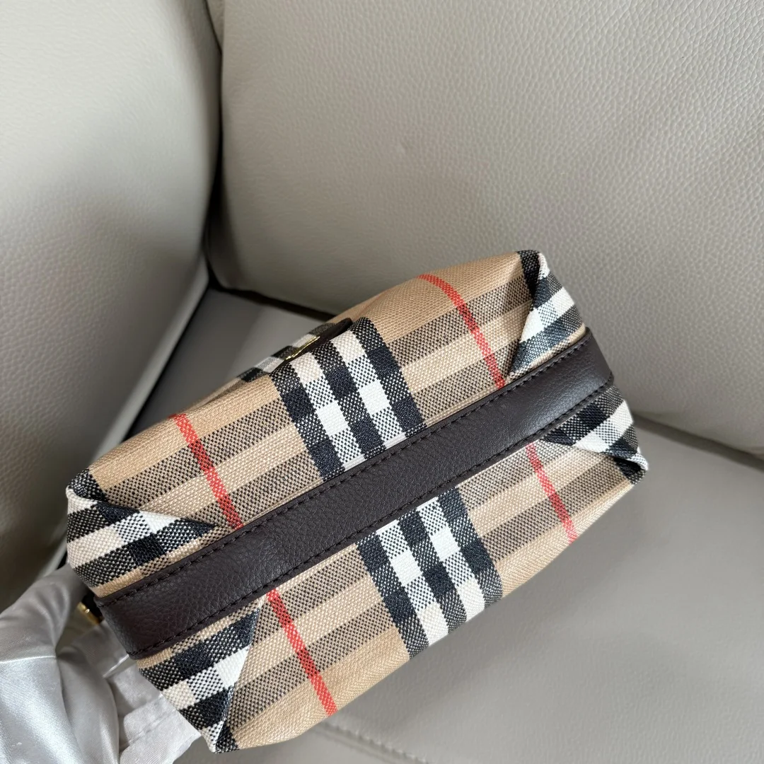汲取户外设计理念打造 于意大利工坊匠制而成 选用棉质亚麻混纺面料 融入光滑小牛皮装饰 点缀提花精纺的 Burberry 格纹 设有风衣灵感涂层