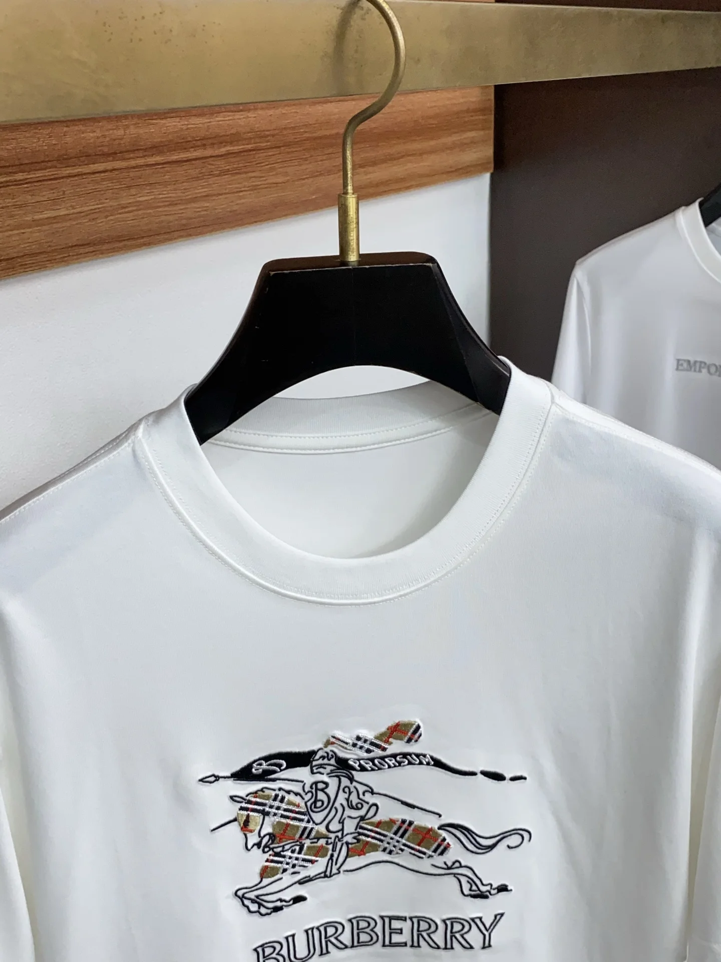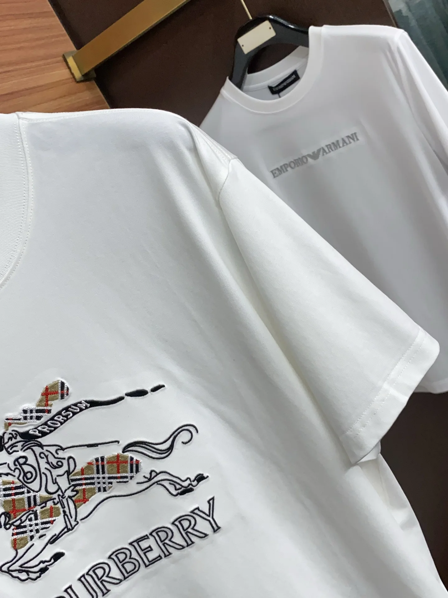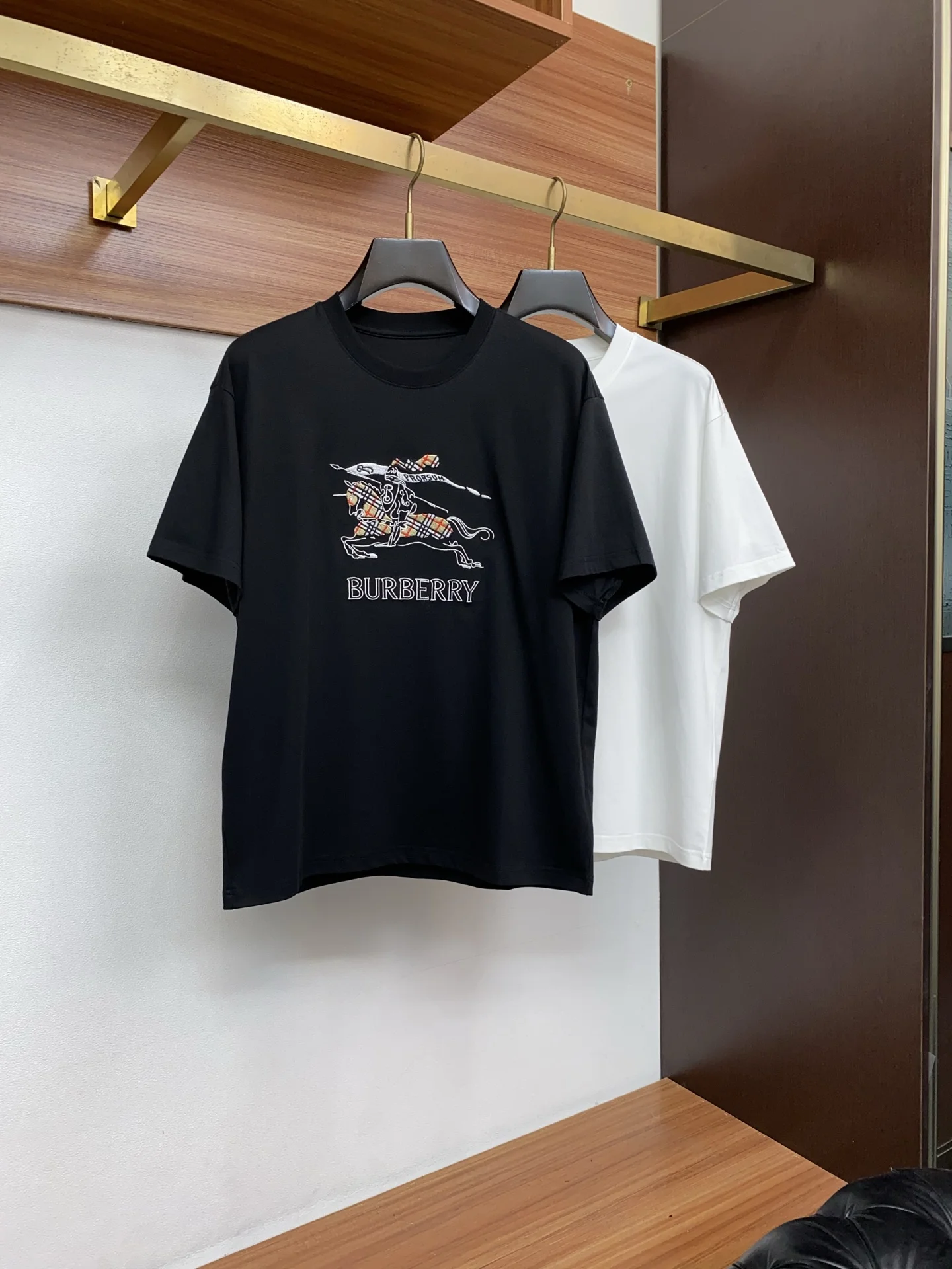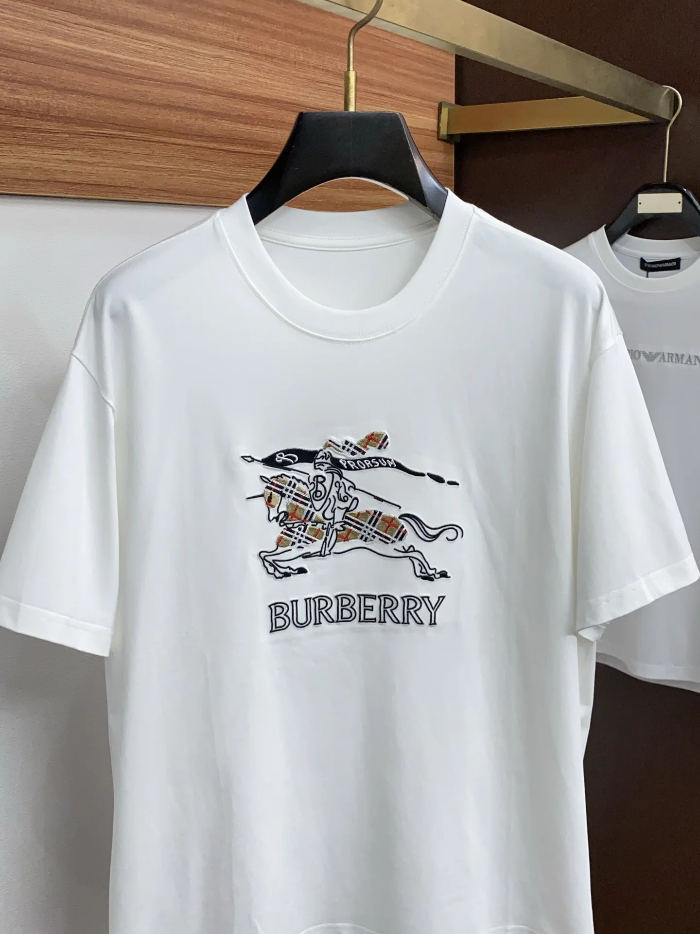 巴宝莉新工艺logo纯棉质微阔版圆领男士短袖T恤