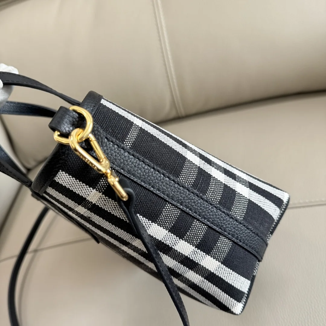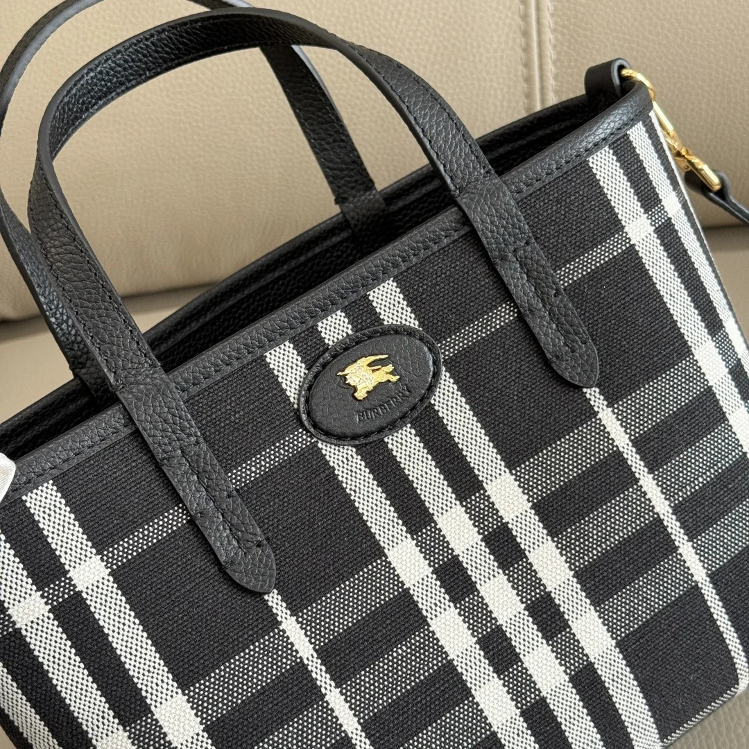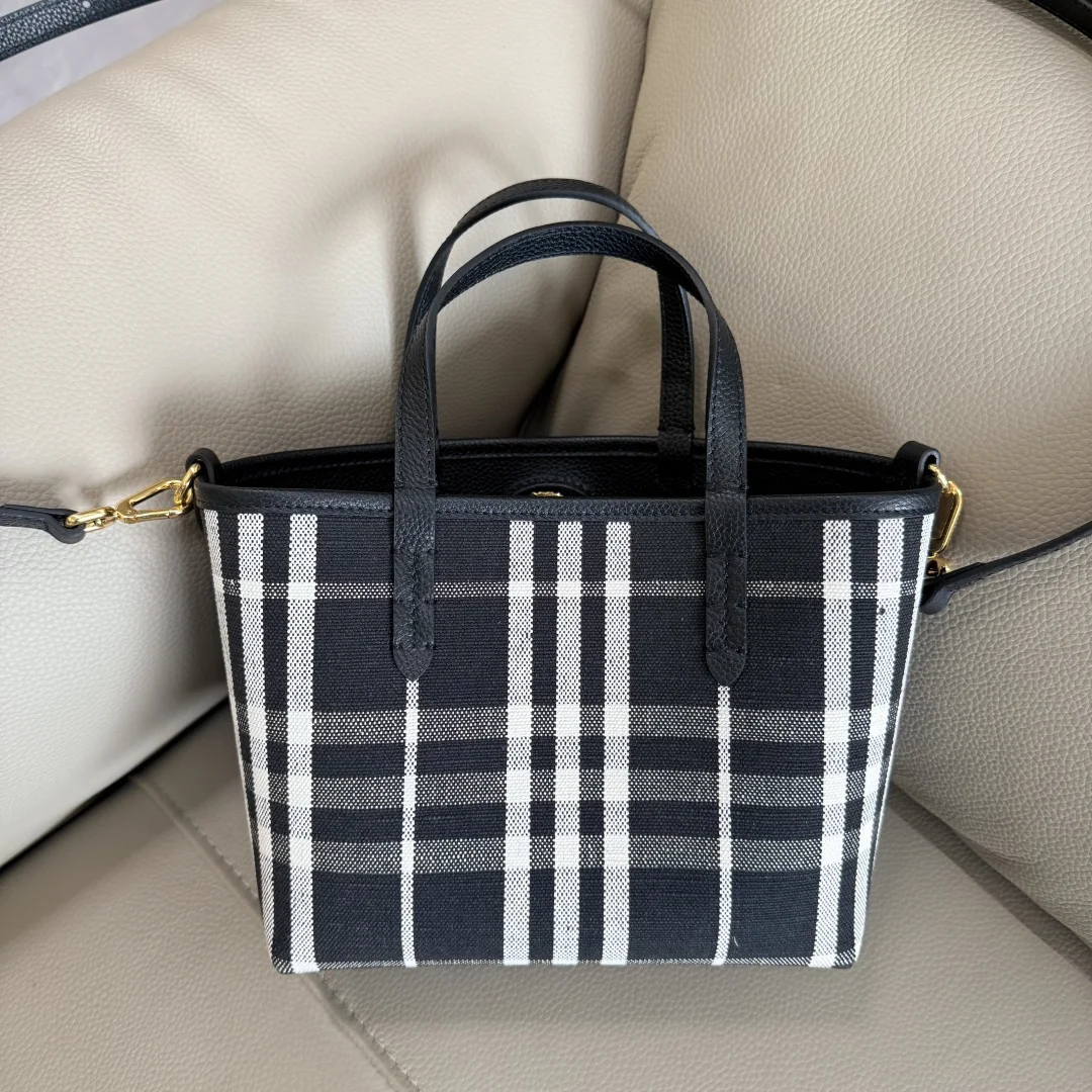 特级 新款双面迷你托特包选用粒纹小牛皮材质打造 于意大利工坊精制而成 反面为 Burberry 格纹棉质亚麻混纺面料 以标志性沙米色演绎 出自品牌Bloomsbury 系列 点缀皮革拼金属骑士印章 源自 1980 年代品牌包款的典藏图案 可使用顶部提柄手提 或以可拆式肩背带缔造斜背造型 正面饰有马术骑士徽标 EKD 皮革饰牌尺寸22× 10x20cm. 型号6291
