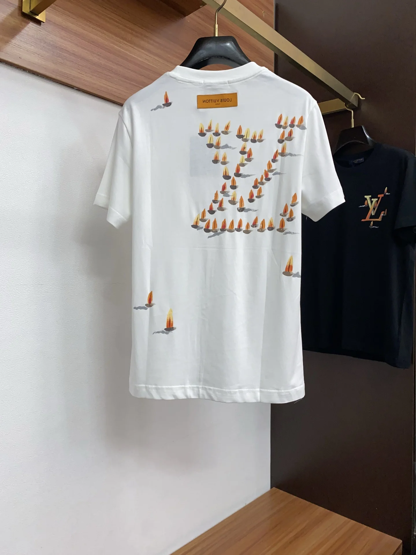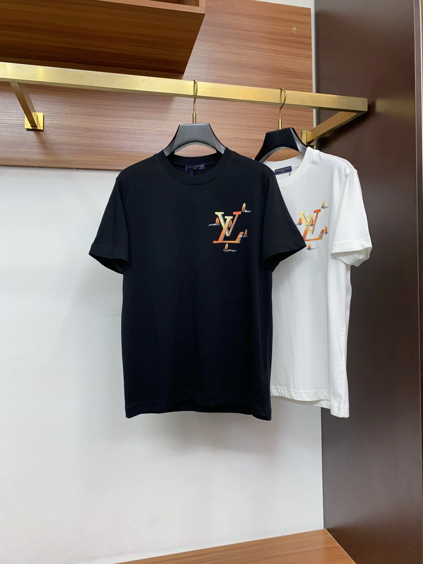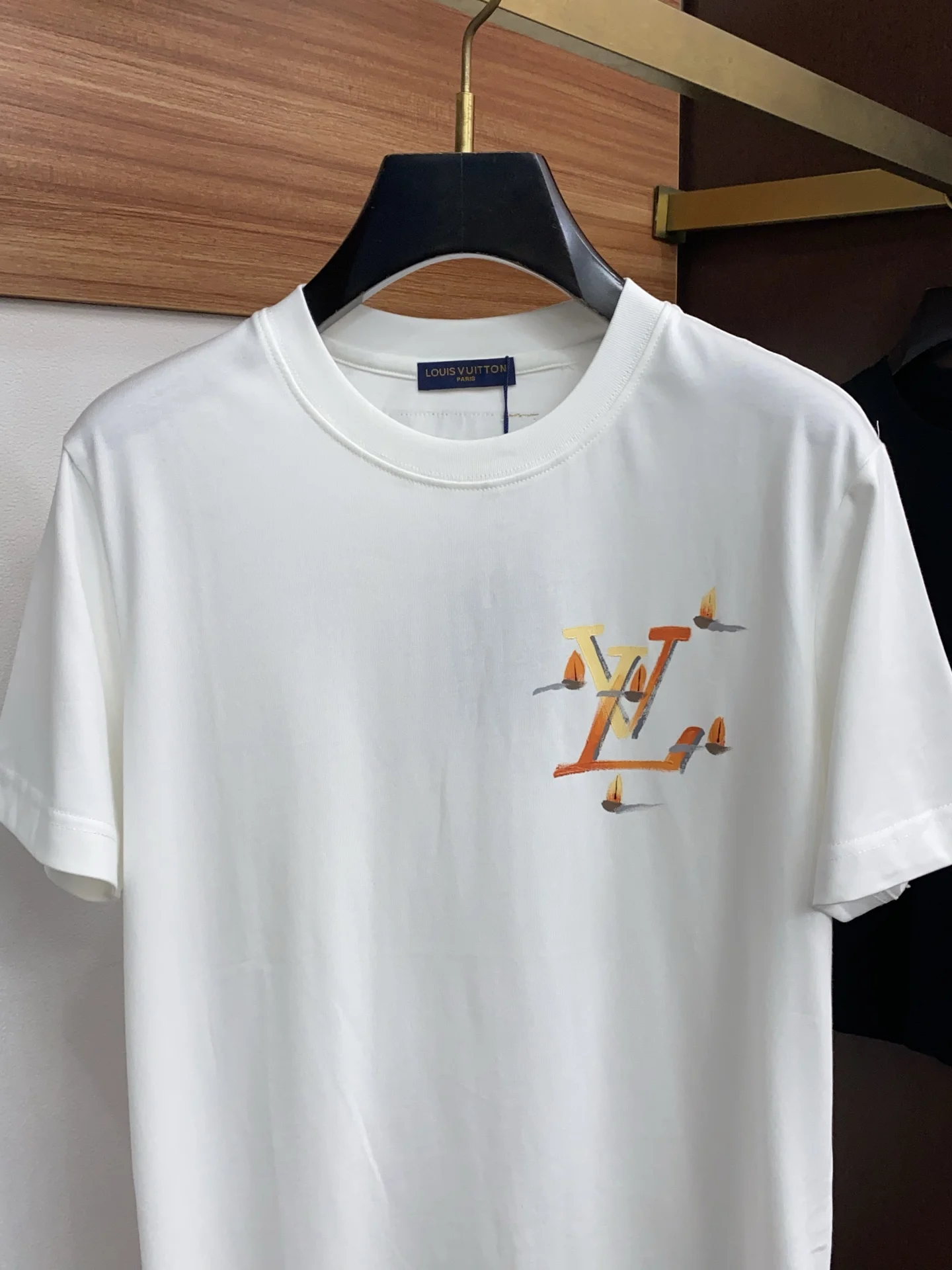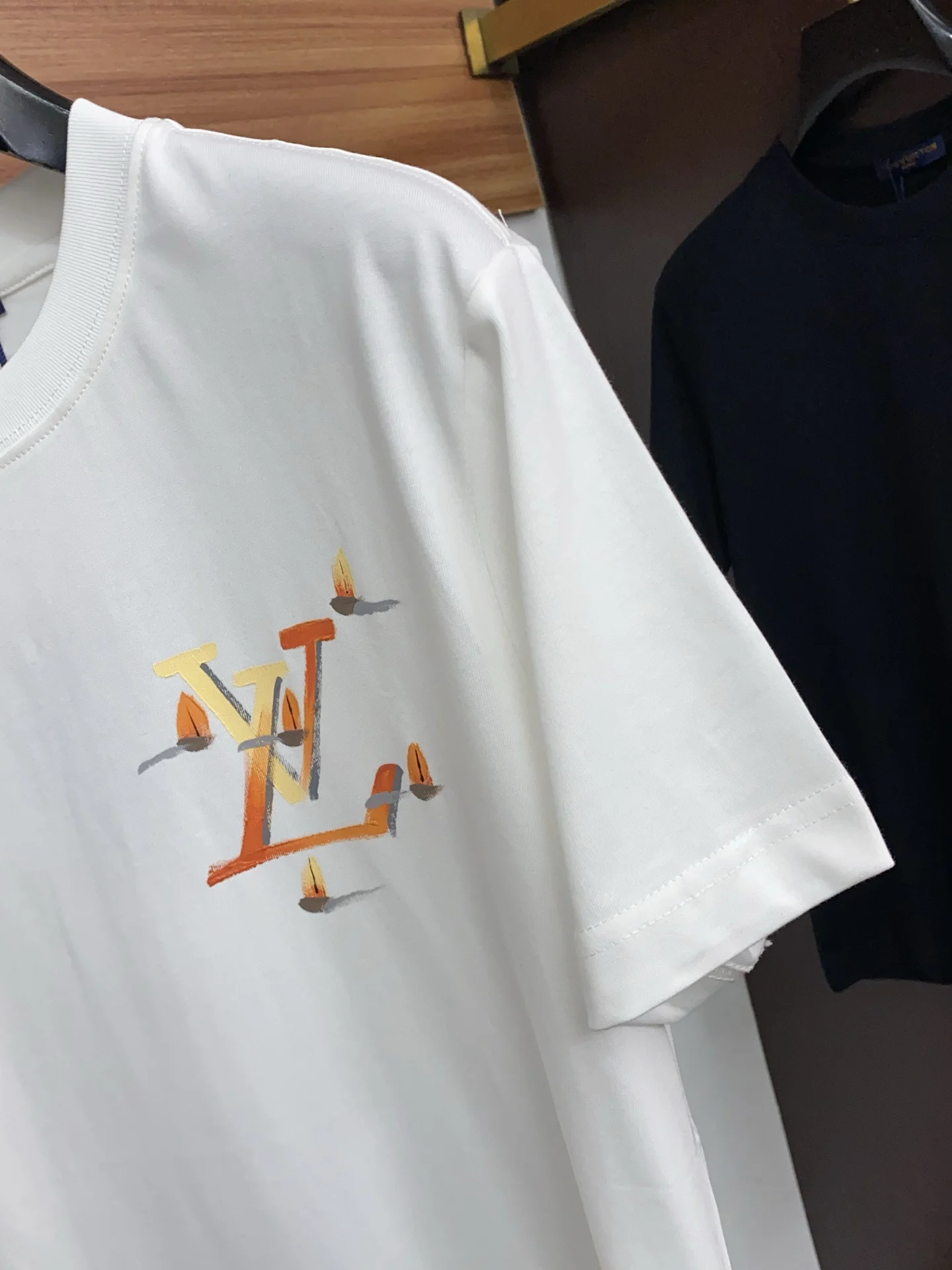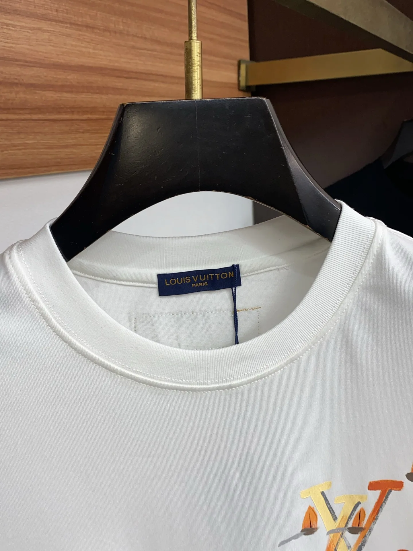 LV 新工艺手绘logo纯棉质微阔版圆领男士短袖T恤