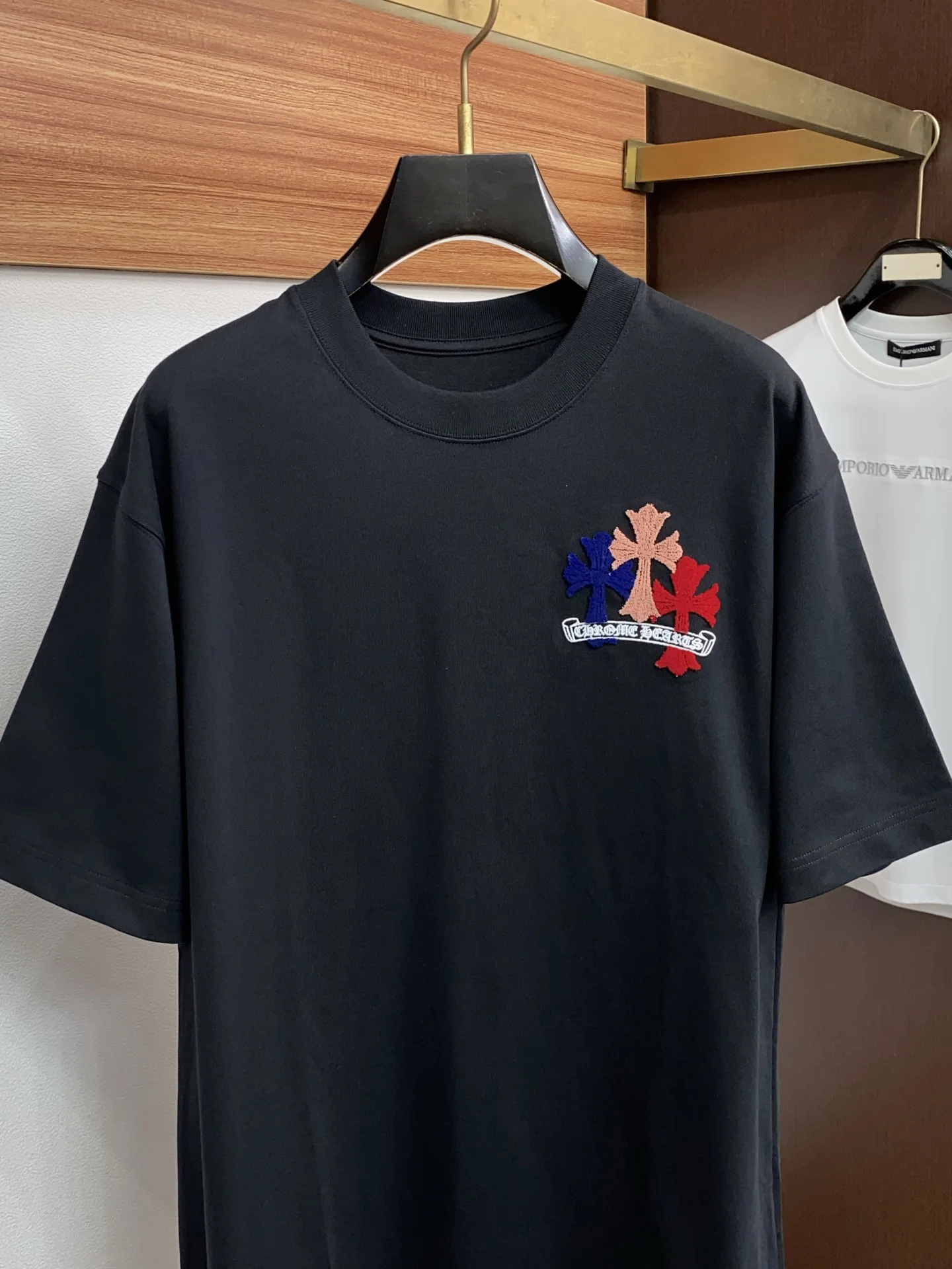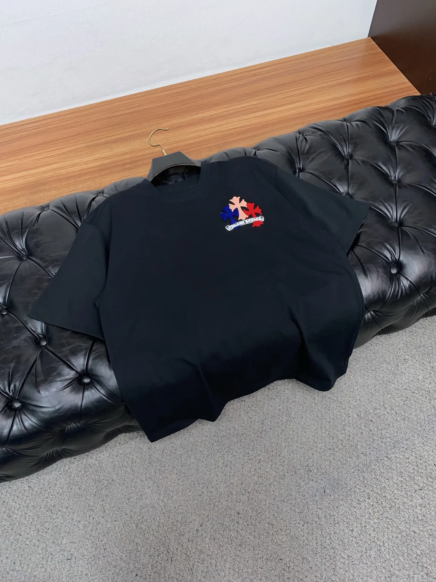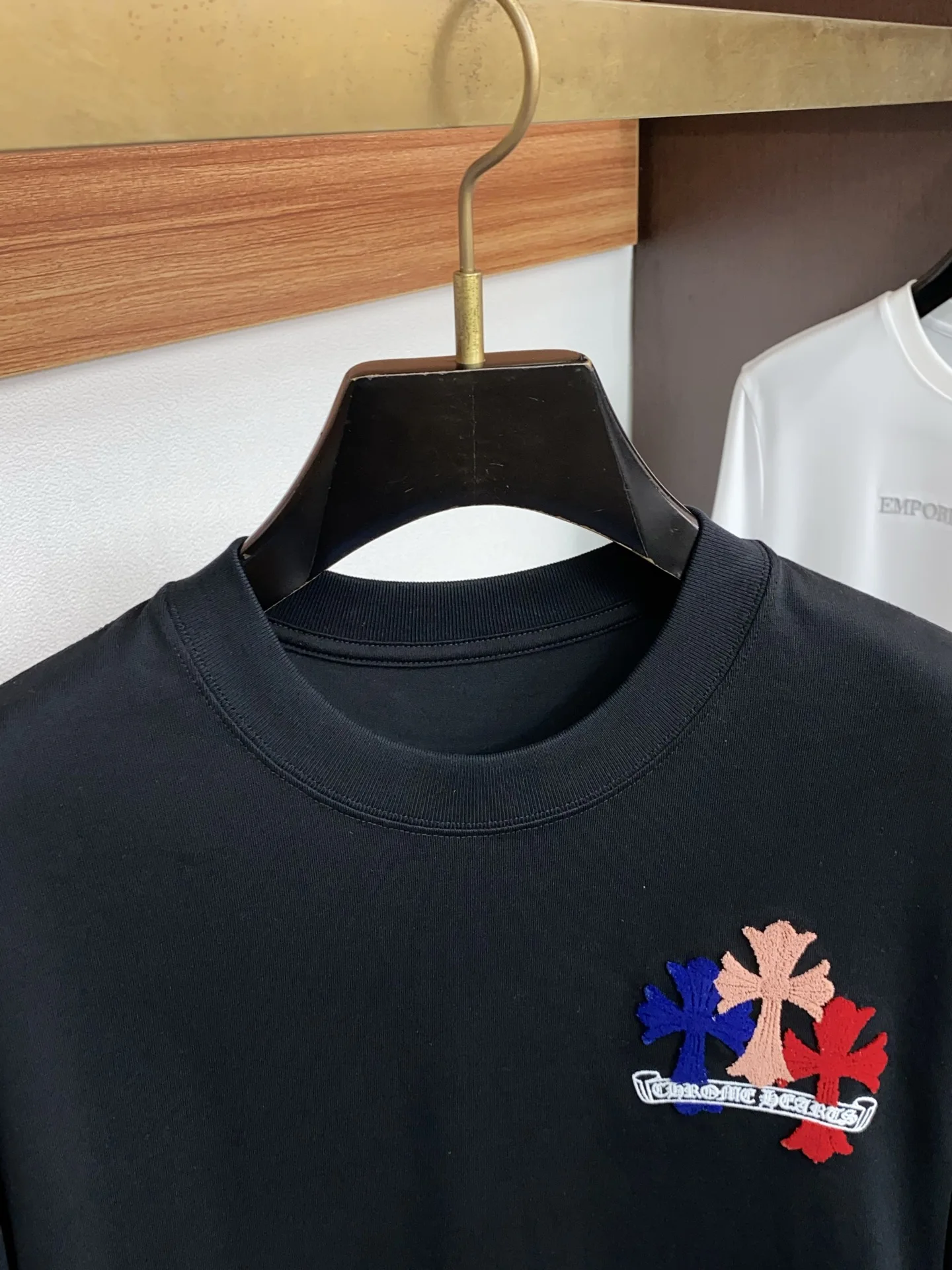 克罗心 新工艺手绘logo纯棉质微阔版圆领男士短袖T恤