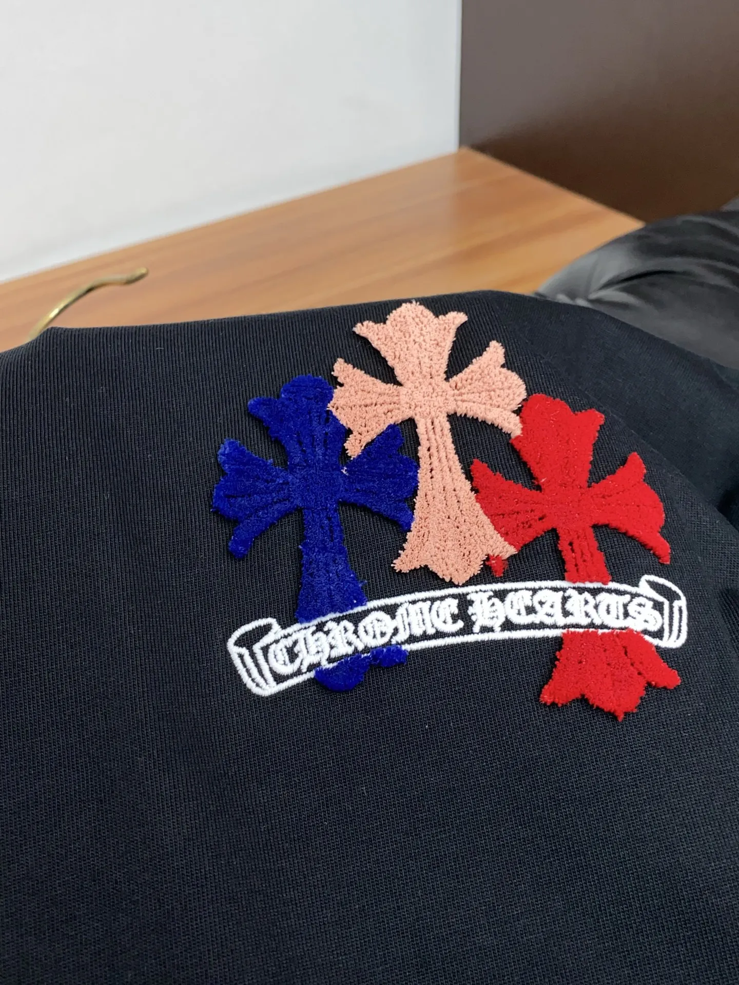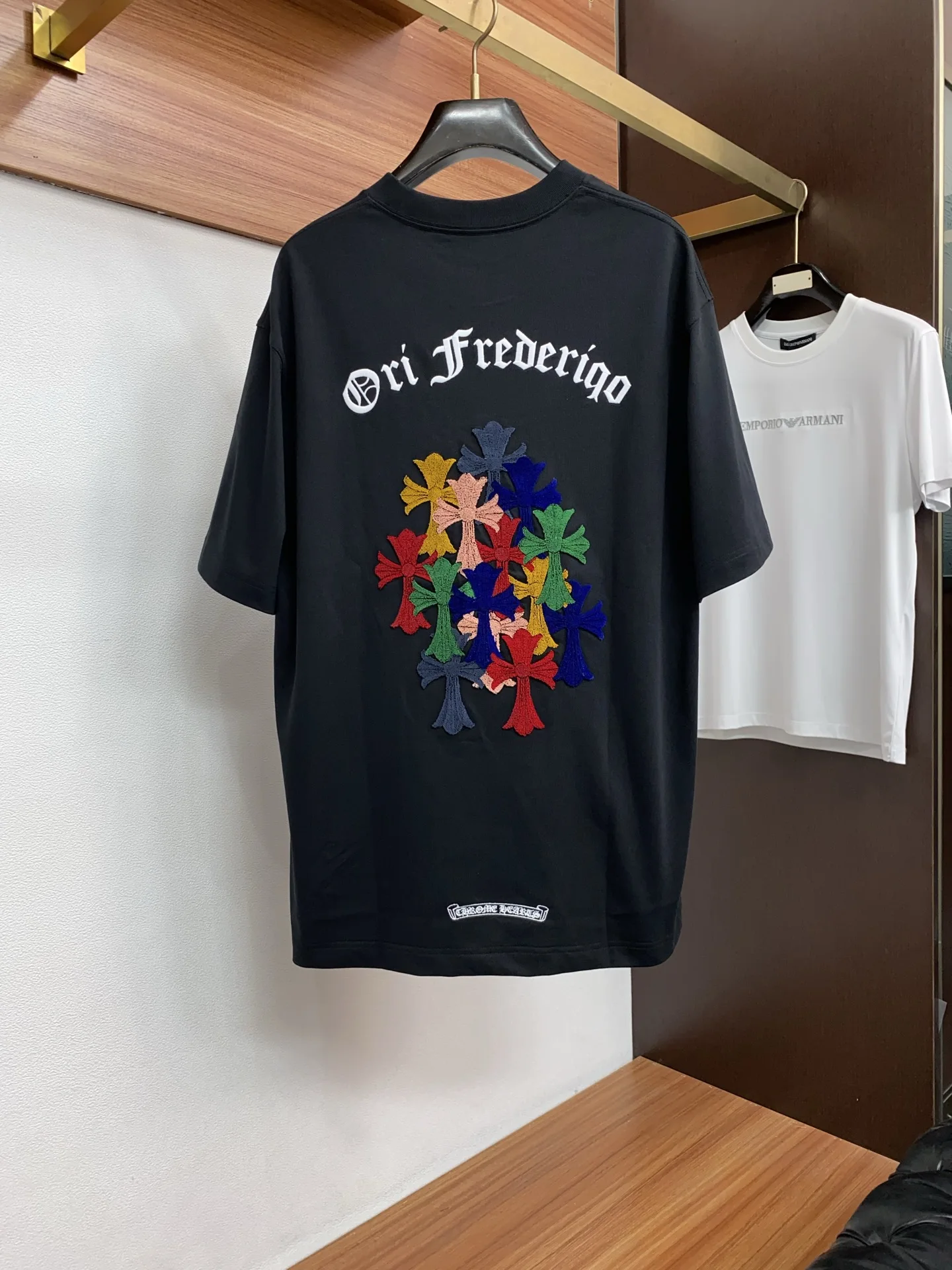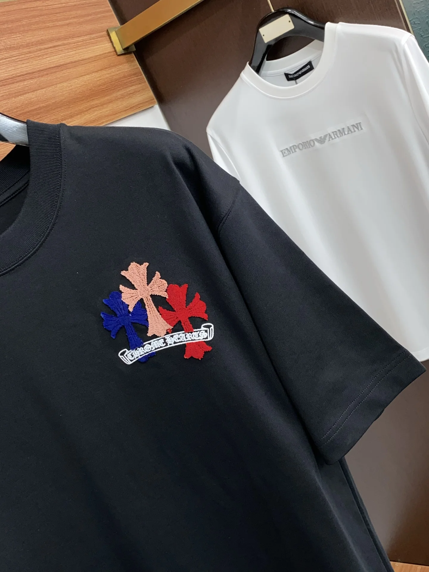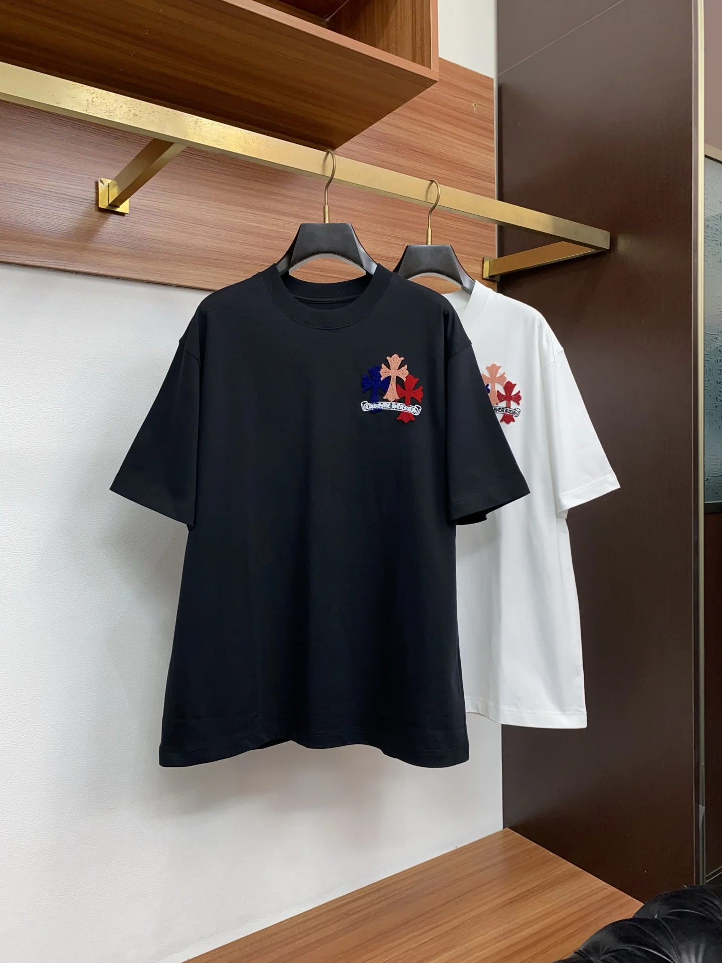 克罗心 新工艺手绘logo纯棉质微阔版圆领男士短袖T恤