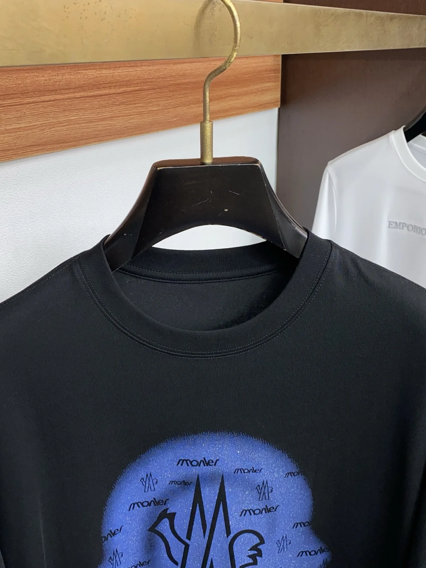 蒙口 ss新工艺logo纯棉质微阔版圆领男士短袖T恤 新季新推系列将标识巧妙融入设计 塑就一系列充满复古风情的运动风单品 在这款百搭T恤上 带着一丝怀旧意蕴的图案低调呈现于衣身 袖口滚边相得益彰 优选特定原版开发双股精棉平纹面料 上身挺阔舒适度佳 外穿内搭随意搭配 M-3xL