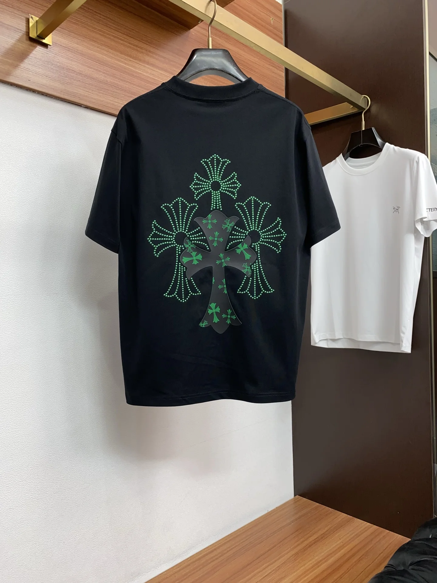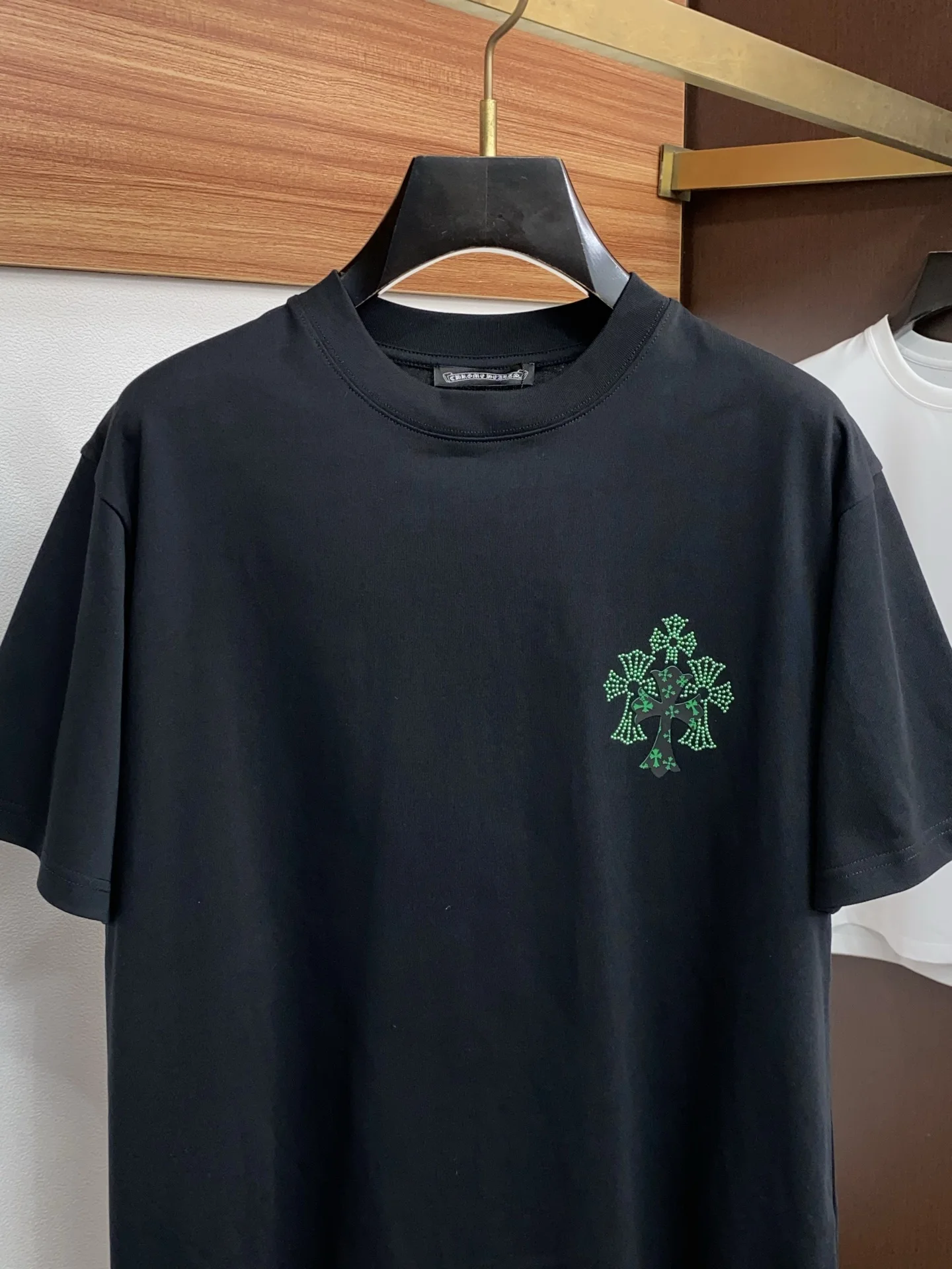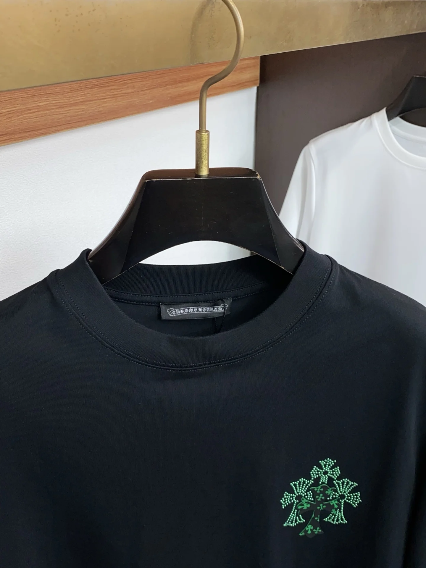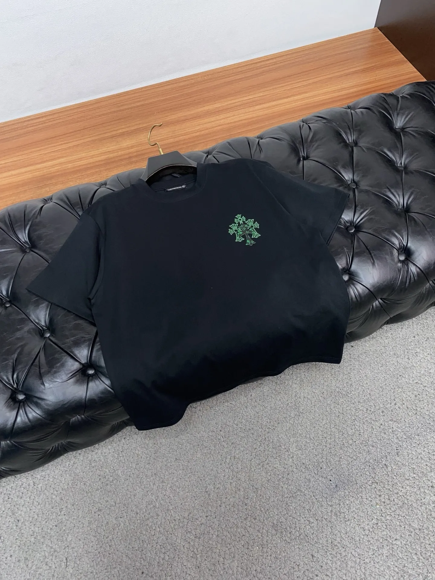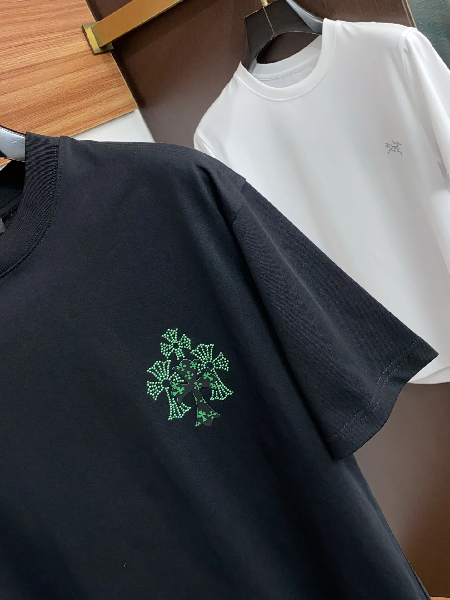 克罗心新工艺logo纯棉质微阔版圆领男士短袖T恤