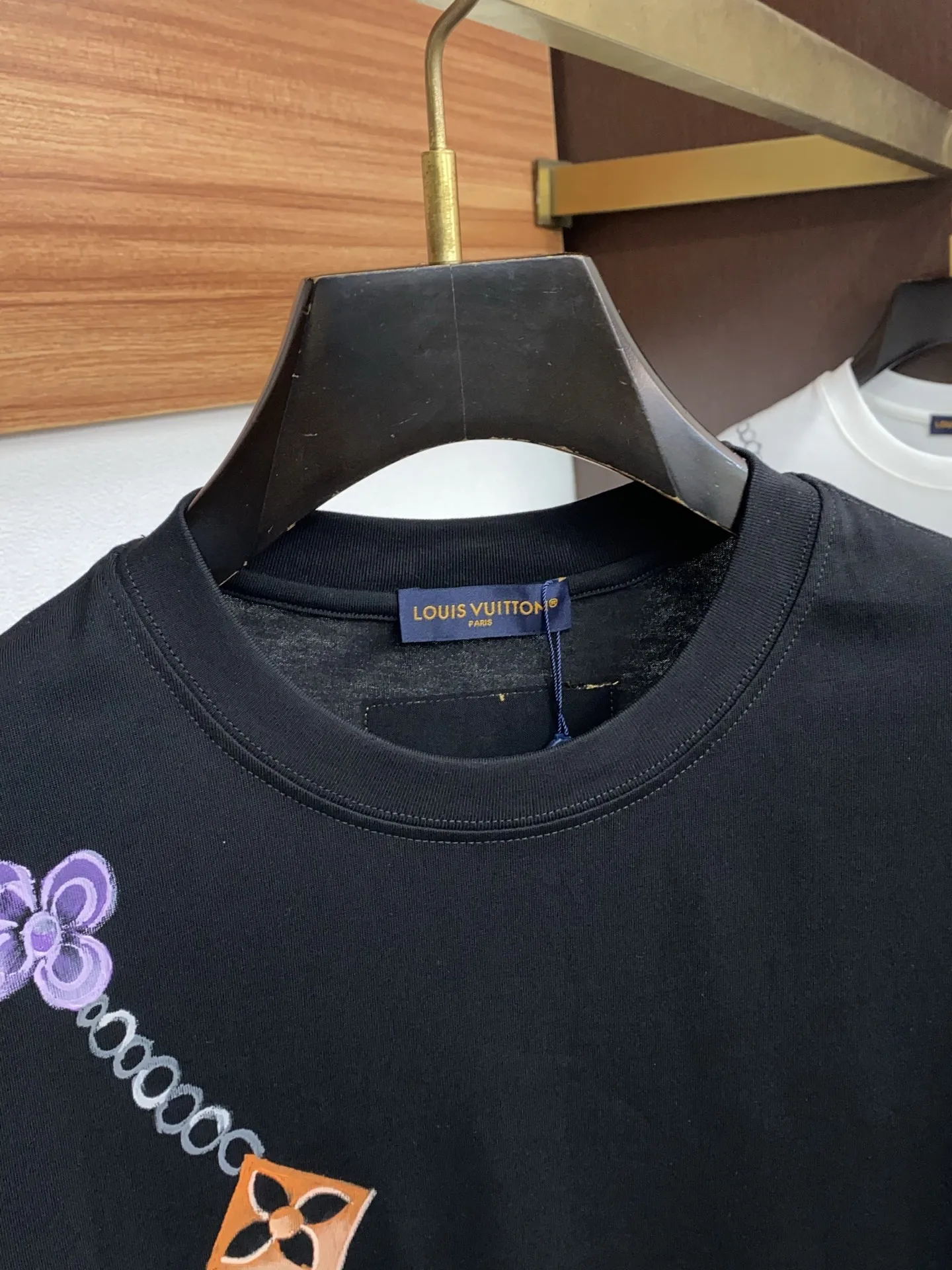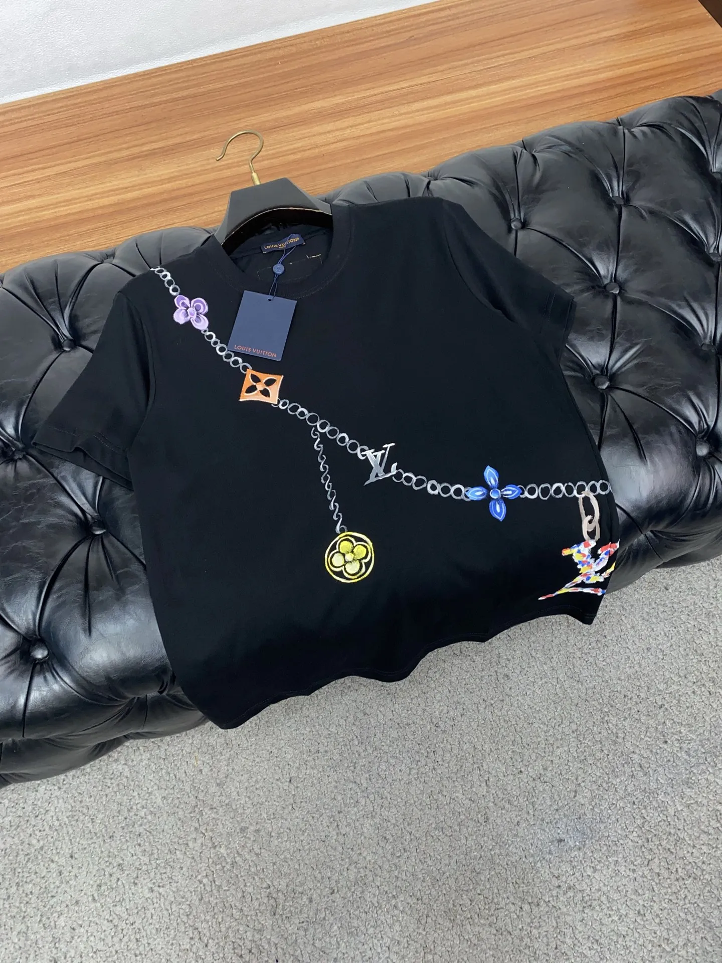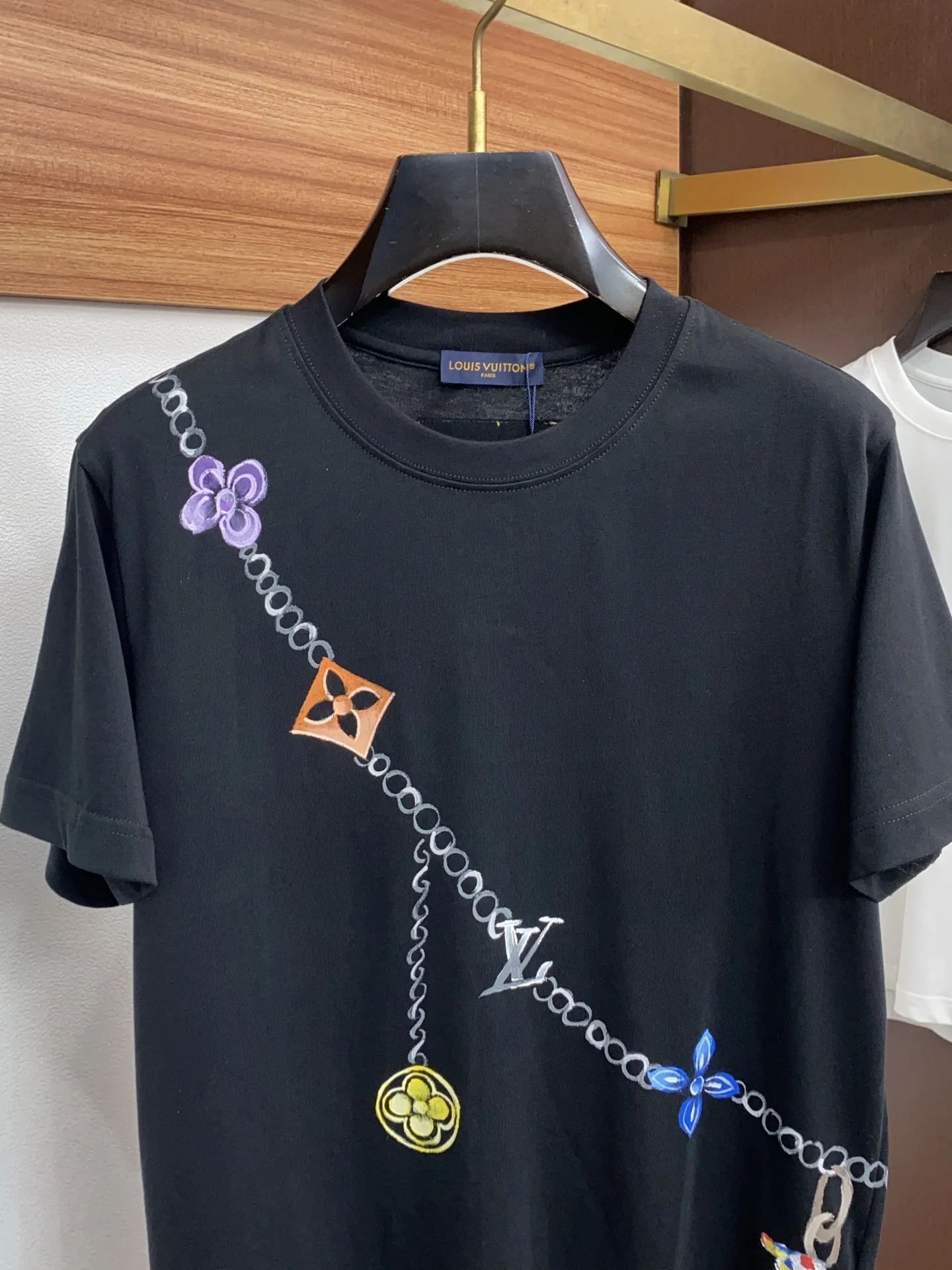 1v路易威登 ss新工艺手绘logo纯棉质微阔版圆领男士短袖T恤 新季新推系列将标识巧妙融入设计 塑就一系列充满复古风情的运动风单品 在这款百搭T恤上 带着一丝怀旧意蕴的图案低调呈现于衣身 袖口滚边相得益彰 优选特定原版开发双股精棉平纹面料 上身挺阔舒适度佳 外穿内搭随意搭配 M-3xL