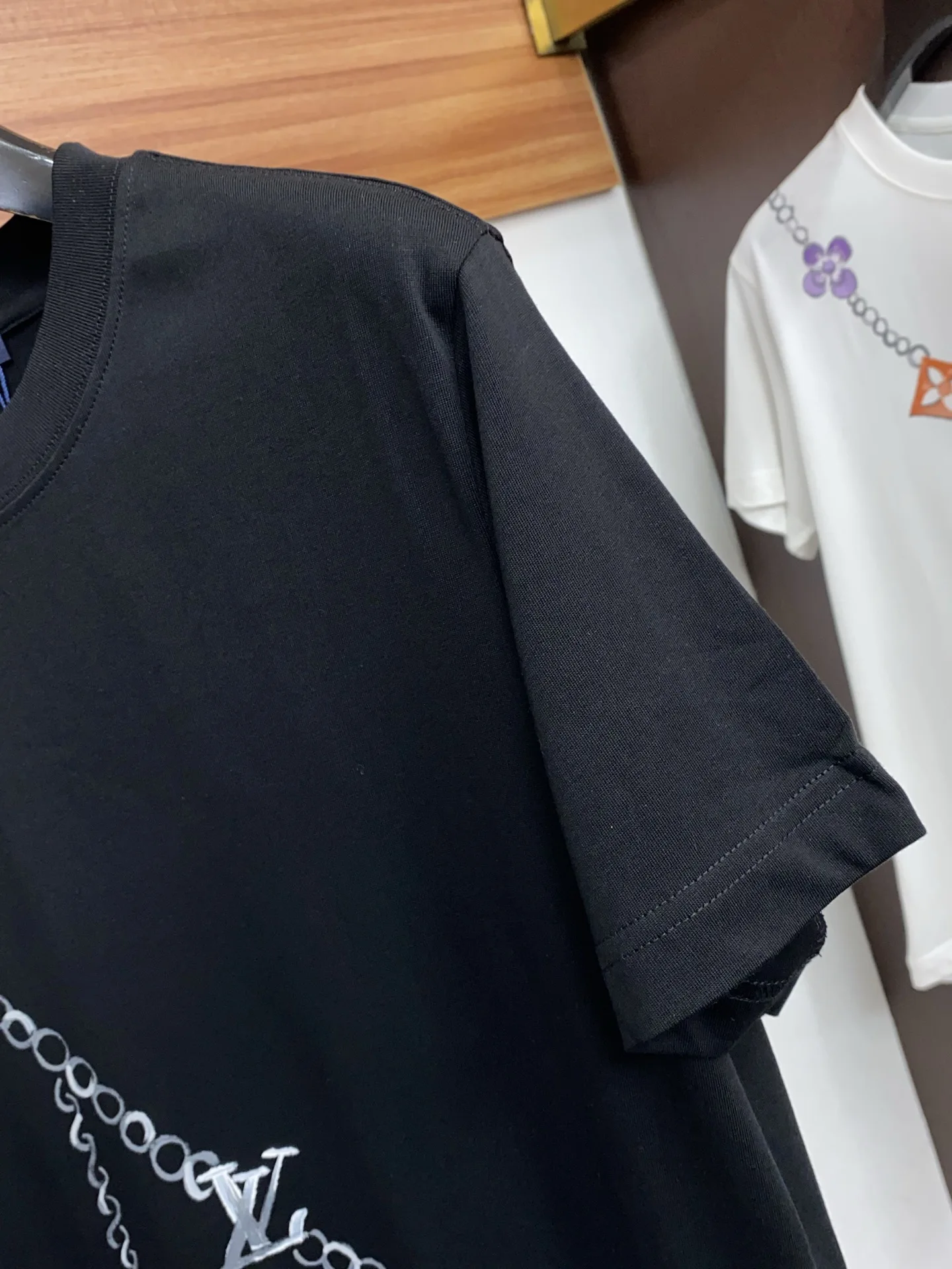 LV新工艺logo纯棉质微阔版圆领男士短袖T恤