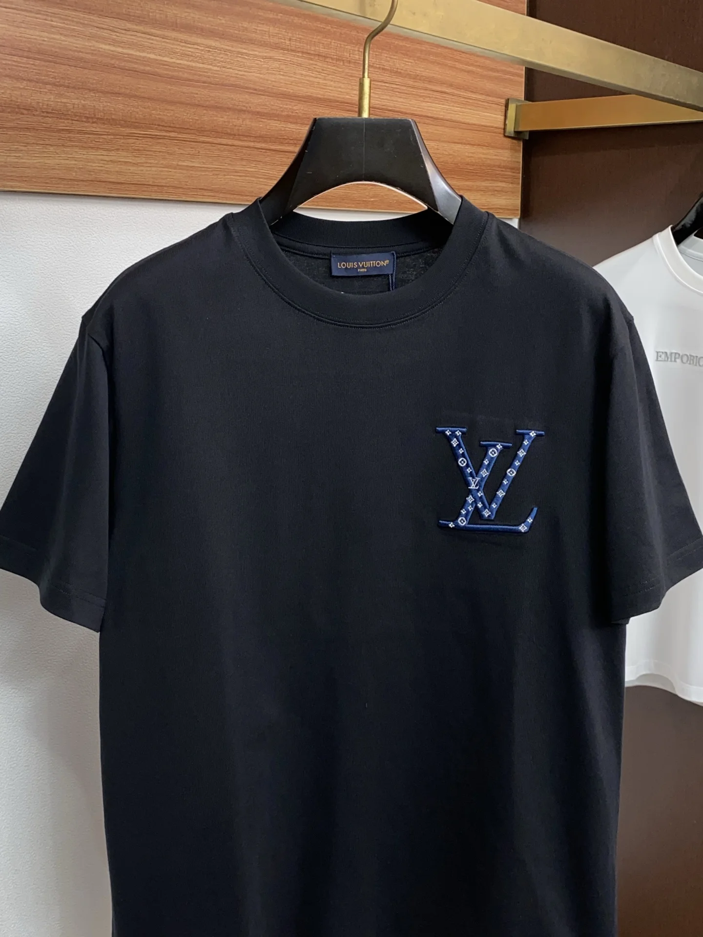 1v路易威登 ss新工艺logo纯棉质微阔版圆领男士短袖T恤 新季新推系列将标识巧妙融入设计 塑就一系列充满复古风情的运动风单品 在这款百搭T恤上 带着一丝怀旧意蕴的图案低调呈现于衣身 袖口滚边相得益彰 优选特定原版开发双股精棉平纹面料 上身挺阔舒适度佳 外穿内搭随意搭配 M-3xL