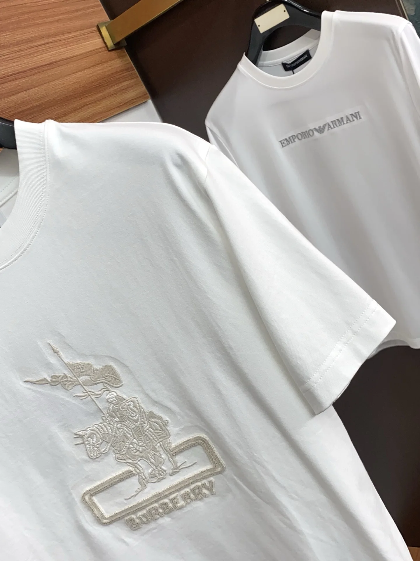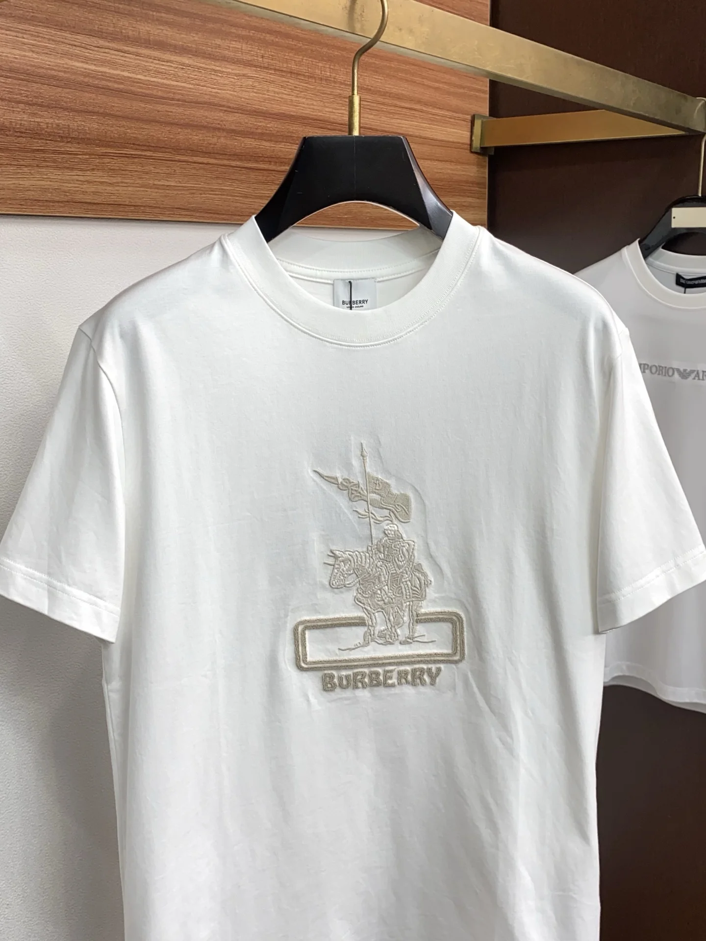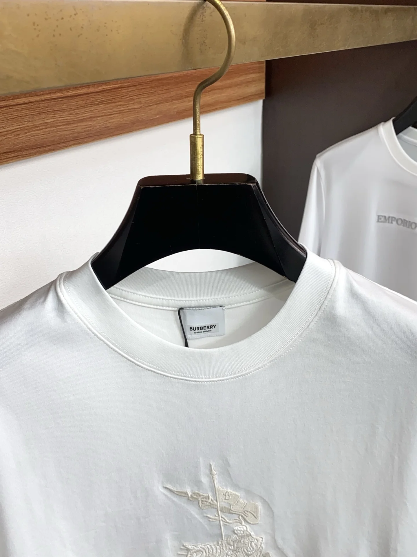 巴宝莉新工艺logo纯棉质微阔版圆领男士短袖T恤