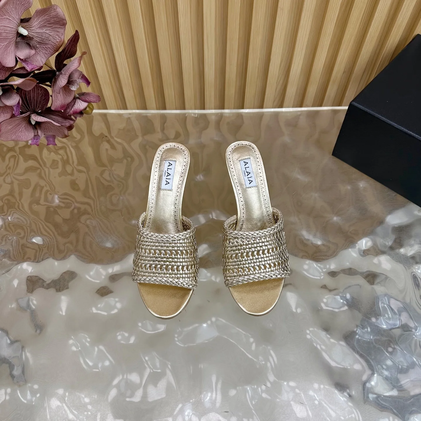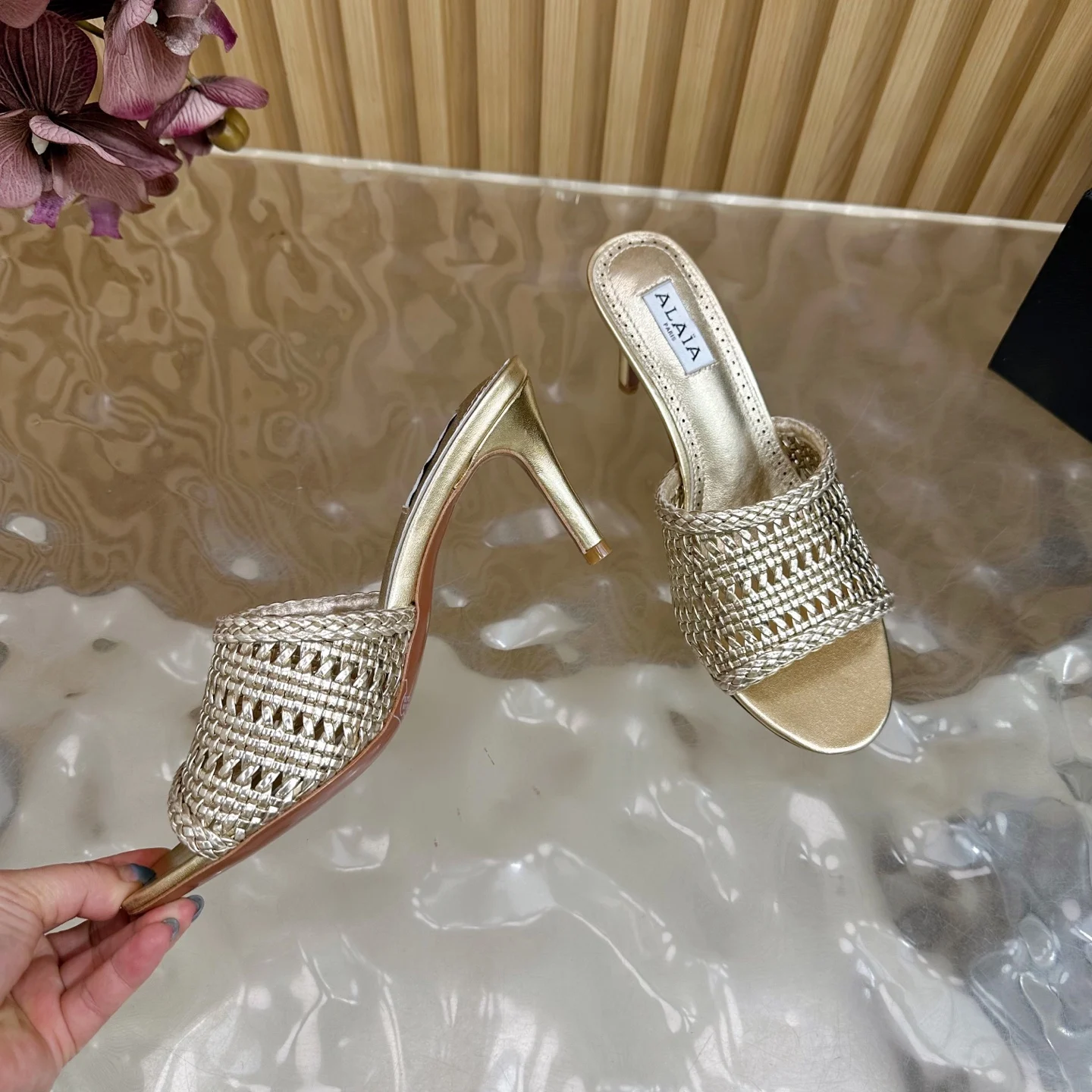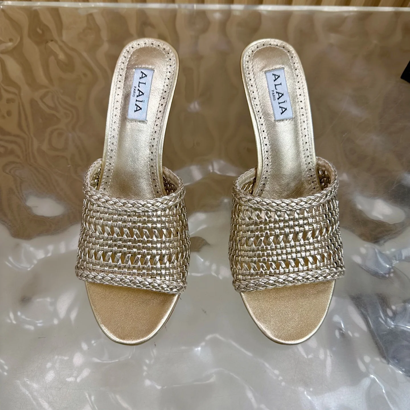 2025专柜新款走秀款 ALAIA 法国高端一线高定品牌 新款造型s型坡跟凉鞋/半拖超仙女鞋面 编织