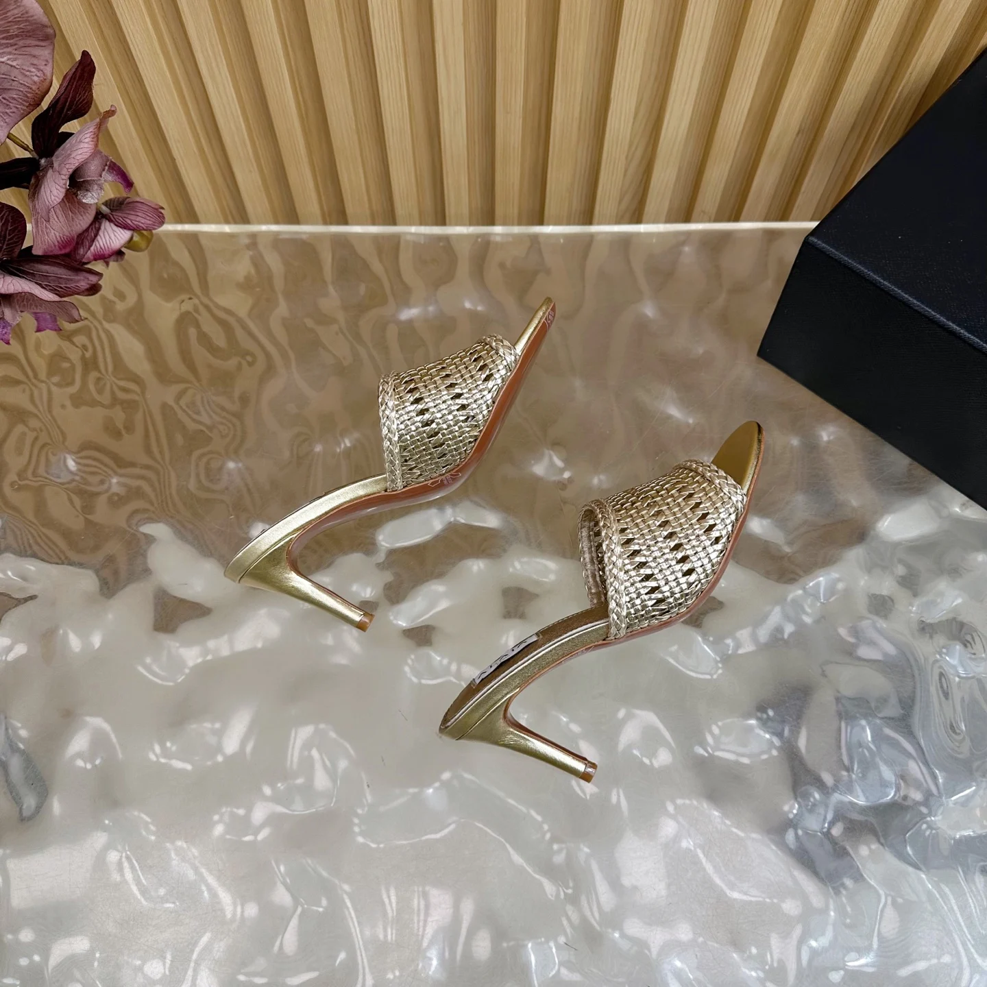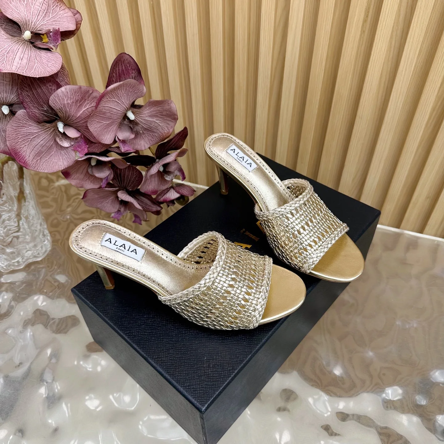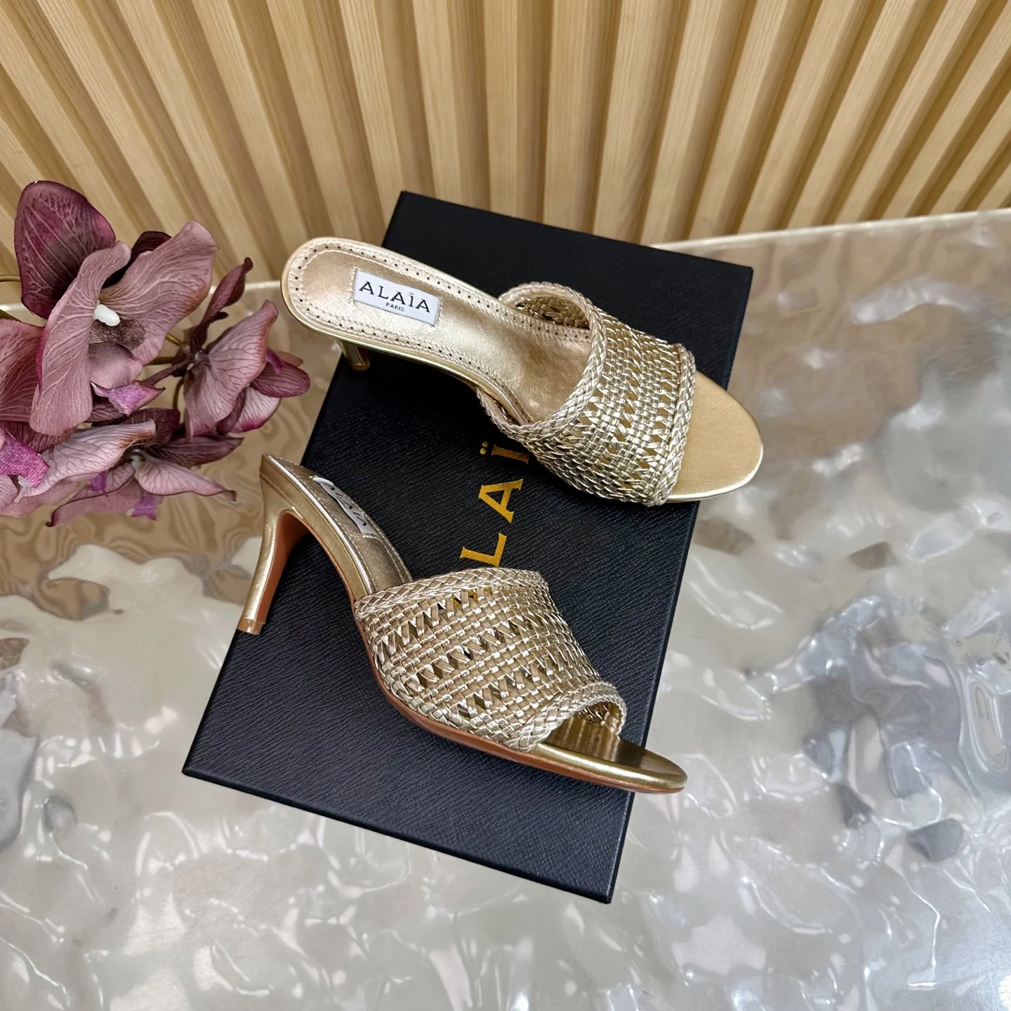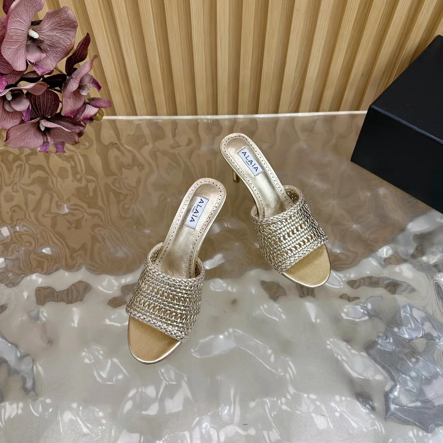 2025专柜新款走秀款 ALAIA 法国高端一线高定品牌 新款造型s型坡跟凉鞋/半拖超仙女鞋面 编织
