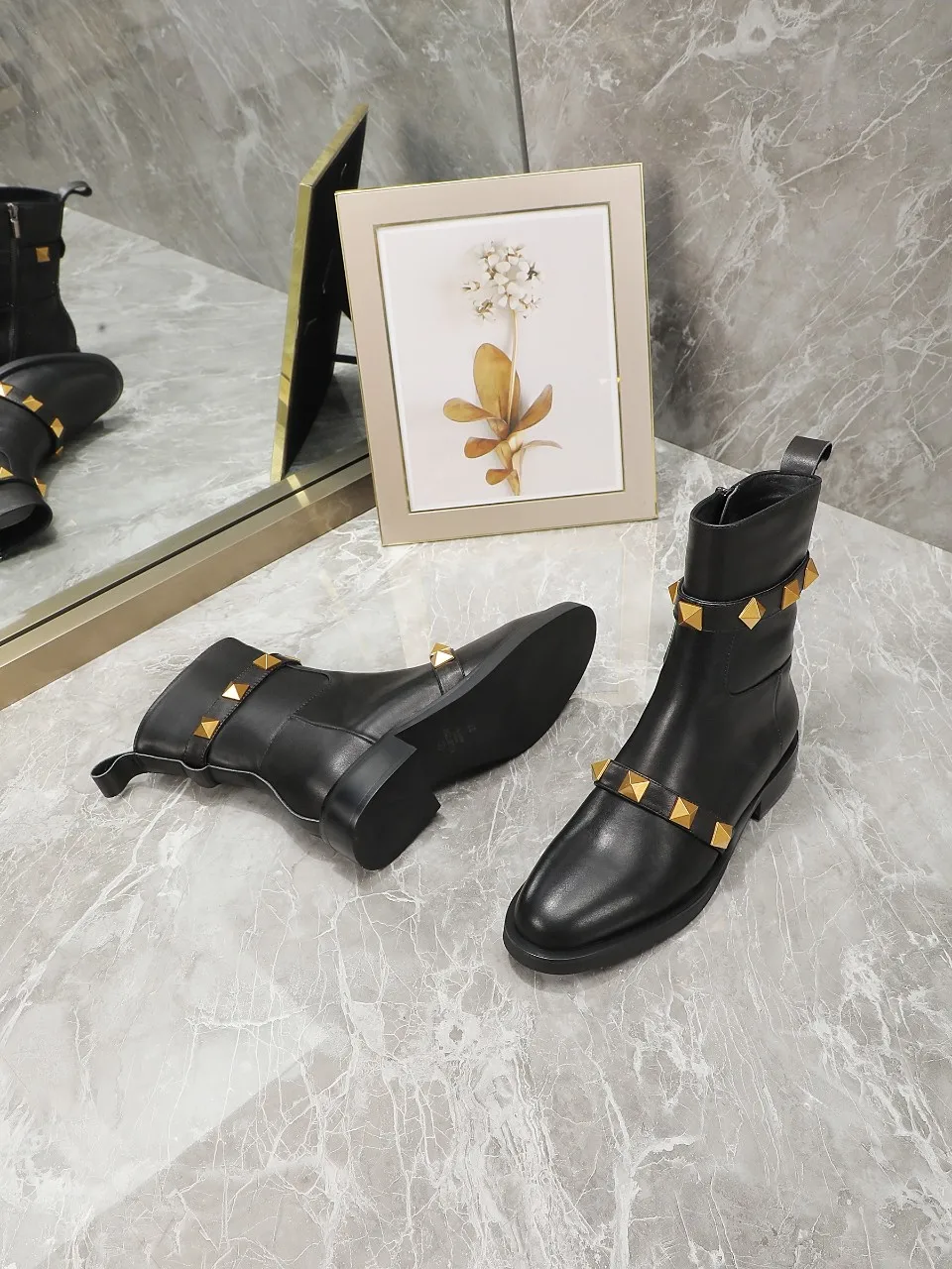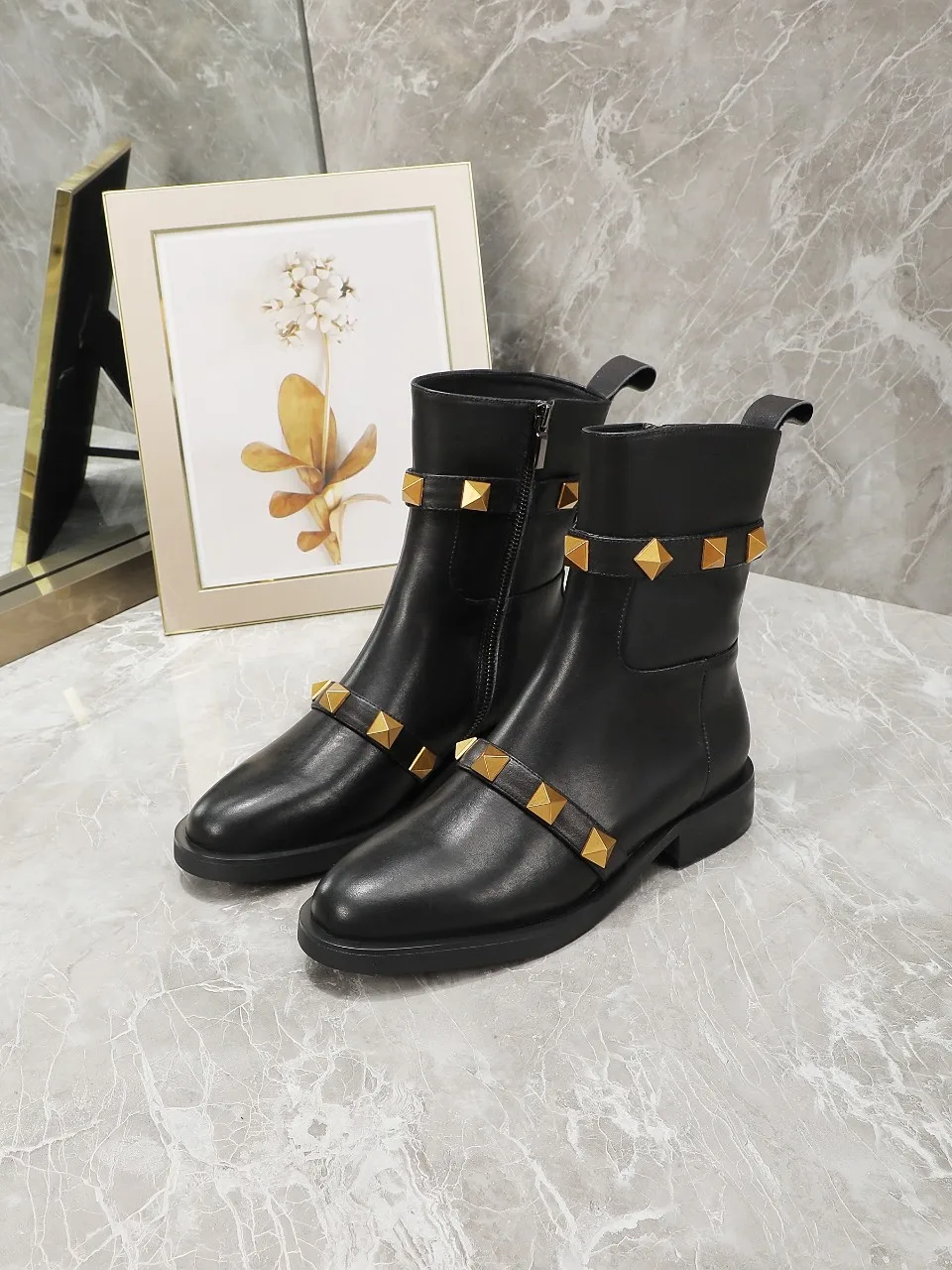 Ⅴ家 华伦天奴新款短靴 时尚街拍 古金钉钉不掉色 拉链单靴 跟高2厘米 全牛皮面料 内里羊皮 36-40码 可以订做41-42码