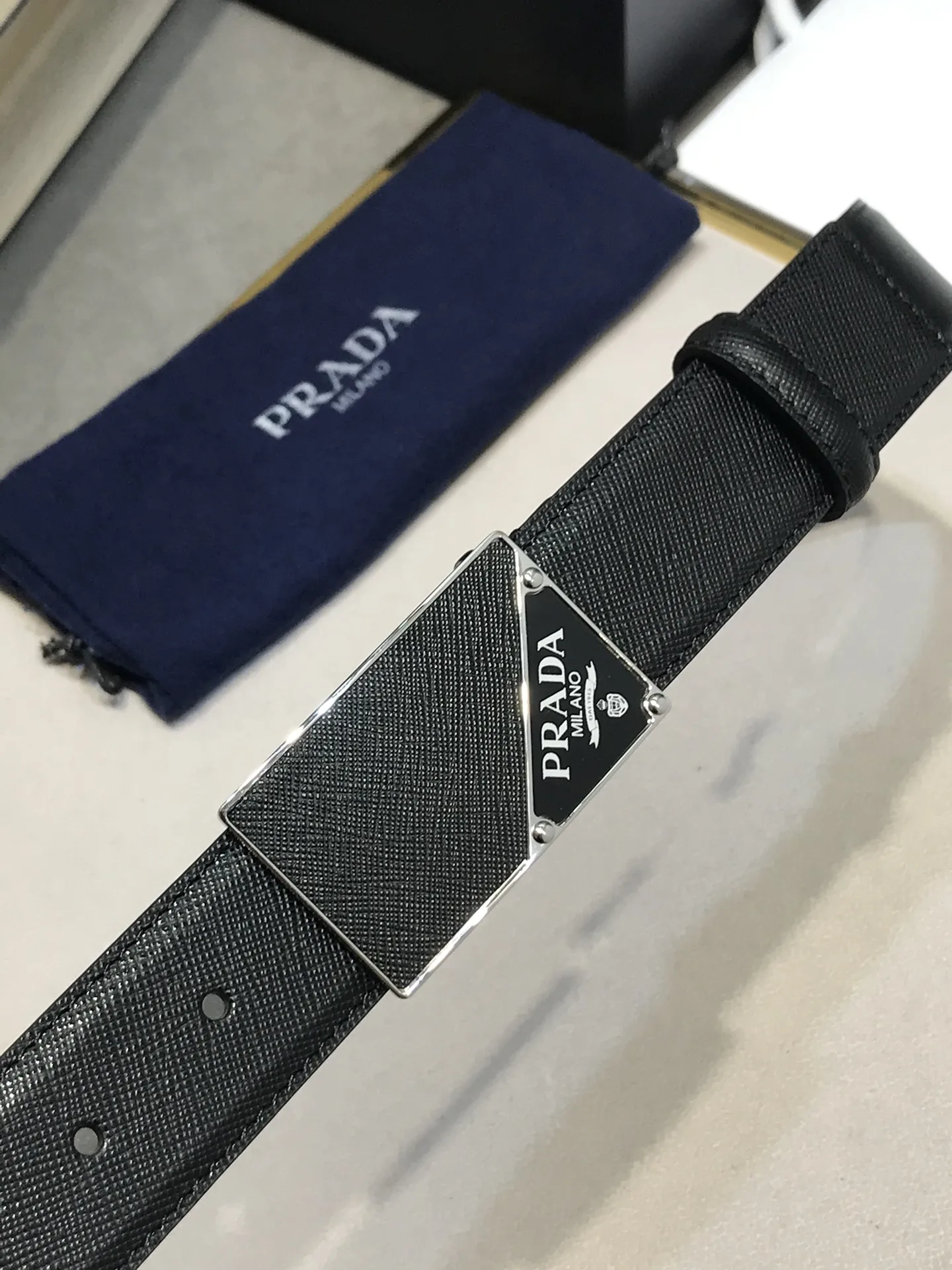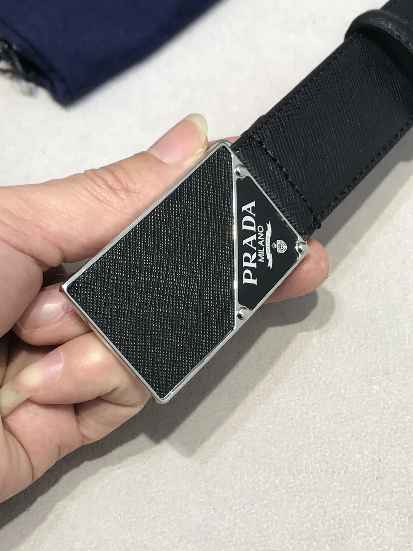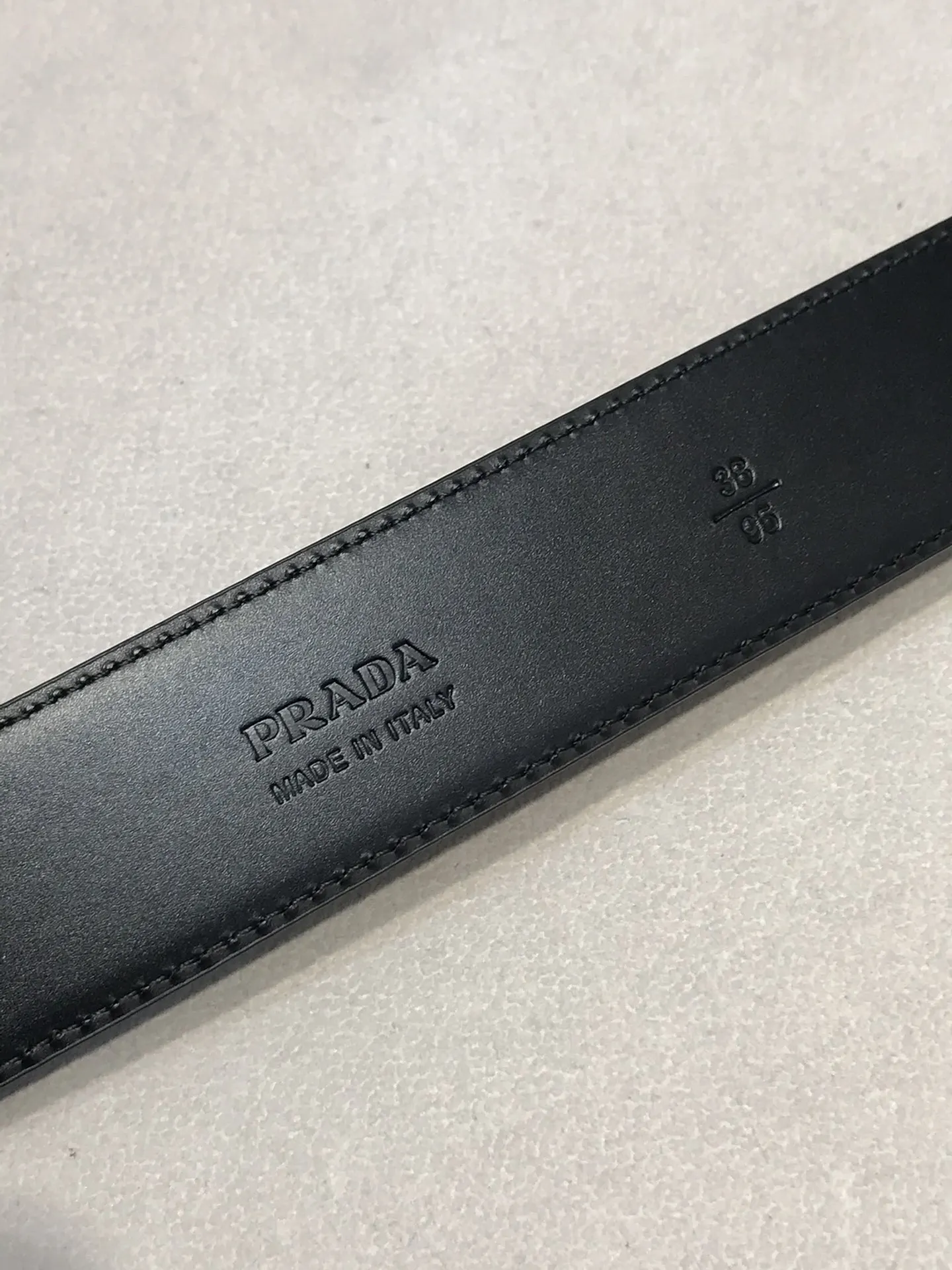 普拉达 宽35MM 原单双面进口头层牛皮带身 搭配原版经典三角标扣 手感.油边近乎完美 原产皮料牛皮定制 质感无可挑剔 出众的细节 高清实拍 货真价实 品质保证