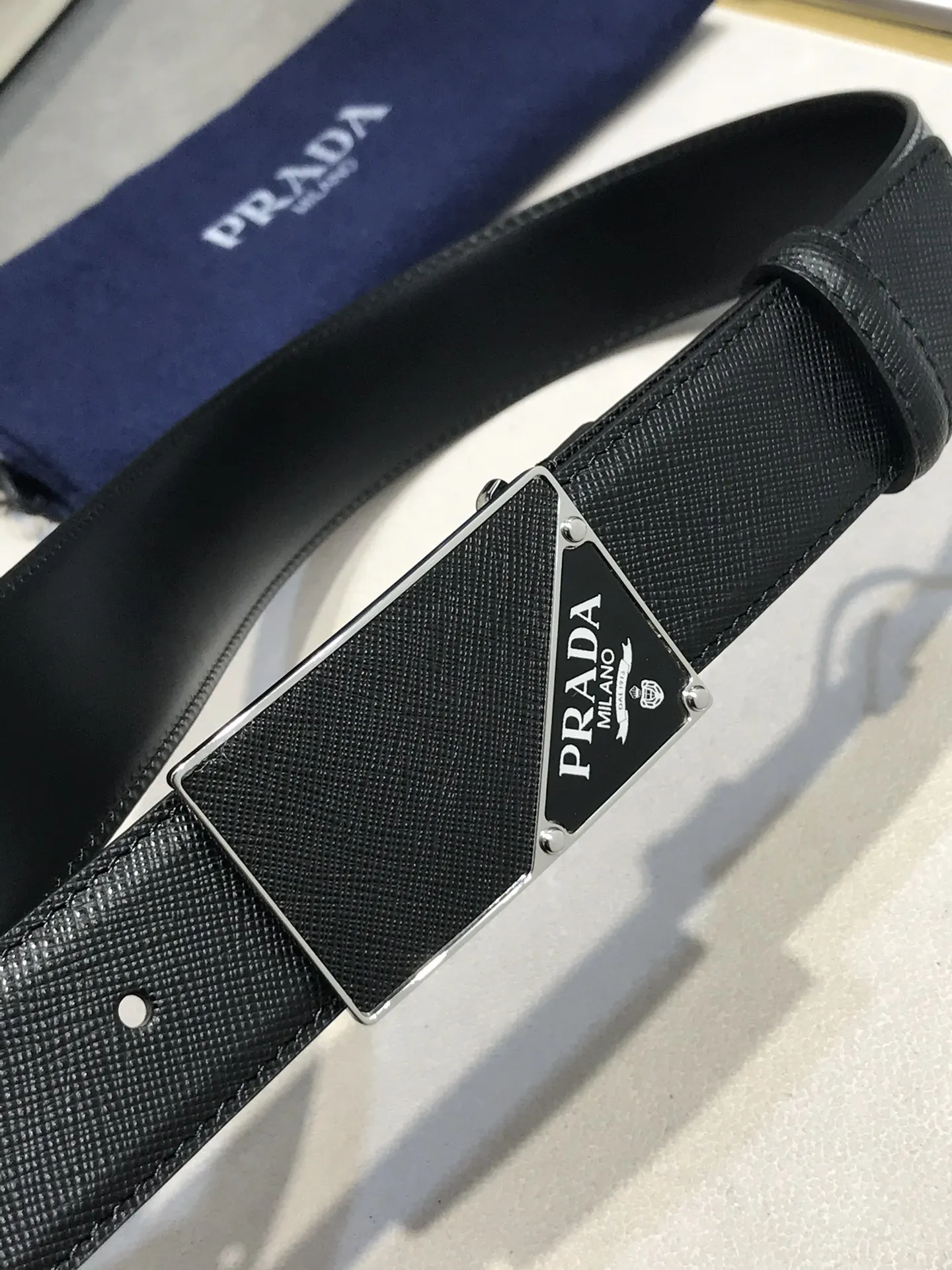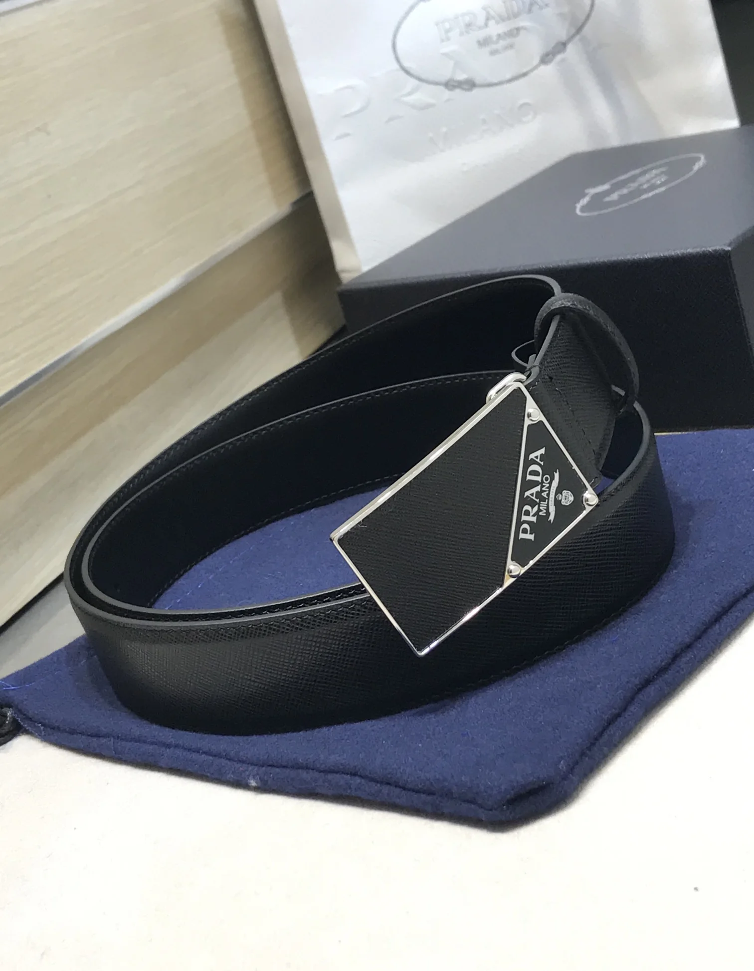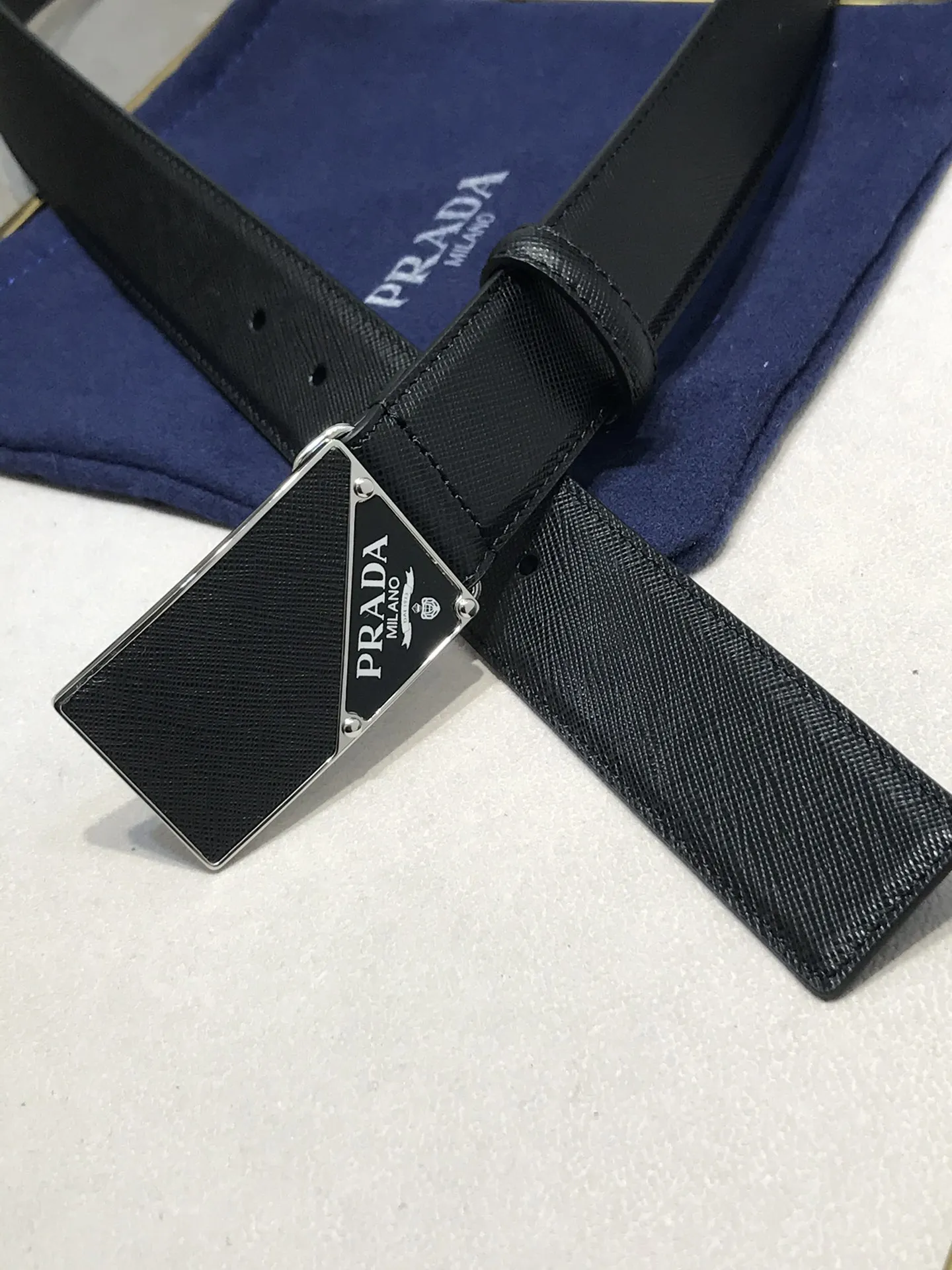 普拉达 宽35MM 原单双面进口头层牛皮带身 搭配原版经典三角标扣 手感.油边近乎完美 原产皮料牛皮定制 质感无可挑剔 出众的细节 高清实拍 货真价实 品质保证