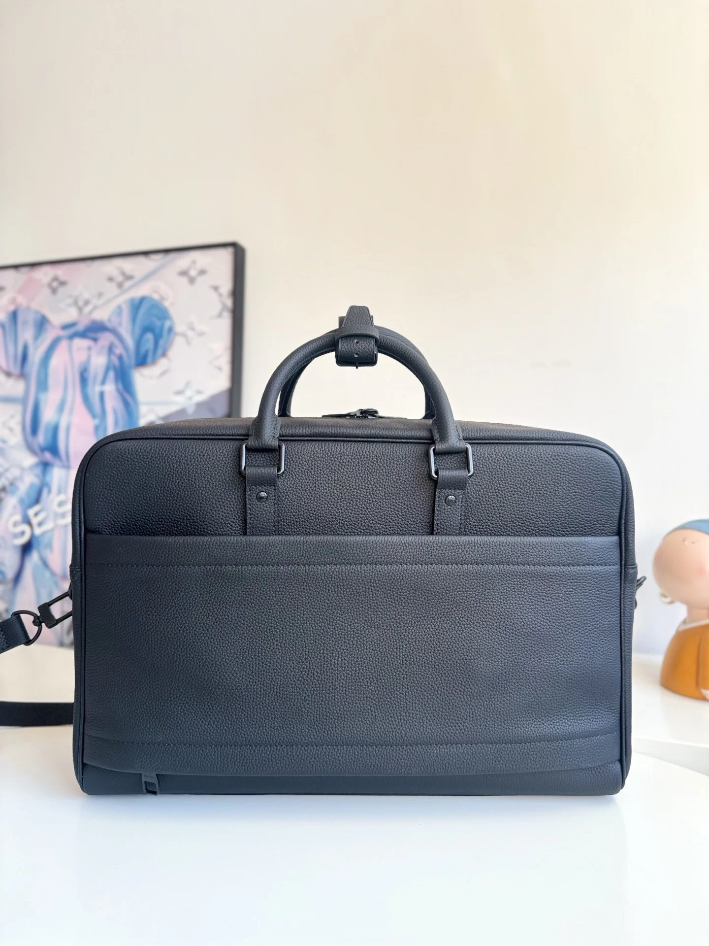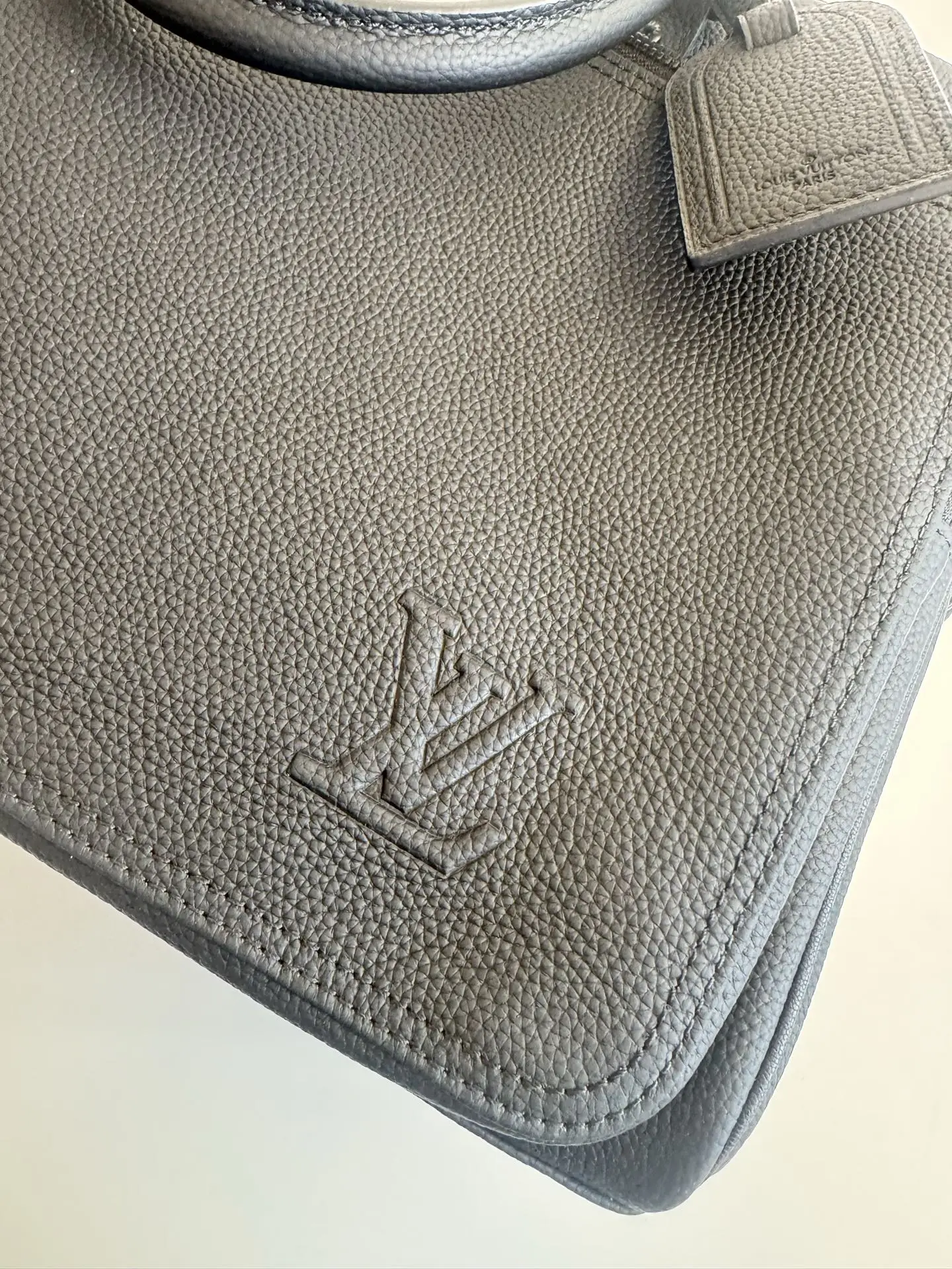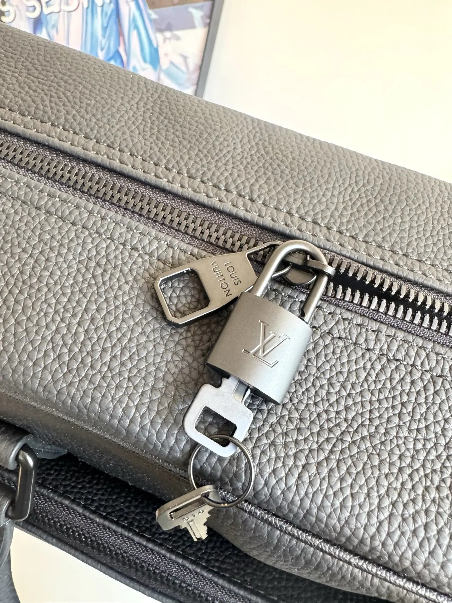 海外原单M26075独家实拍 本款 Weekender Bag 手袋选用蜡面牛皮革 同色系内衬和莹亮金属件 其尺寸恰好可放置于 Horizon 拉杆箱顶部 令商务差旅轻松惬意 宽敞拉链前袋为主隔层扩容 顶部手柄和可拆卸并调节的肩带提供多种背携选择 尺寸 46×31×18cm