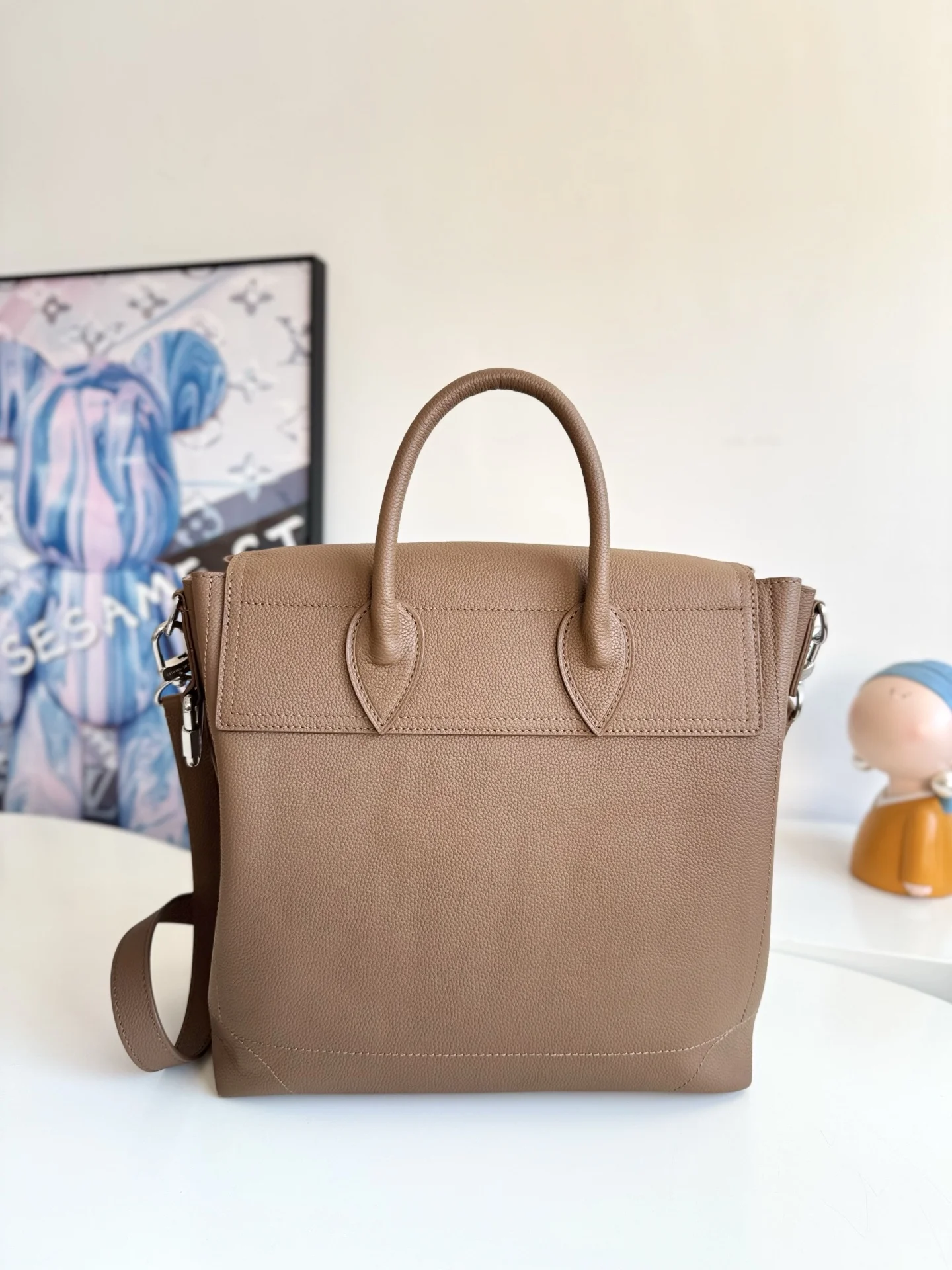 海外原单M26758独家实拍 本款 Steamer 30 手袋以 LV Touch 牛皮革焕新演绎风行百年的经典 Steamer 手袋 粒面皮革与绒面皮革分饰两面 绒面皮革前袋含蓄点缀 V 字缝线 便利 V 形钩扣融入 Monogram 花卉 肩带设计提供斜跨与手提选择 尺寸 33×32×14cm