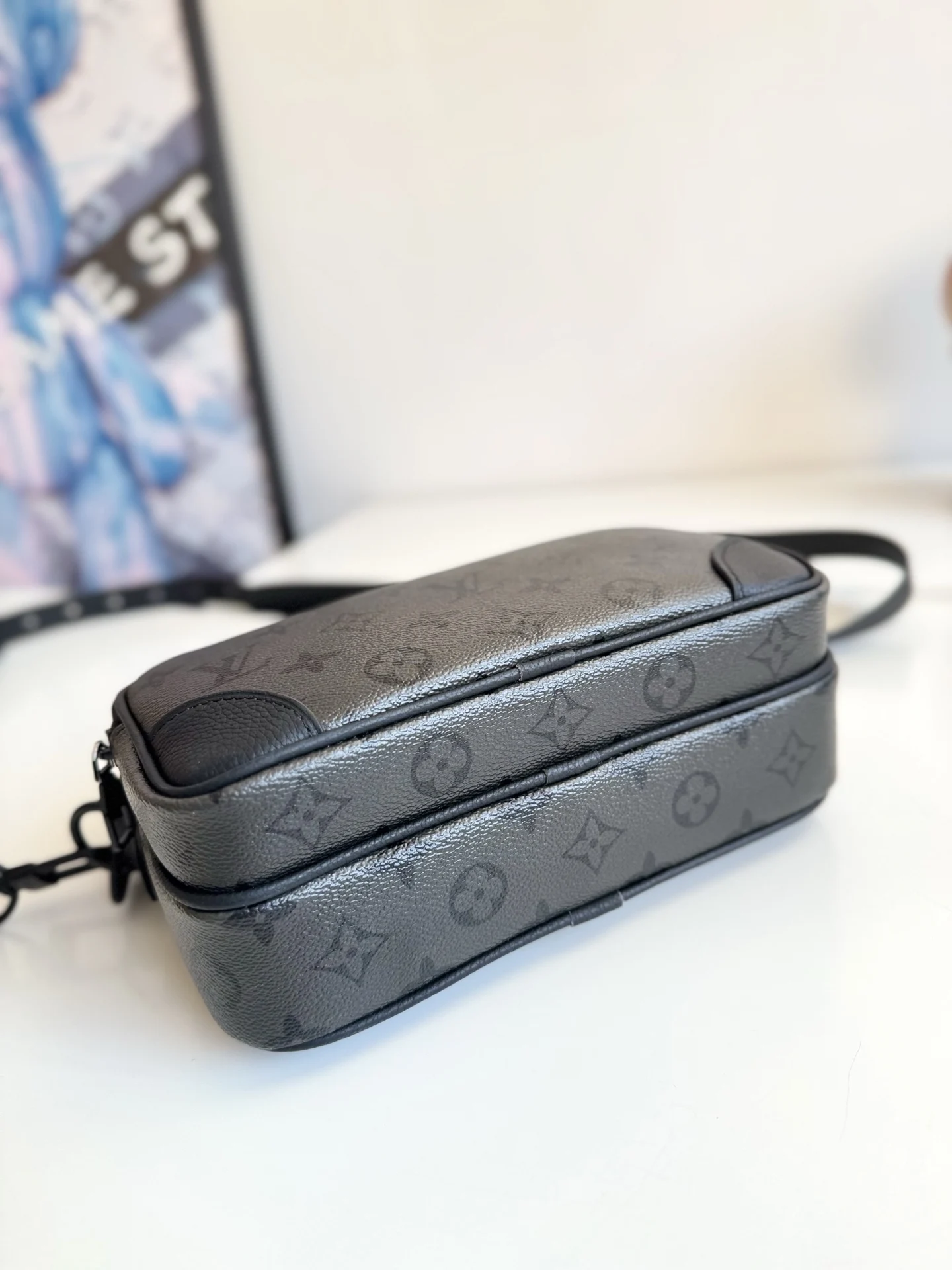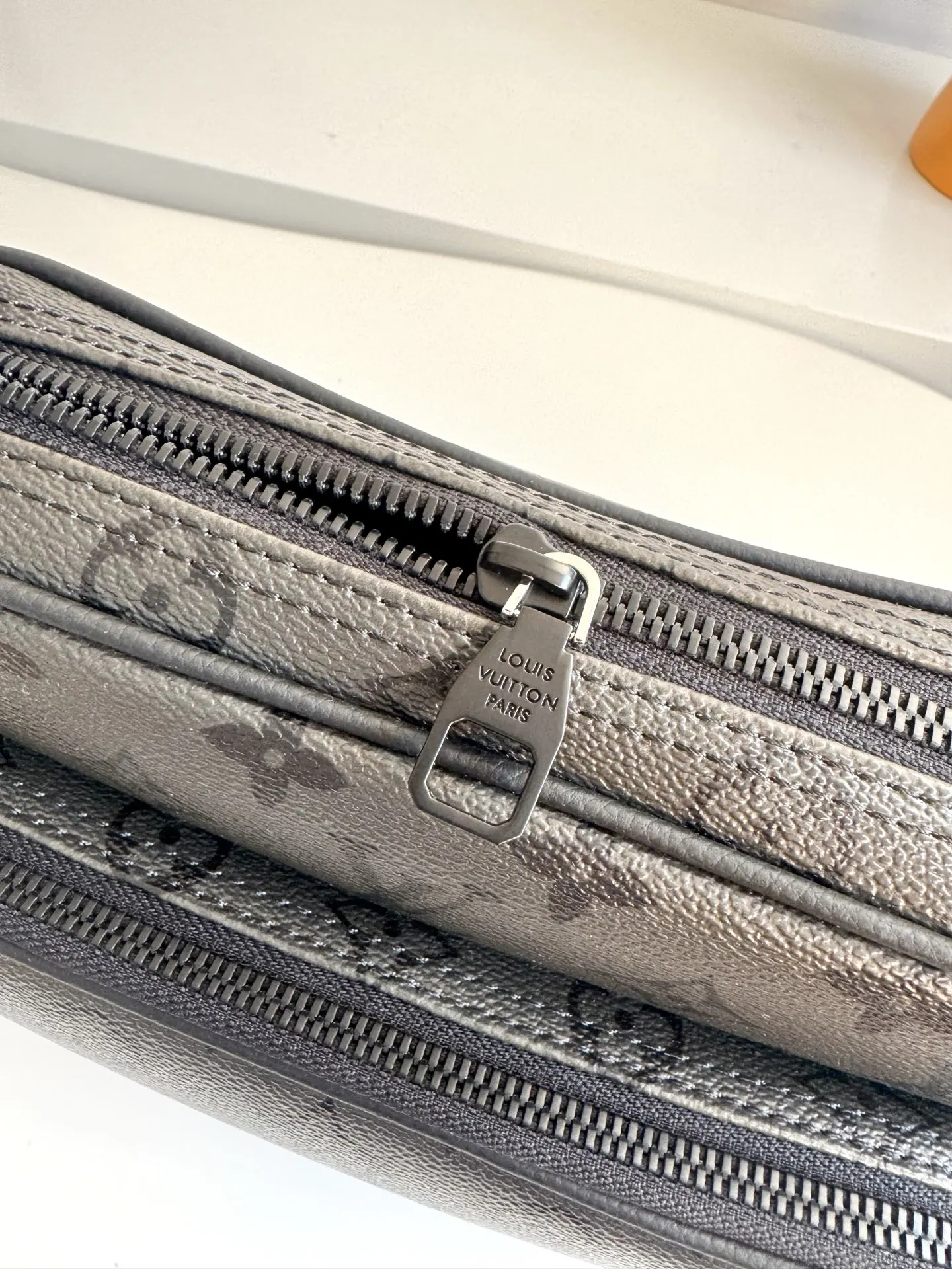 海外原单M26783独家实拍 本款 Nil 斜挎包以 Monogram Midnight 涂层帆布摩登演绎 Monogram 图案 Monogram 花卉及 LV 字母 雅致配色烘托内敛复古构型 可拆卸顶部手柄与肩带提供多样背携选择 尺寸 25×17.5×11cm