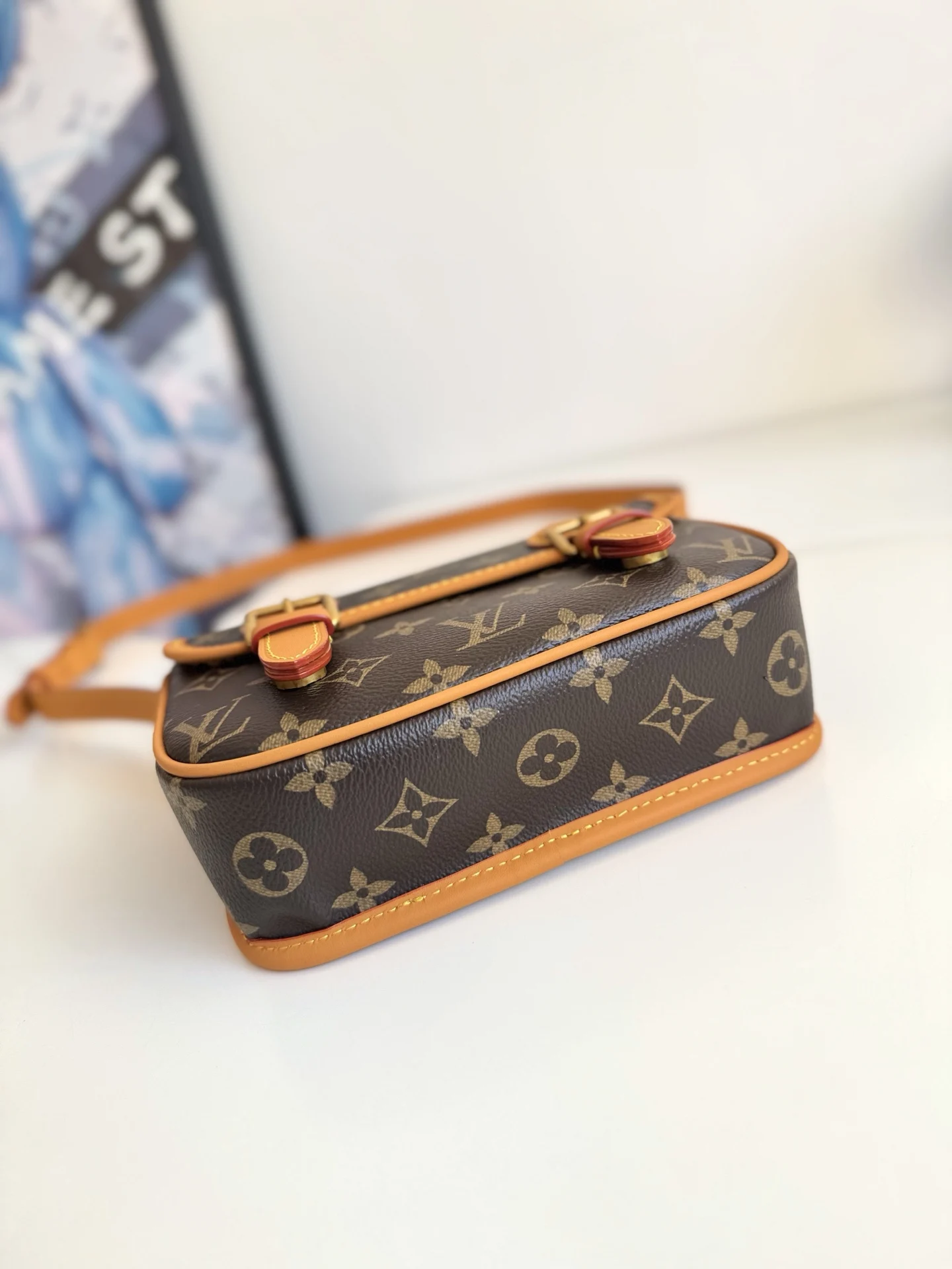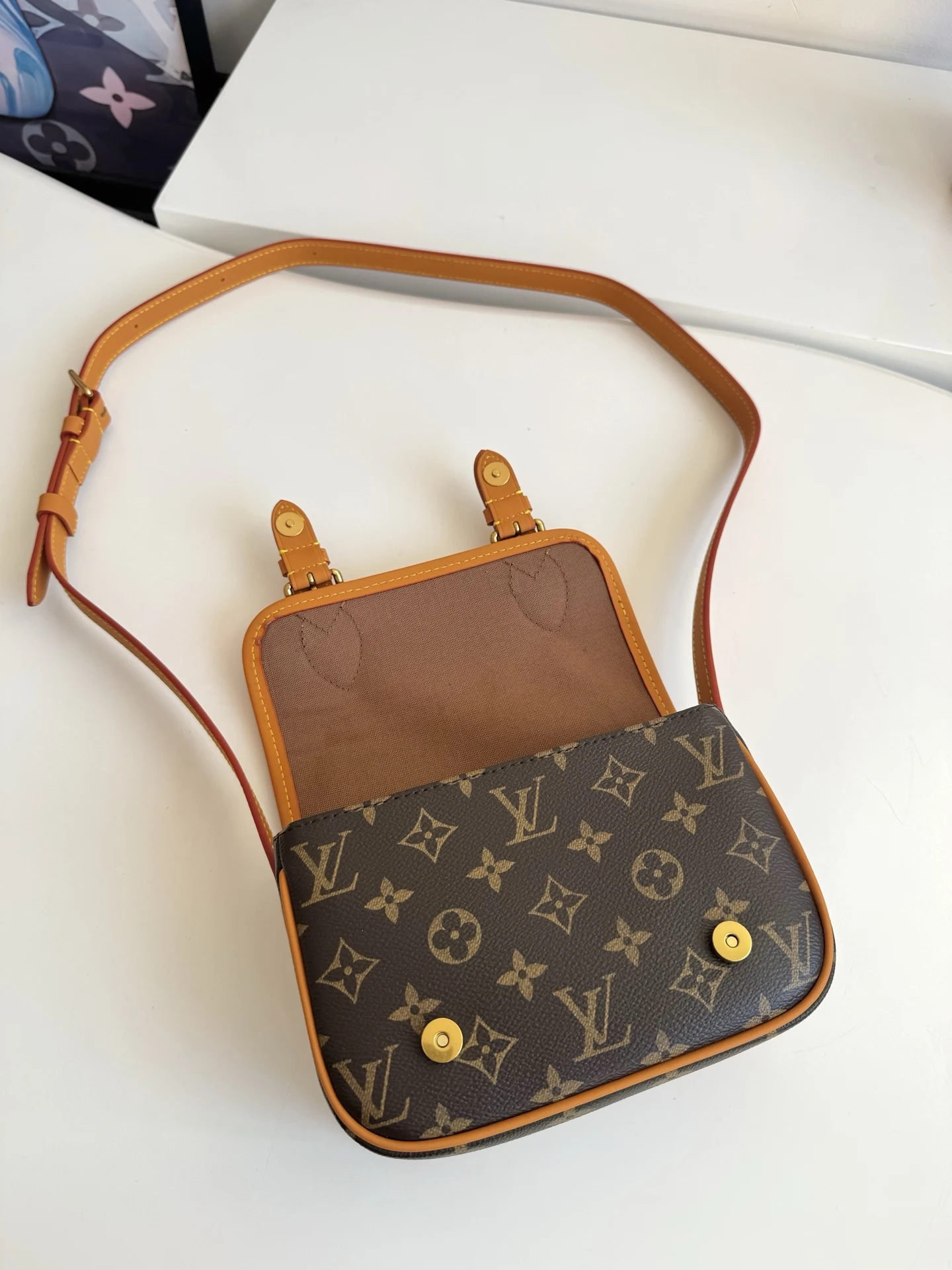 海外原单M26805独家实拍 本款 Satchel 迷你手袋出自 Monogram Archive 系列 为柔软 Monogram 帆布包身搭配做旧皮革饰边和耀目金属件 迷你邮差包构型可容纳手机及夹等日常用品 可调节肩带确保舒适肩背或斜跨 尺寸 19.5×15×6cm