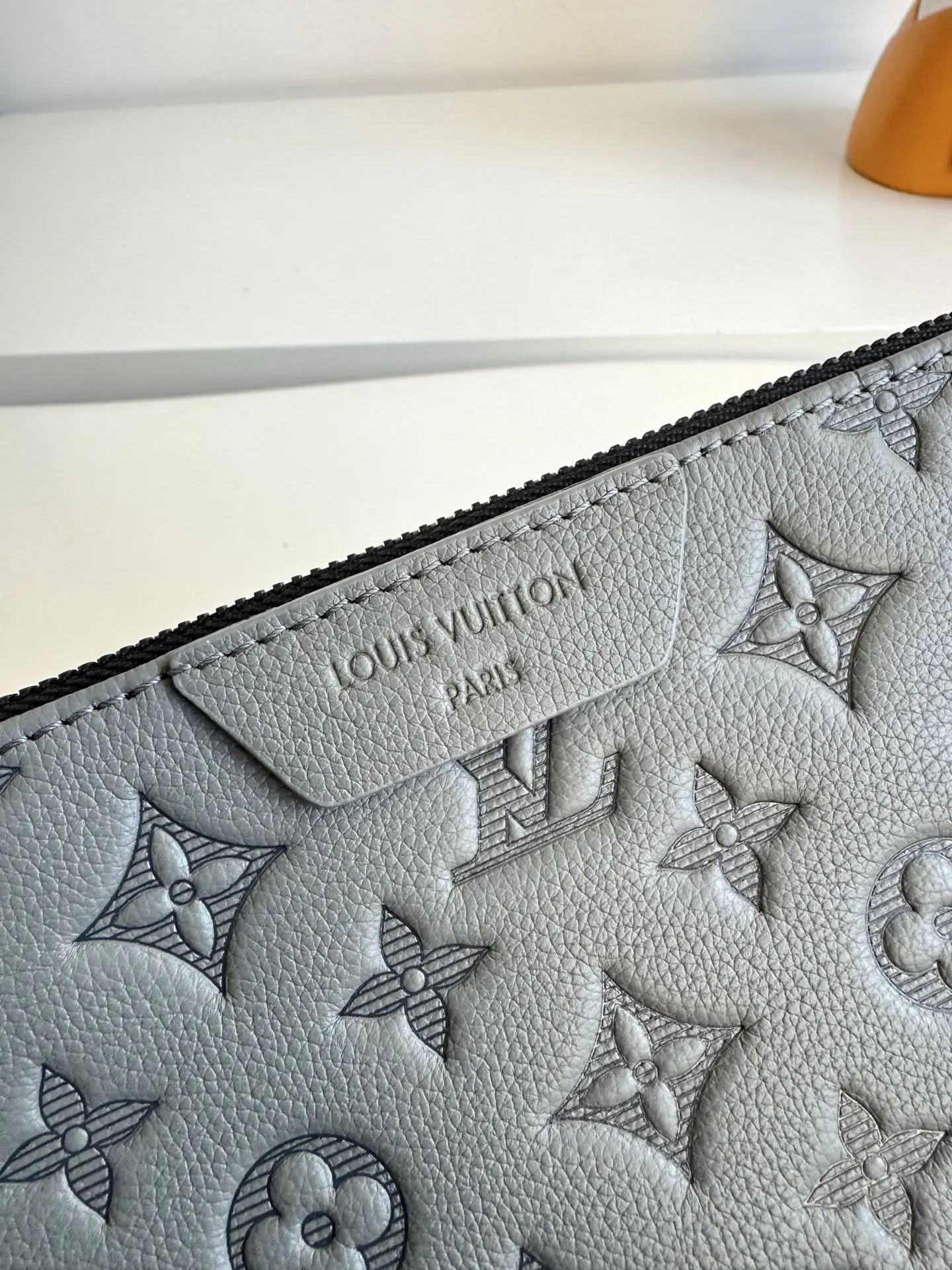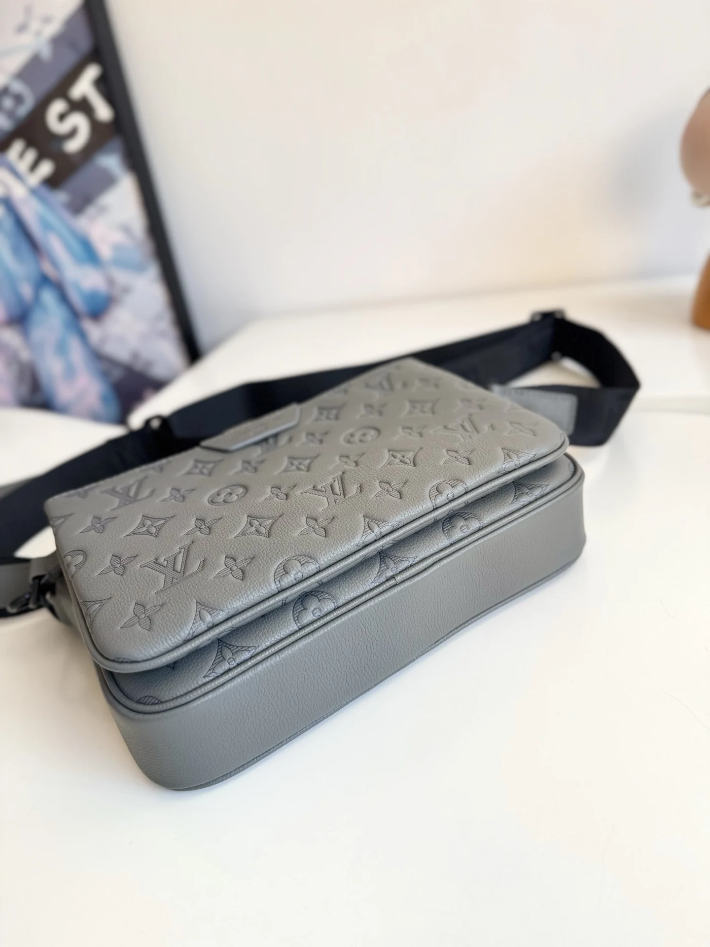 海外原单M27185独家实拍 本款 Trio Messenger 邮差包取材柔软 Monogram Shadow 牛皮革 搭配 Monogram Shadow 皮革袢带与主袋 拉链前袋 肩带与点缀其上的零包均可拆卸 肩带亦可调节 确保背携舒适贴合 尺寸 25×18.5×7cm
