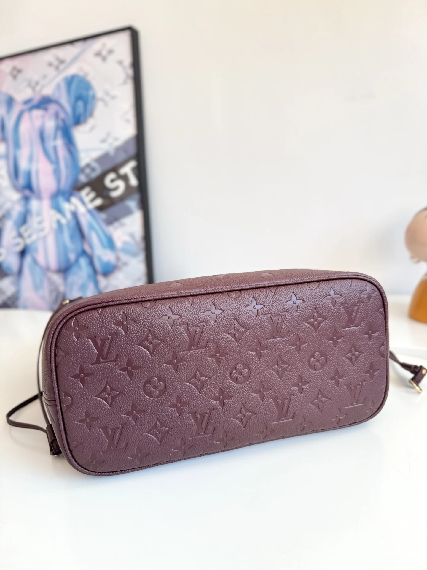 海外原单M45686紫红独家实拍 本款 Neverfull 中号手袋取材 Monogram Empreinte 压纹软皮革 以充裕空间成就日常出行佳选 侧面饰带灵活收束廓形 可随心演绎摩登风尚或闲雅格调 长款手柄实现肩背 肘挎随心切换 尺寸 31×28×14cm