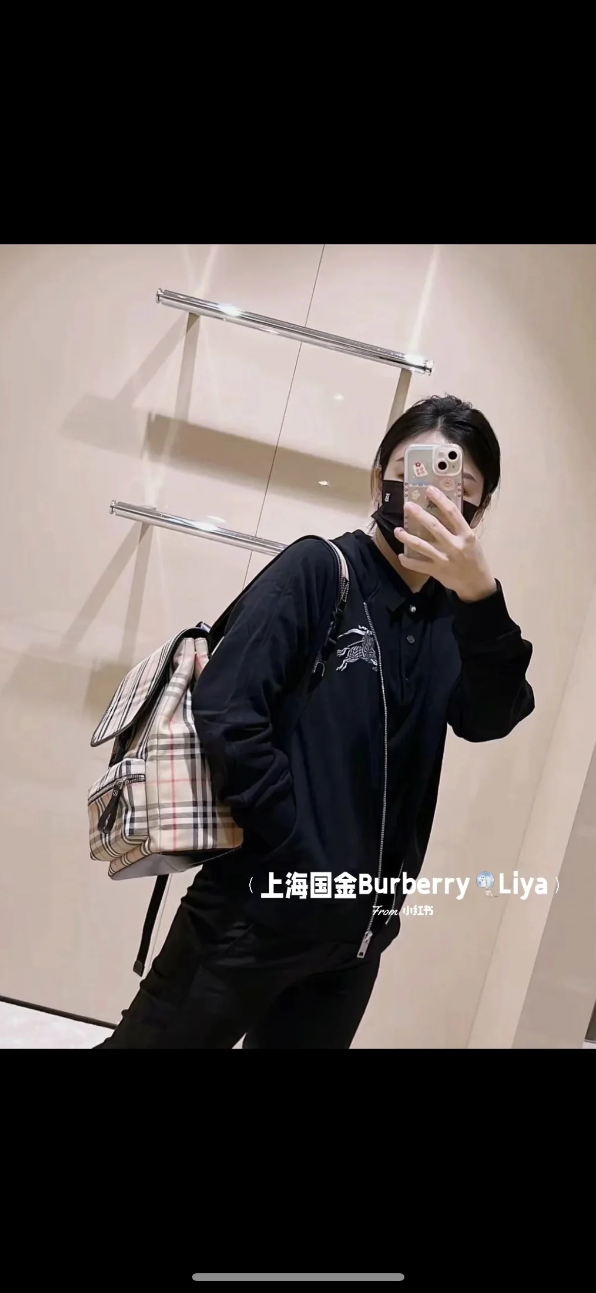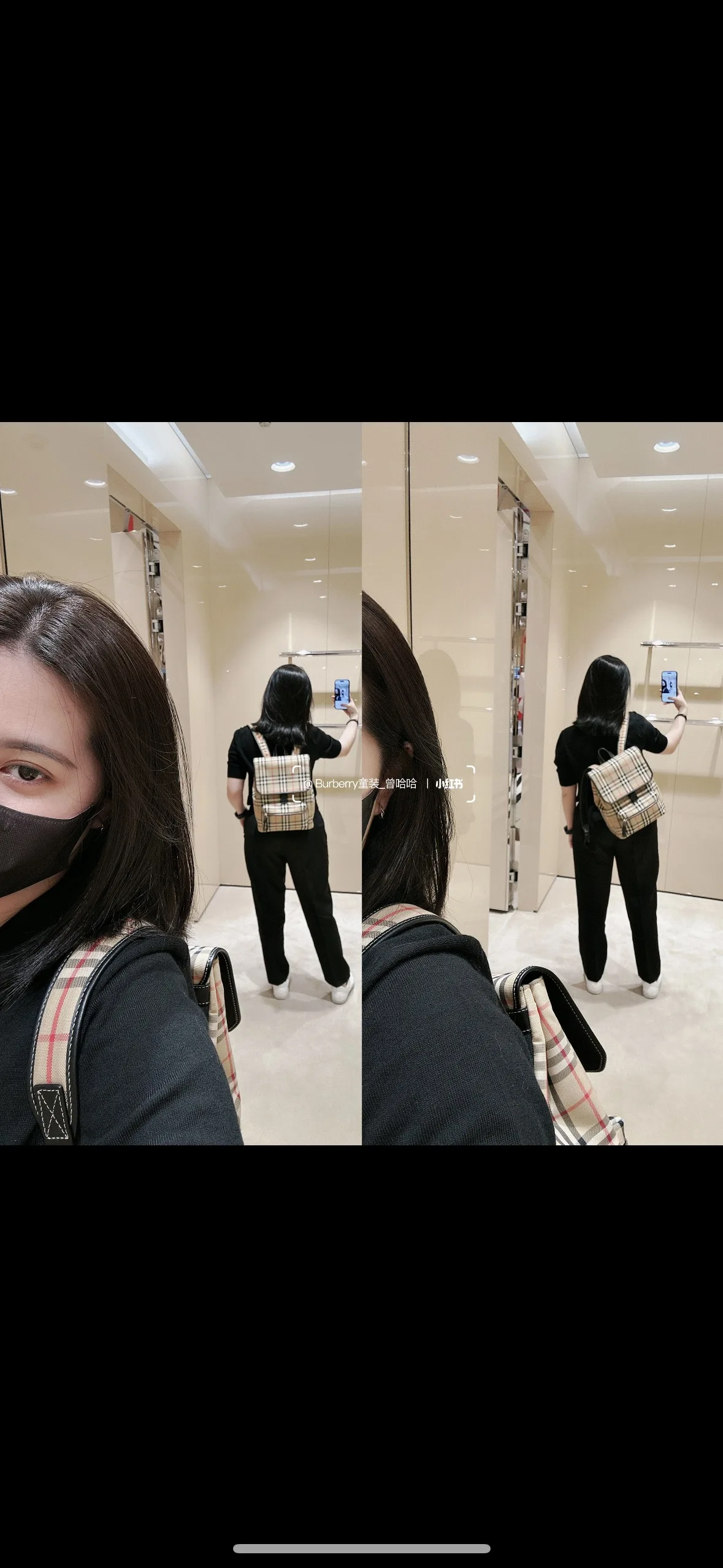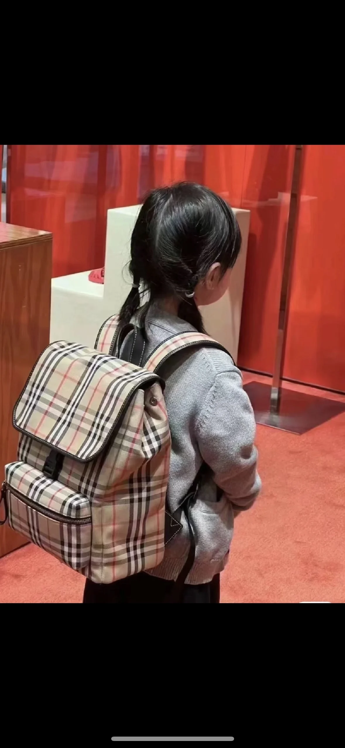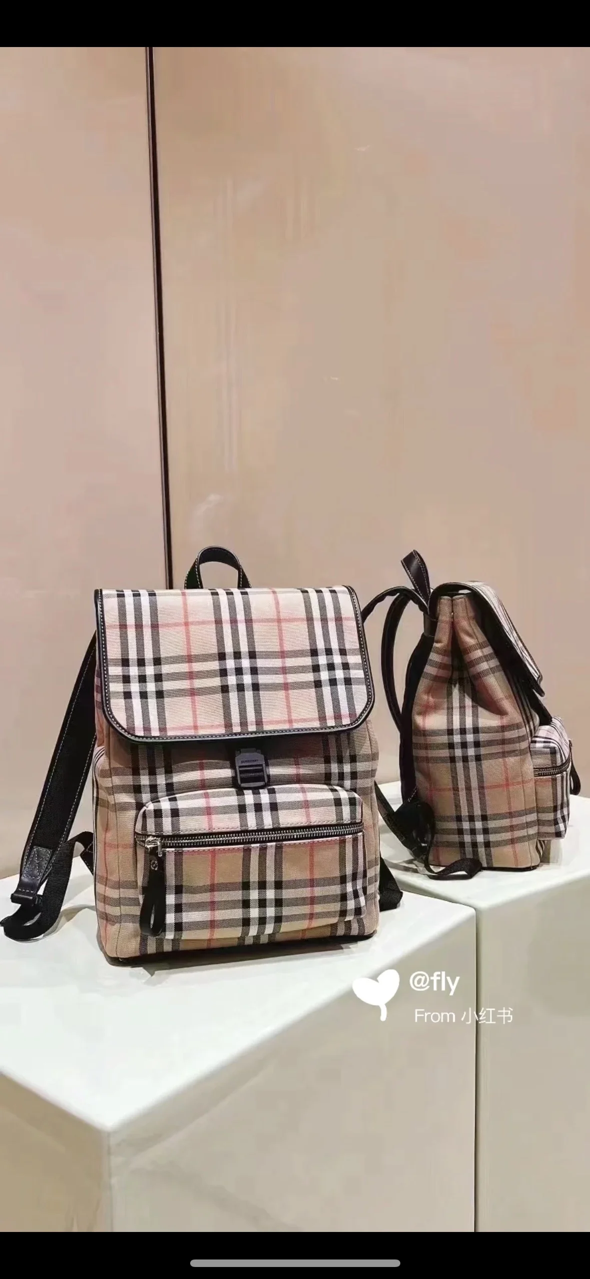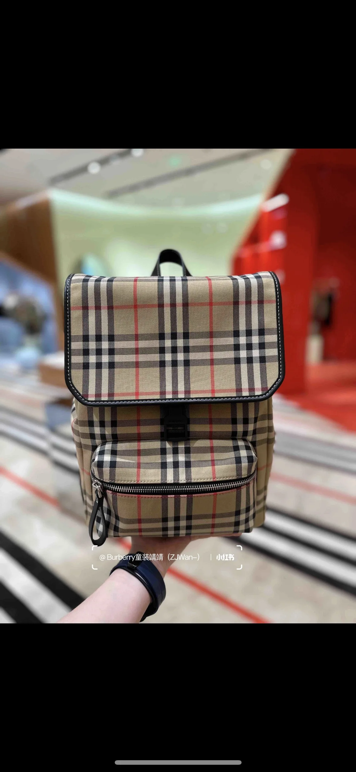B家格子女士小背包 经典的格纹拼牛皮材质 翻盖插扣设计 前置拉链口袋 内侧按扣锁口 非常耐脏超轻手感内存足够强大 背部采用减震透气的
