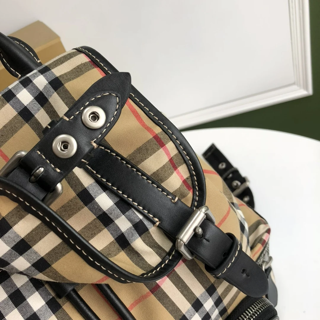 特级 链条款 B家军旅背包以品牌典藏的军风包款为原型 精选 Vintage 格纹棉质面料匠心打造 装饰缉明线皮革边饰 22X33 型号112163